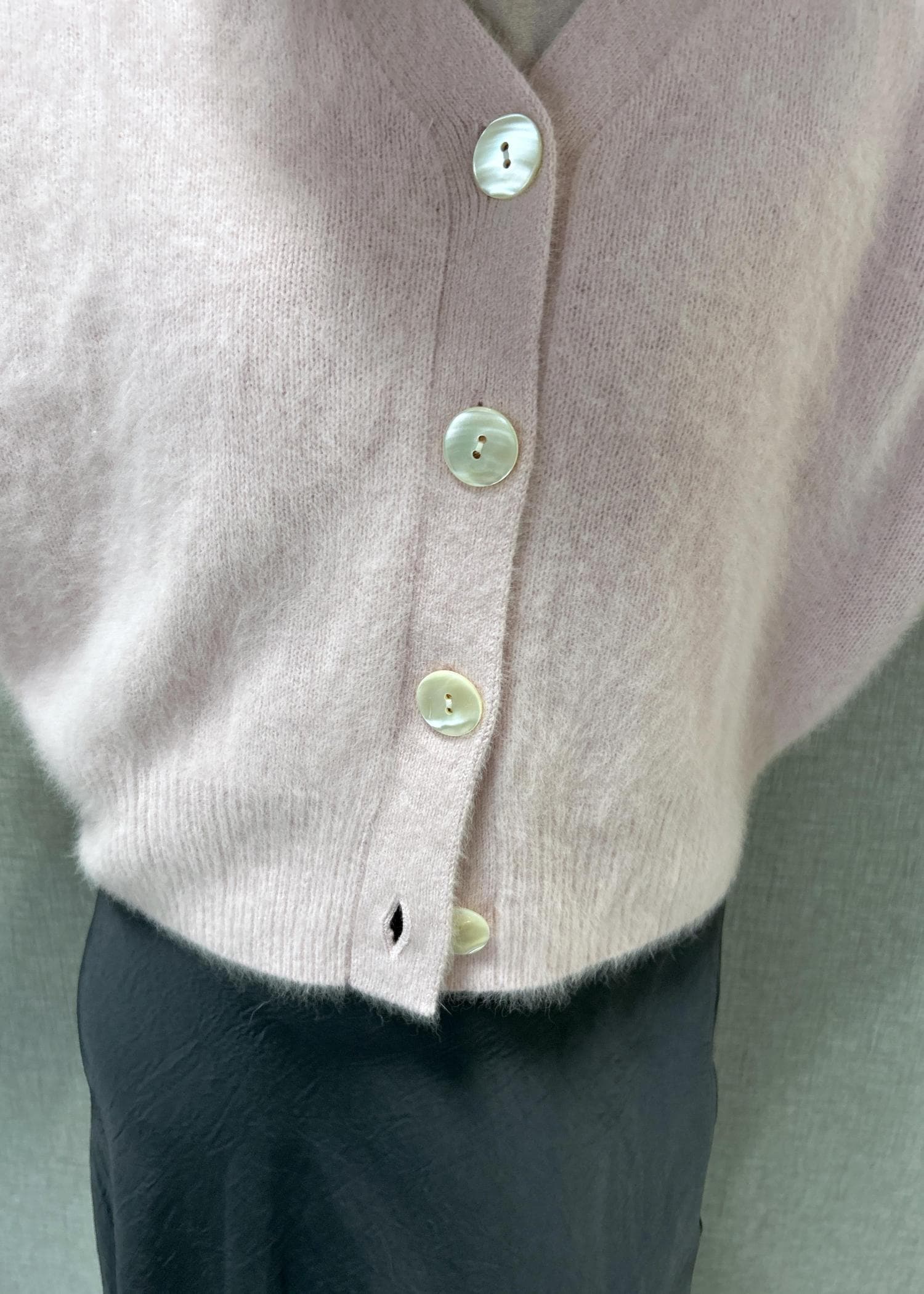 NEW!ROPÉフォックスカシミヤニットカーディガン/イージーケア・アンサンブル対応ピンク系 / F¥33,000レビュー着丈はヒップの少し上辺りまでの長さです。