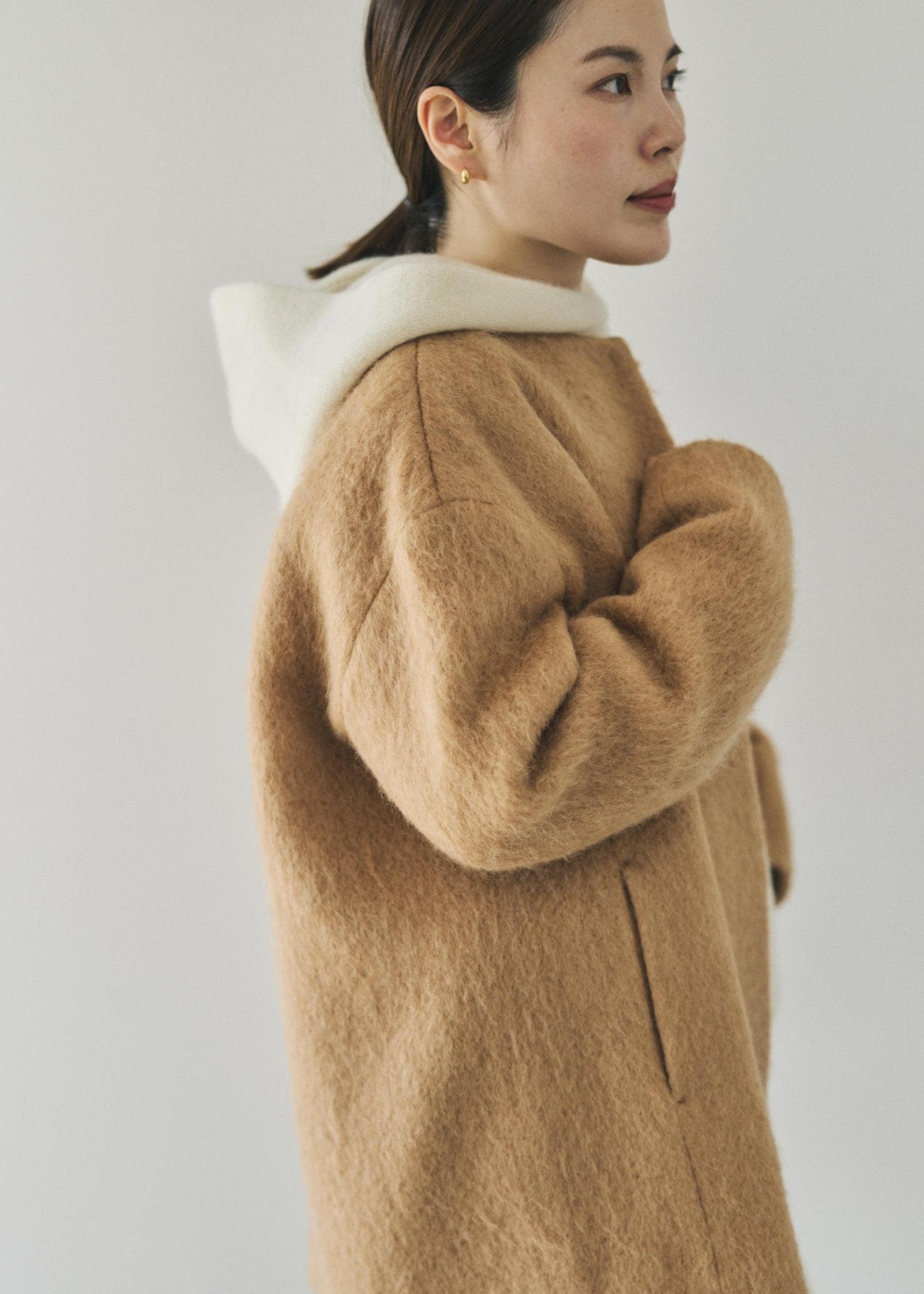 ROPÉウールモヘヤノーカラーミドル丈コートベージュ / F¥68,200レビュー骨格ストレートで、身長に比べて肩幅がしっかりしてます。