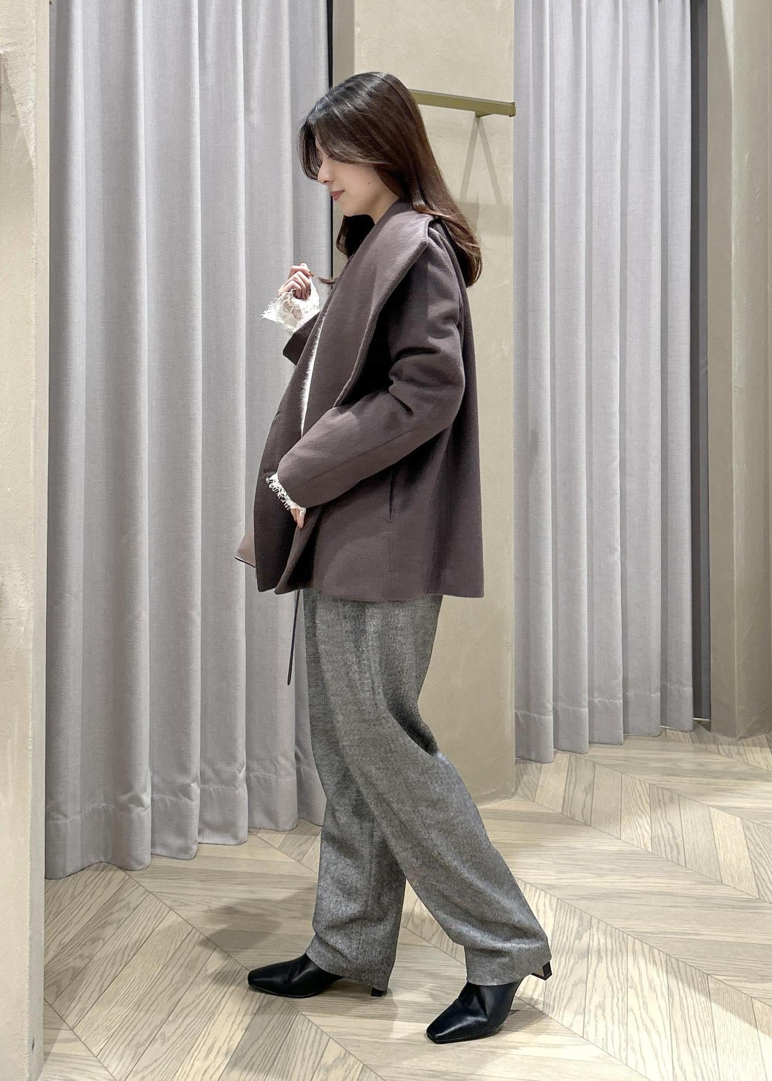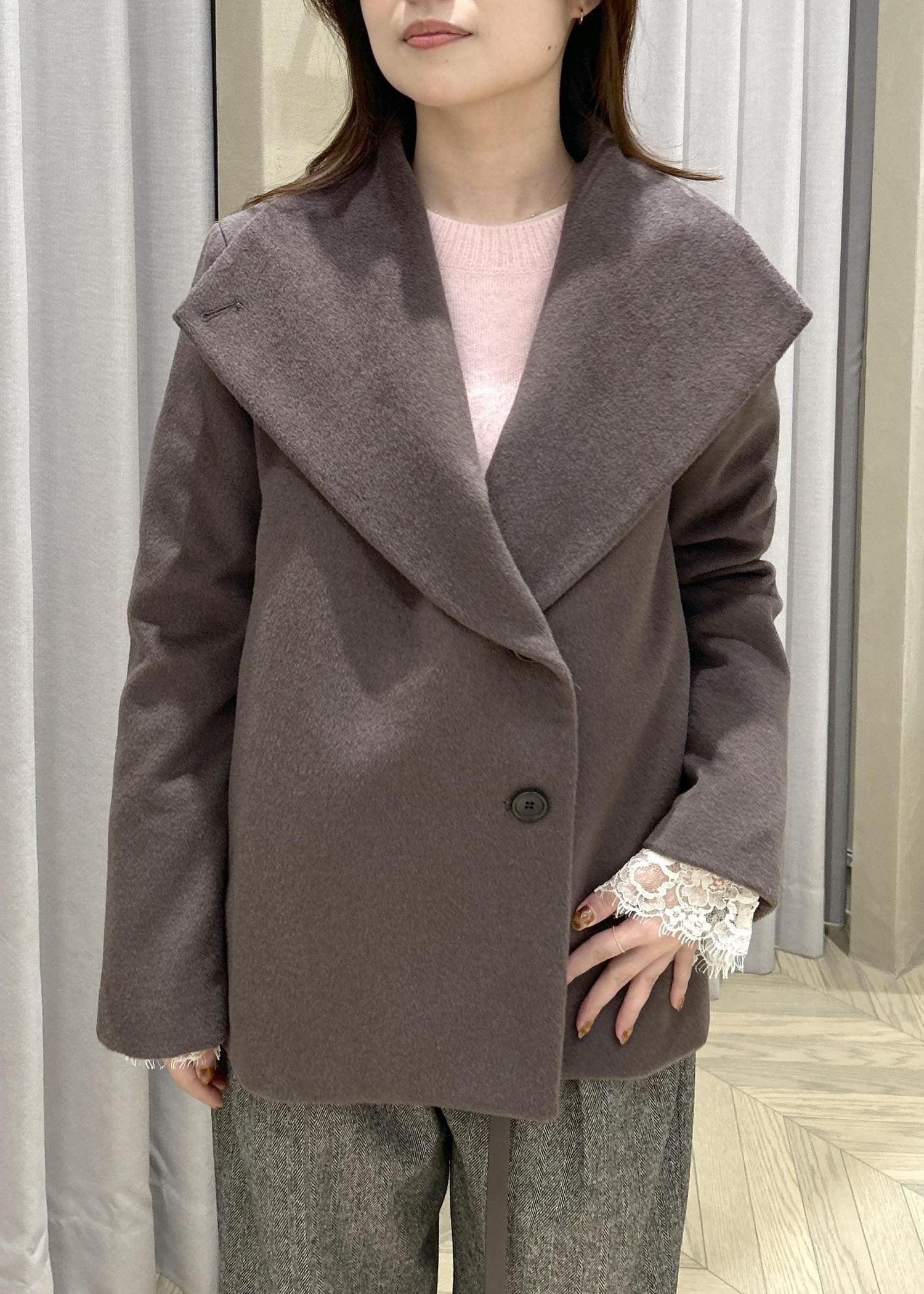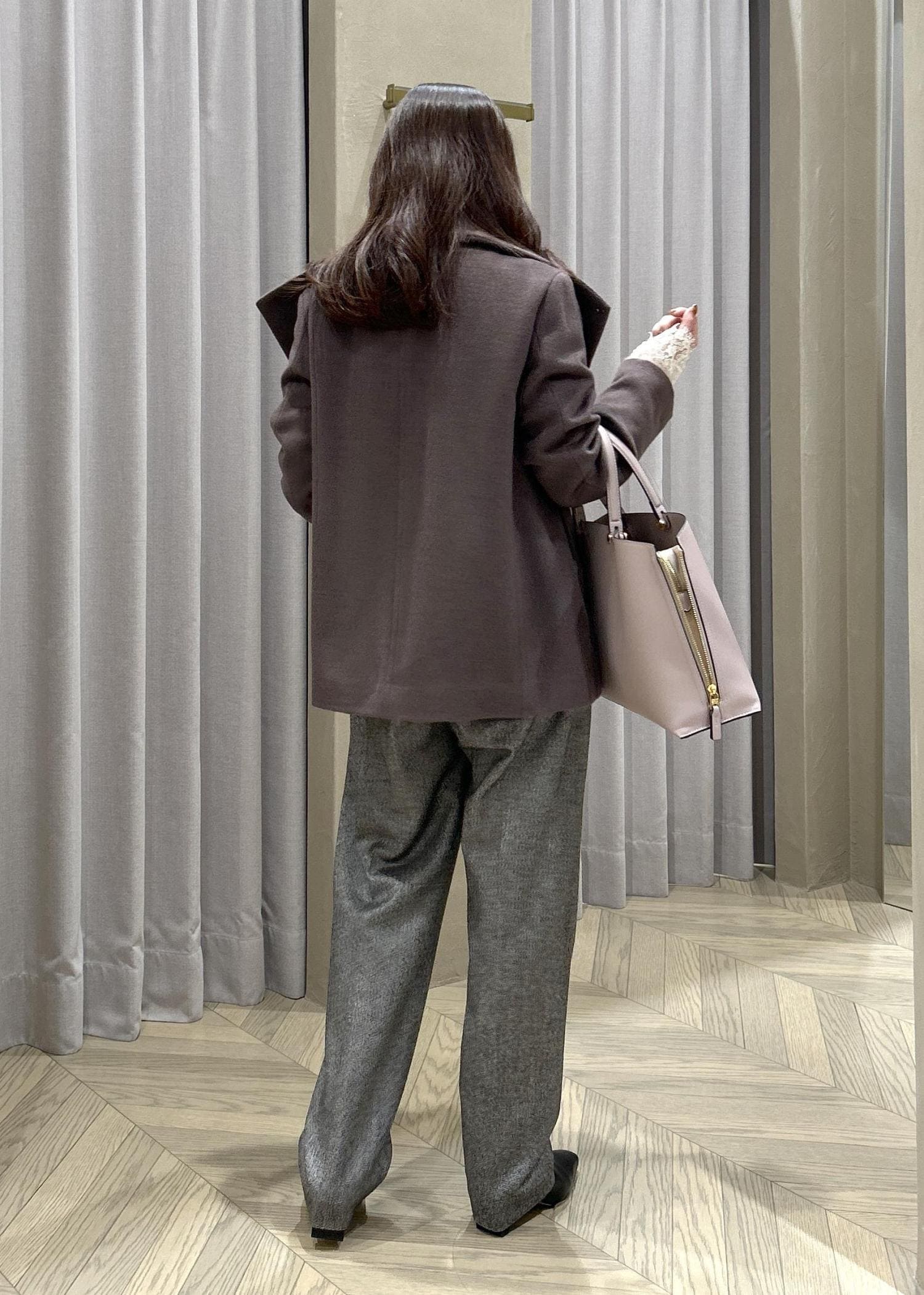 NEW!ROPÉプレミアムカシミヤ ショートコート【25AW】ダークブラウン / 36¥53,900レビューお尻が隠れる程度の丈感で、袖丈は手が半分隠れるくらいです。
