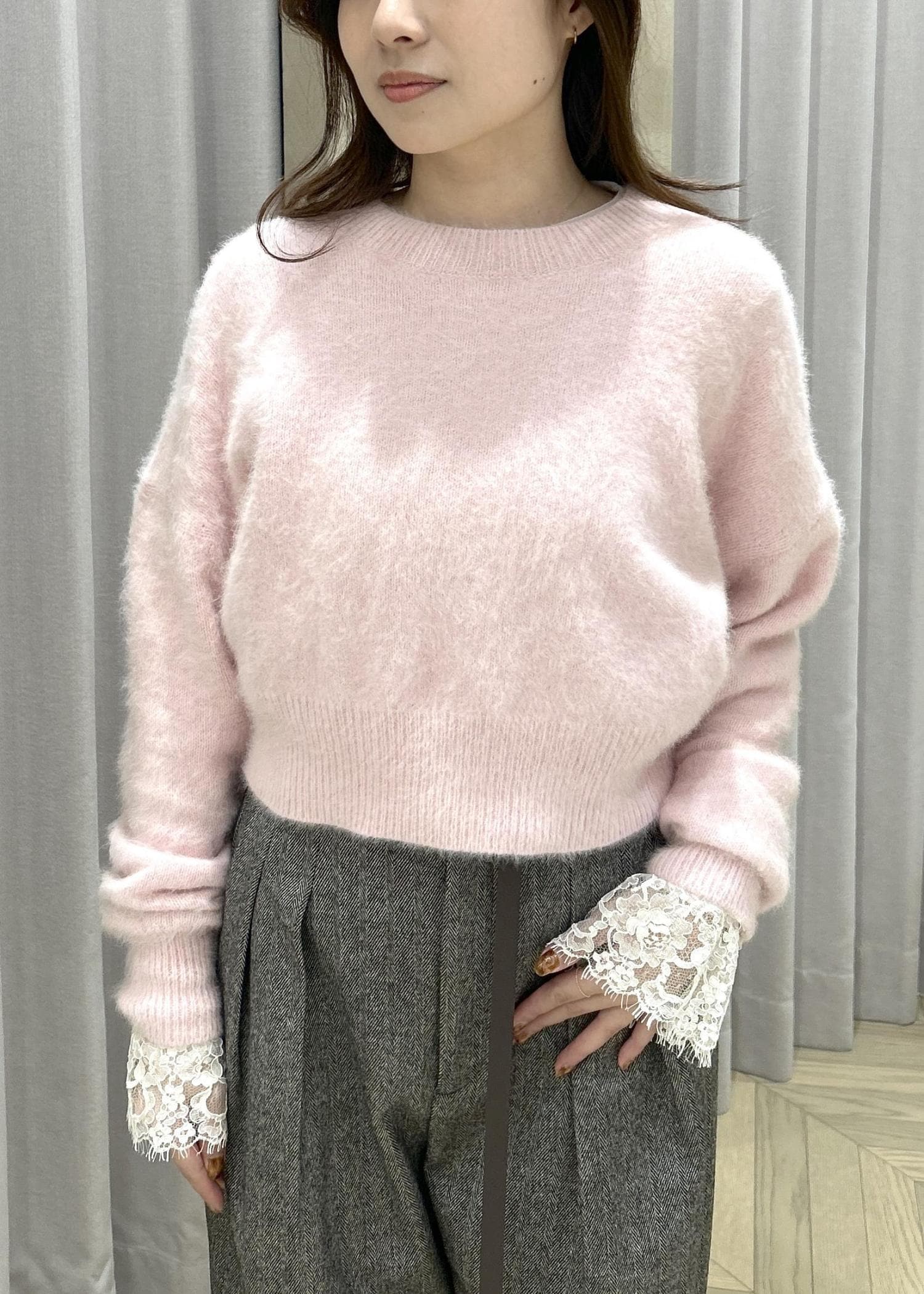 ROPÉレース袖シアーベロアカットソー/イージーケアピンク系 / F¥16,500レビュー少し伸縮性のあるベロア素材。