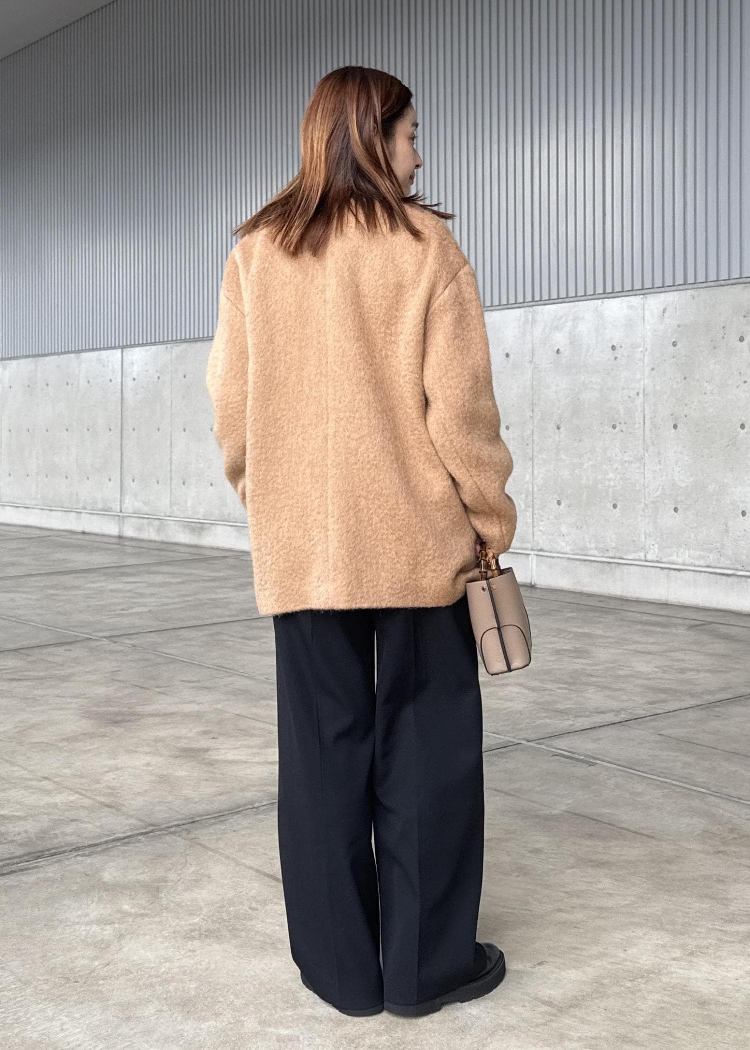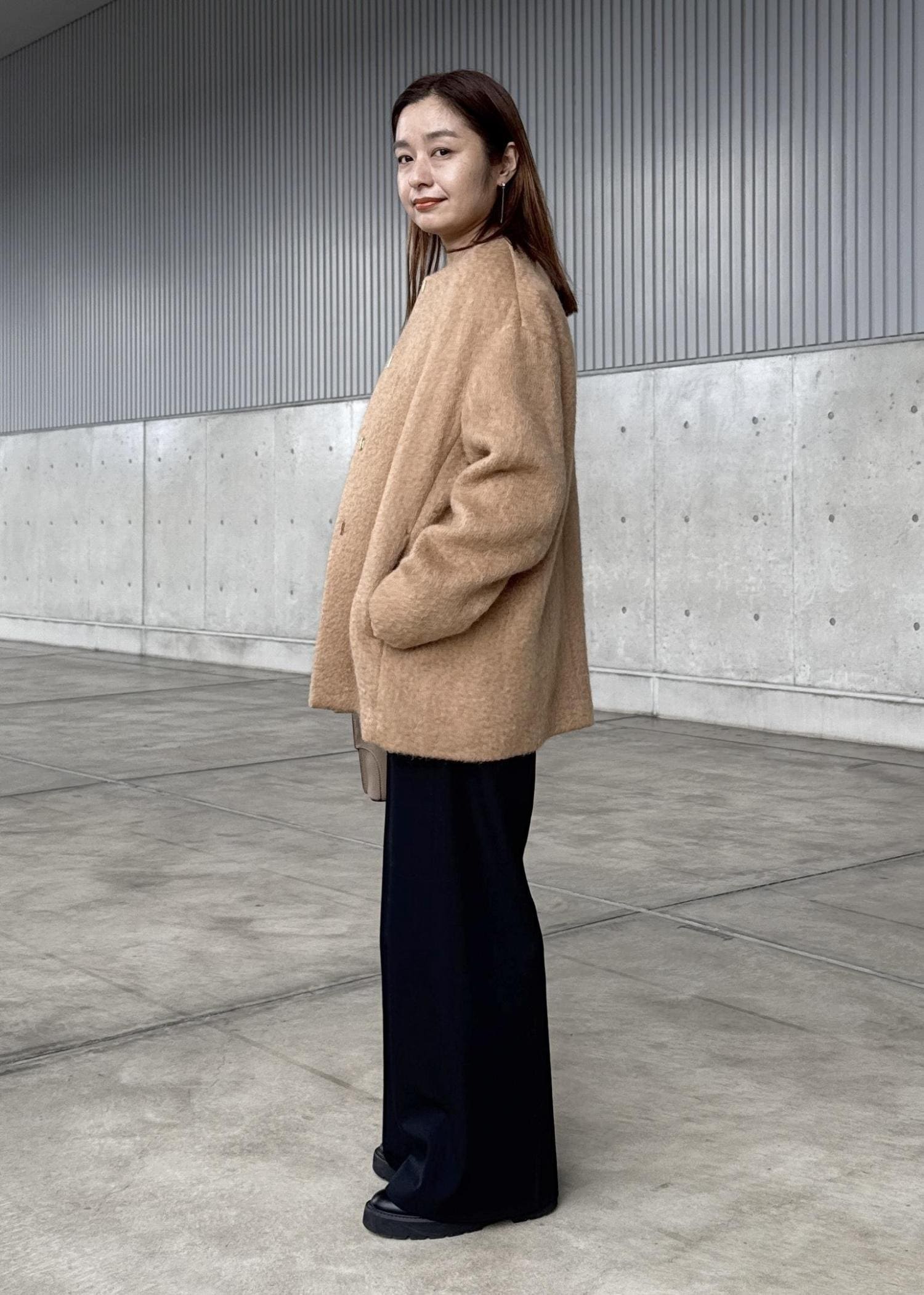 ゆったりとしたシルエットとやわらかなモヘヤがとっても雰囲気のあるコートです。