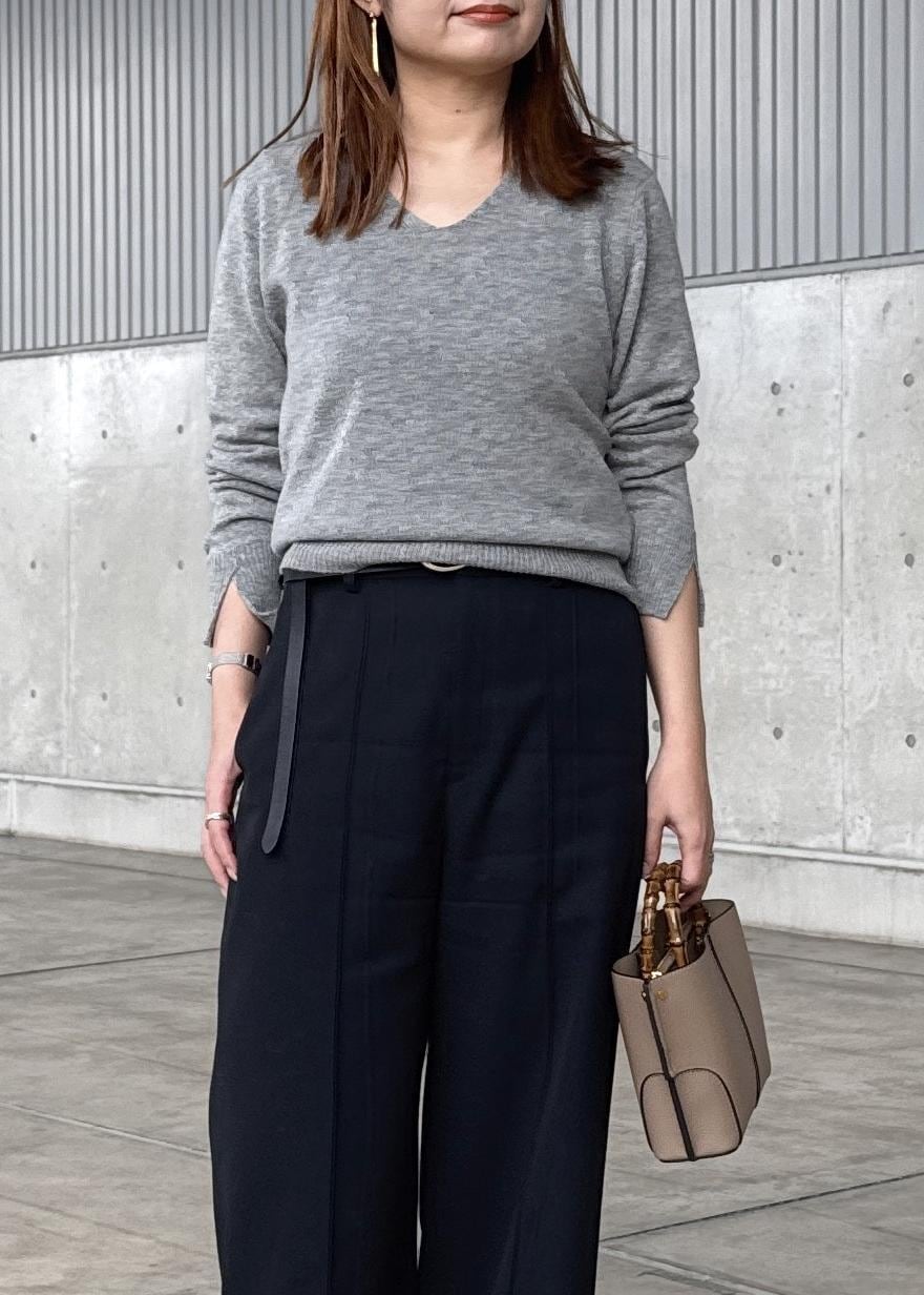 フラットシューズで合わせるなら3センチほどカットでちょうどいい着丈になります。