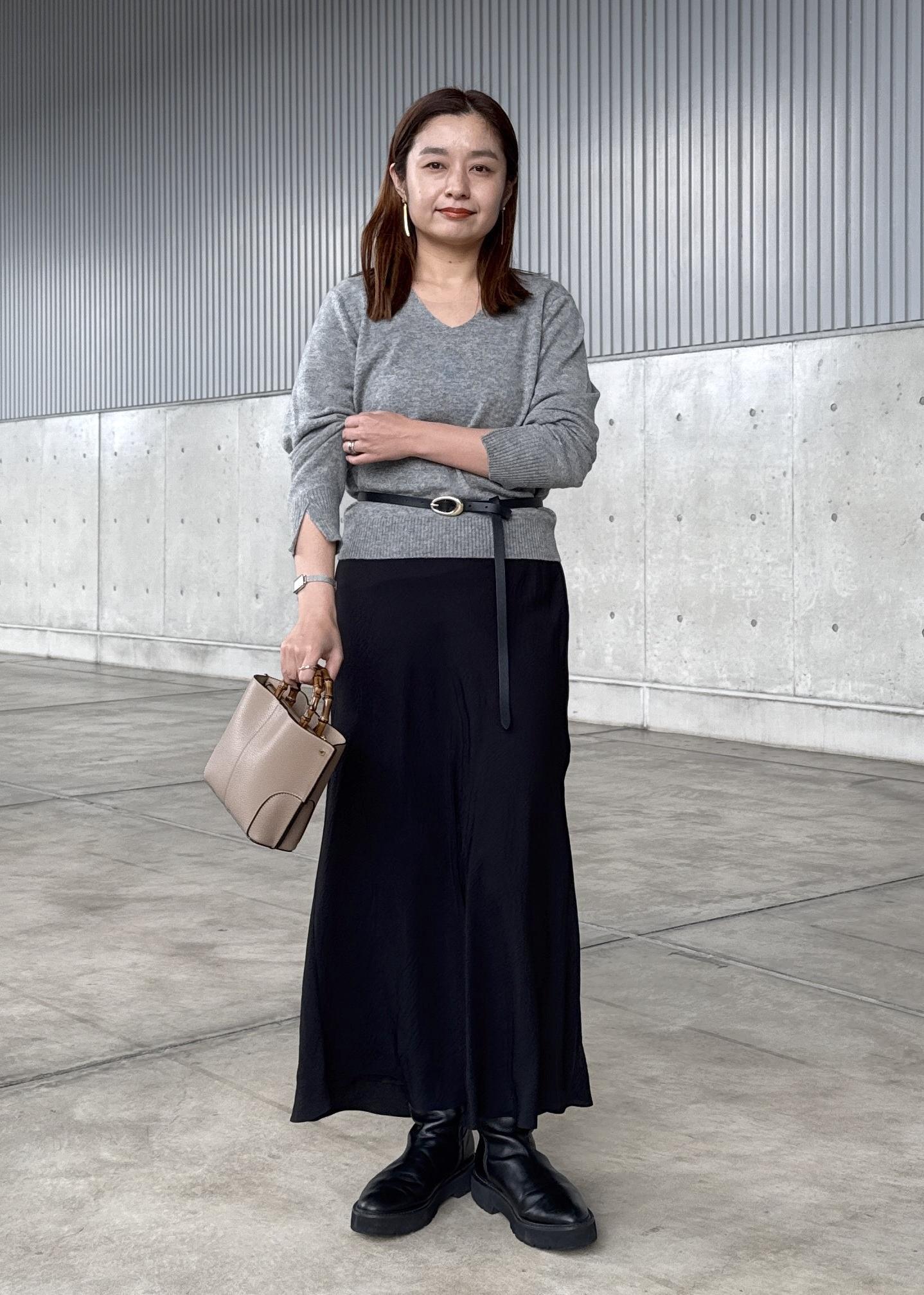 程よいマーメイドラインで、細めのウエストゴムなので着心地よくストレスフリーでお召しいただけます◎