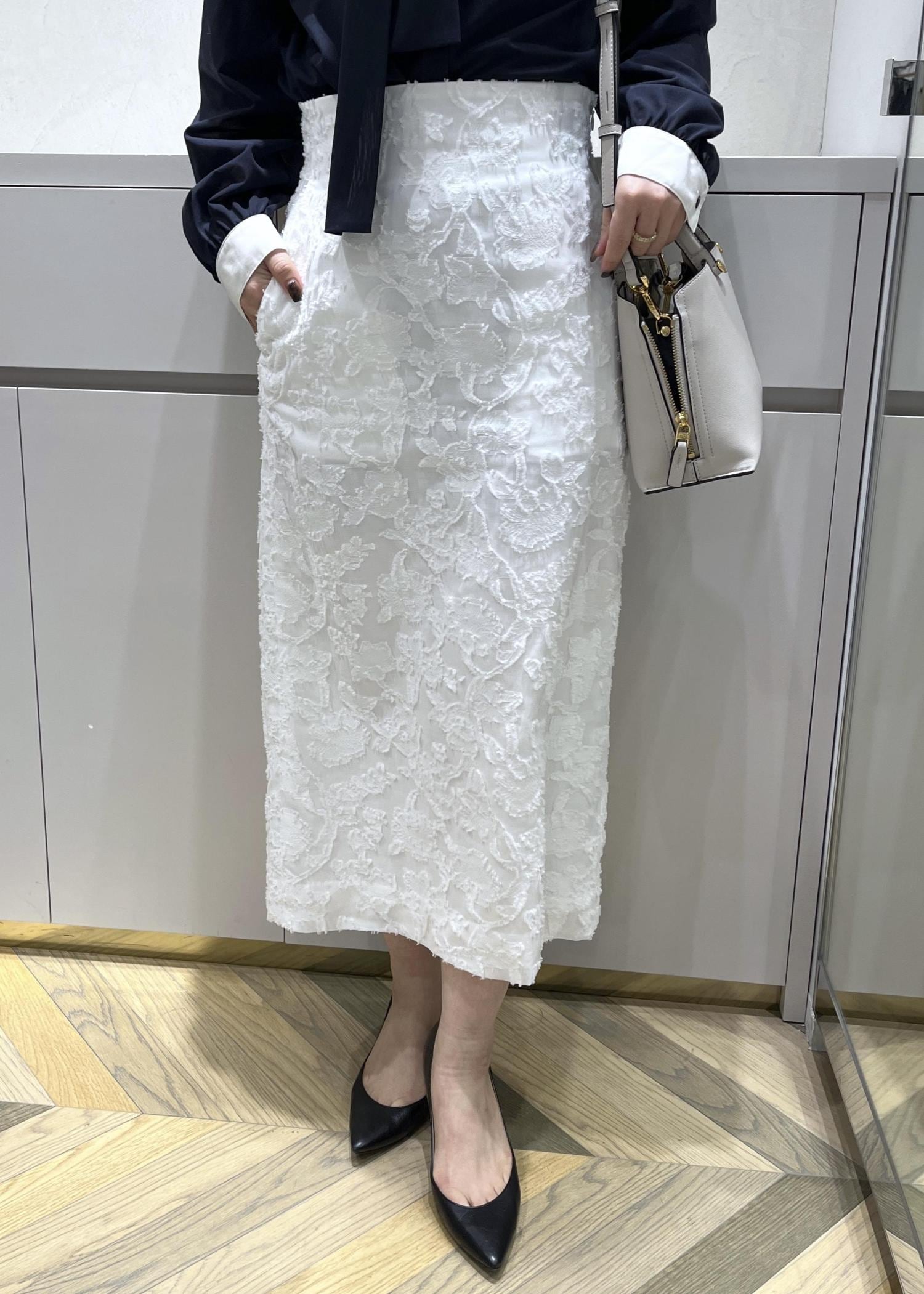 ROPÉジャガードタイトスカート/セットアップ対応ホワイト / 36¥28,600レビュー36サイズを着用しています。