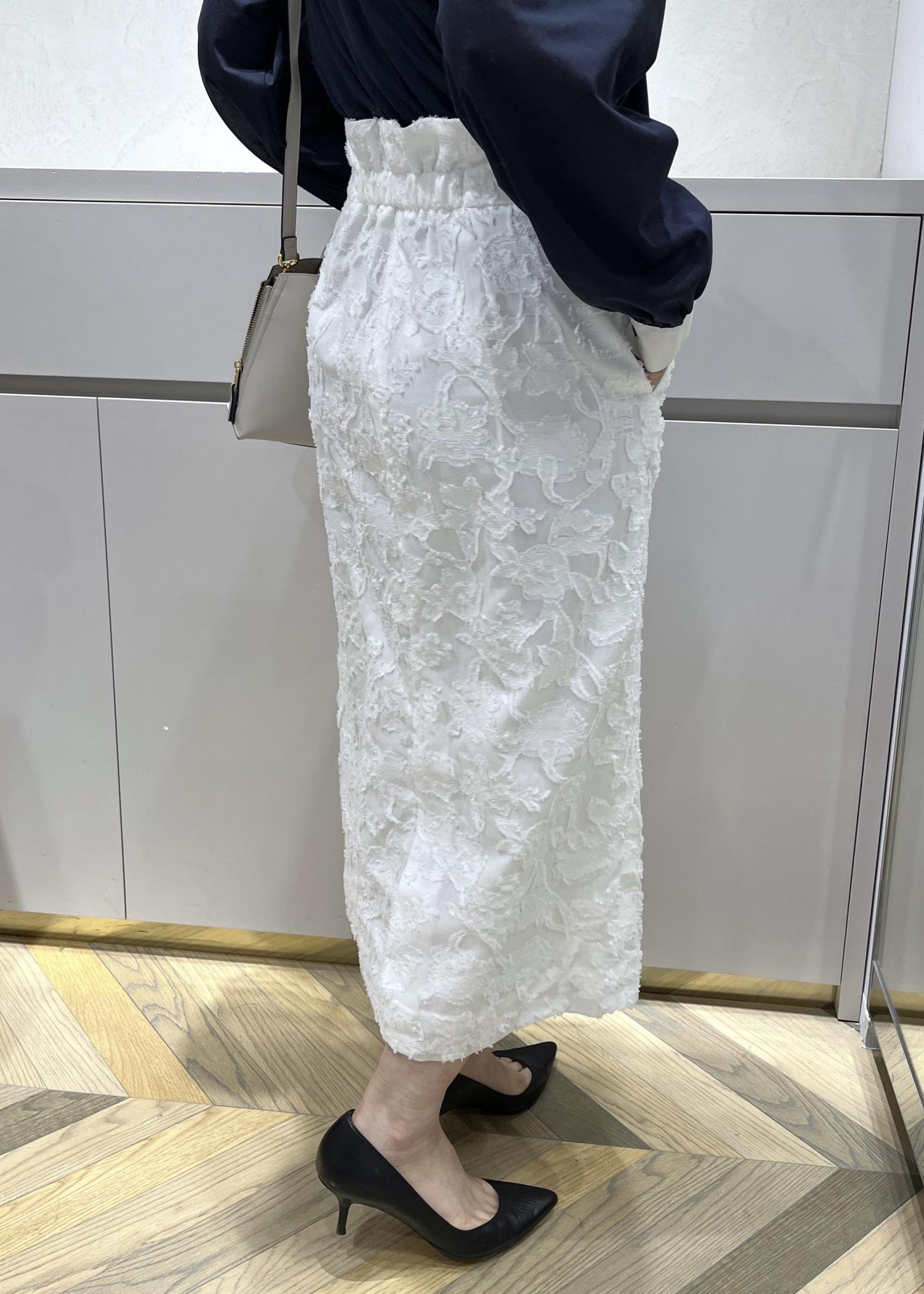 人気の定番タイトスカートのシルエットでジャガード素材が登場しました♪