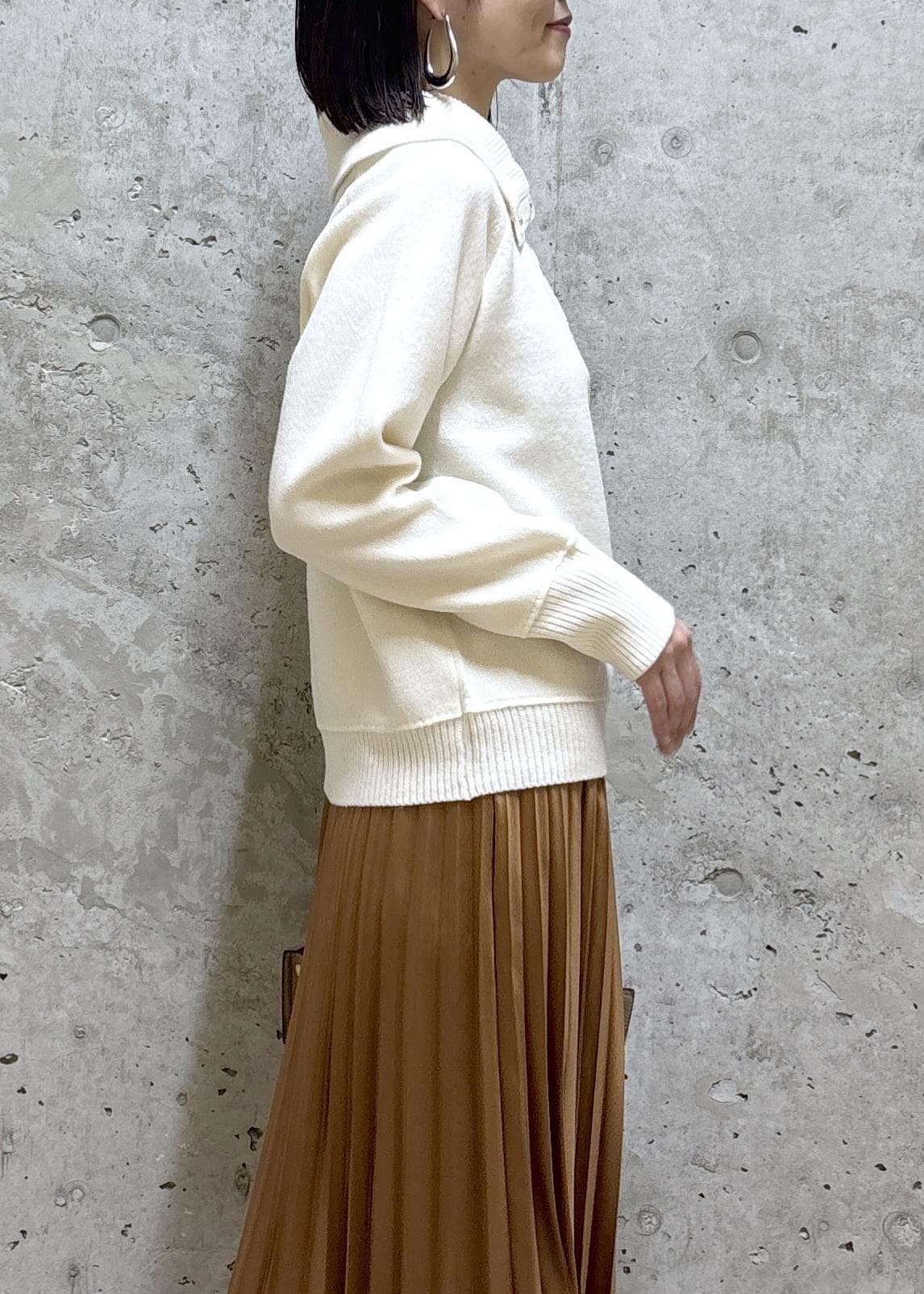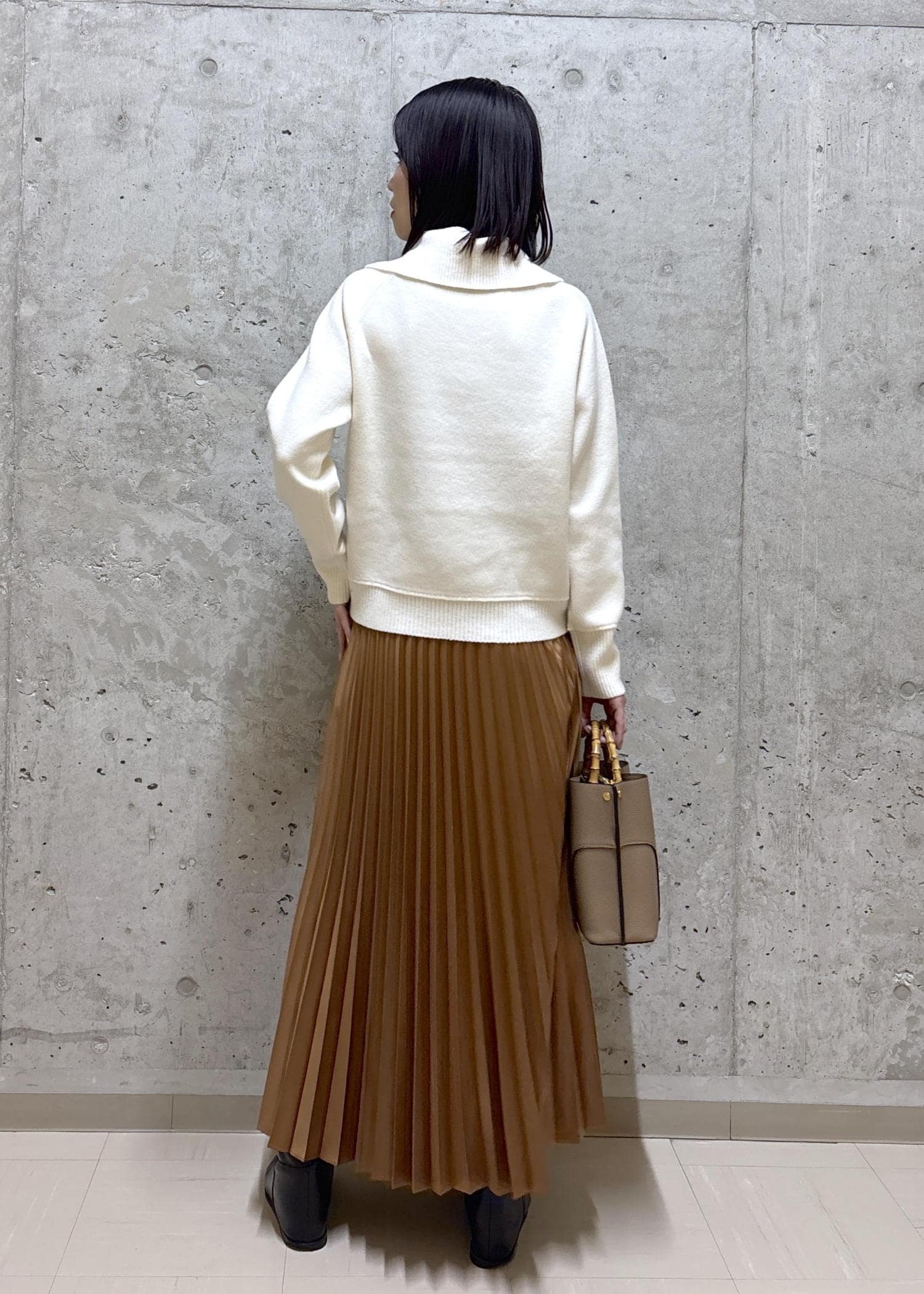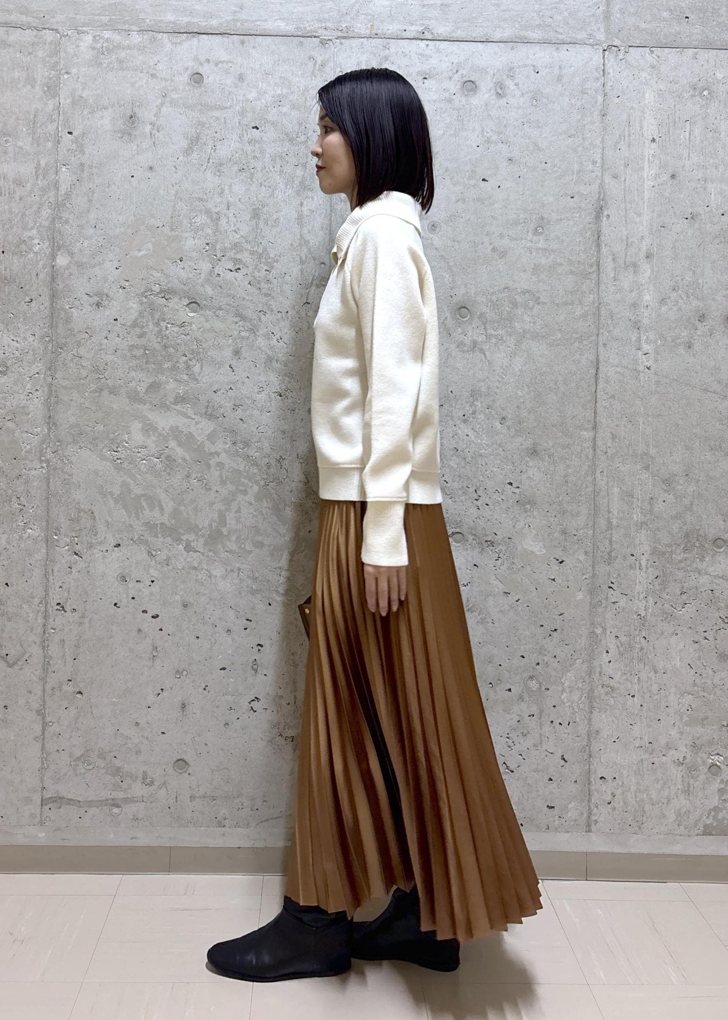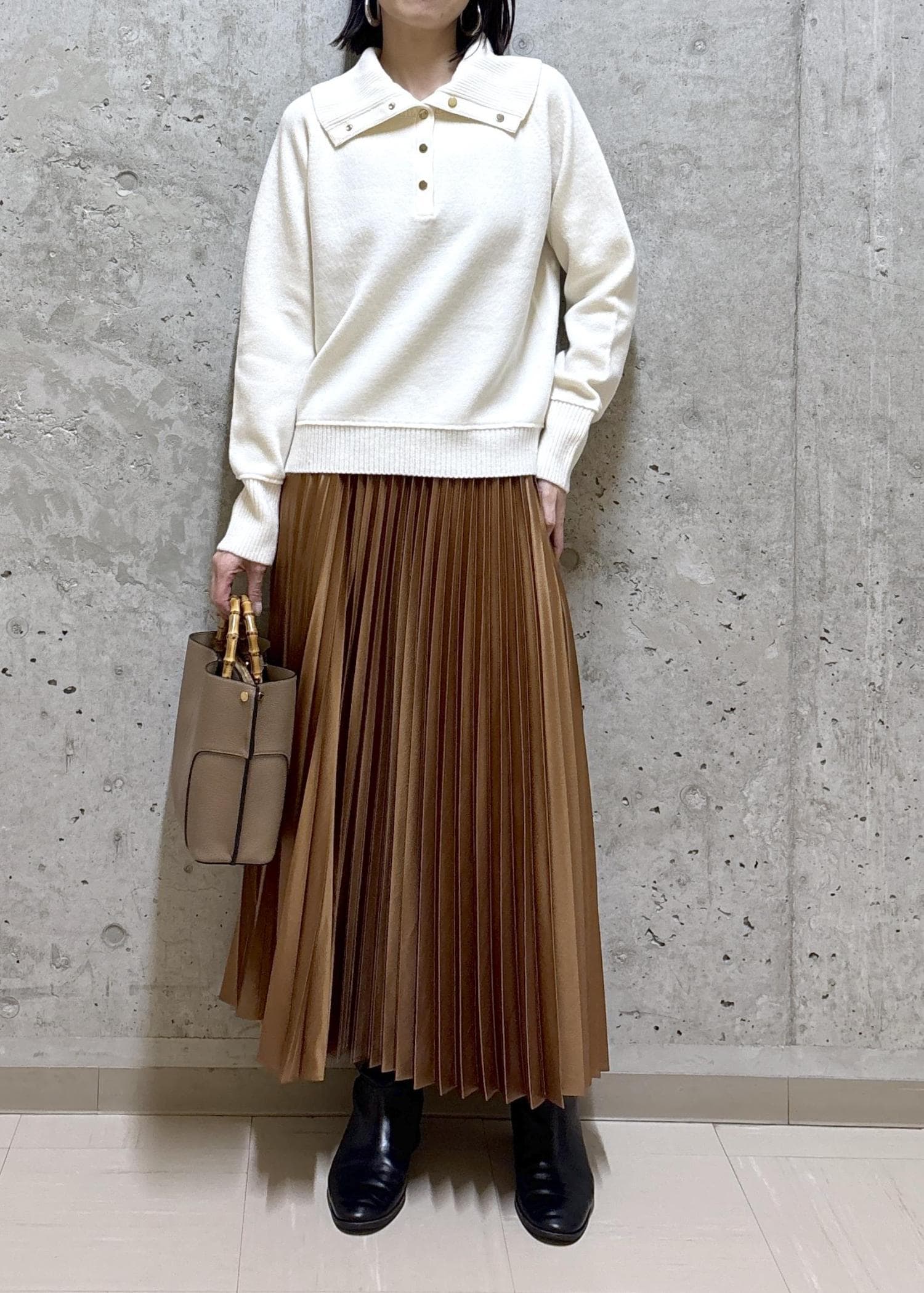 プリーツスカートを合わせて大人カジュアルなコーディネイトにしました。