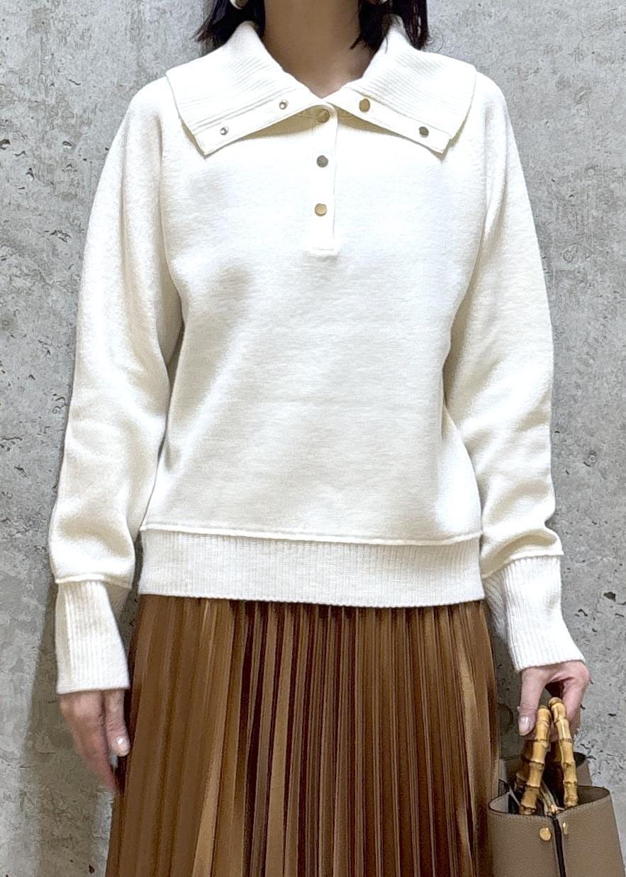 NEW!ROPÉ接結ウールドットボタンハイネックニット/イージーケアオフホワイト / F¥28,600レビューほどよくゆとりのあるサイズ感のニット。