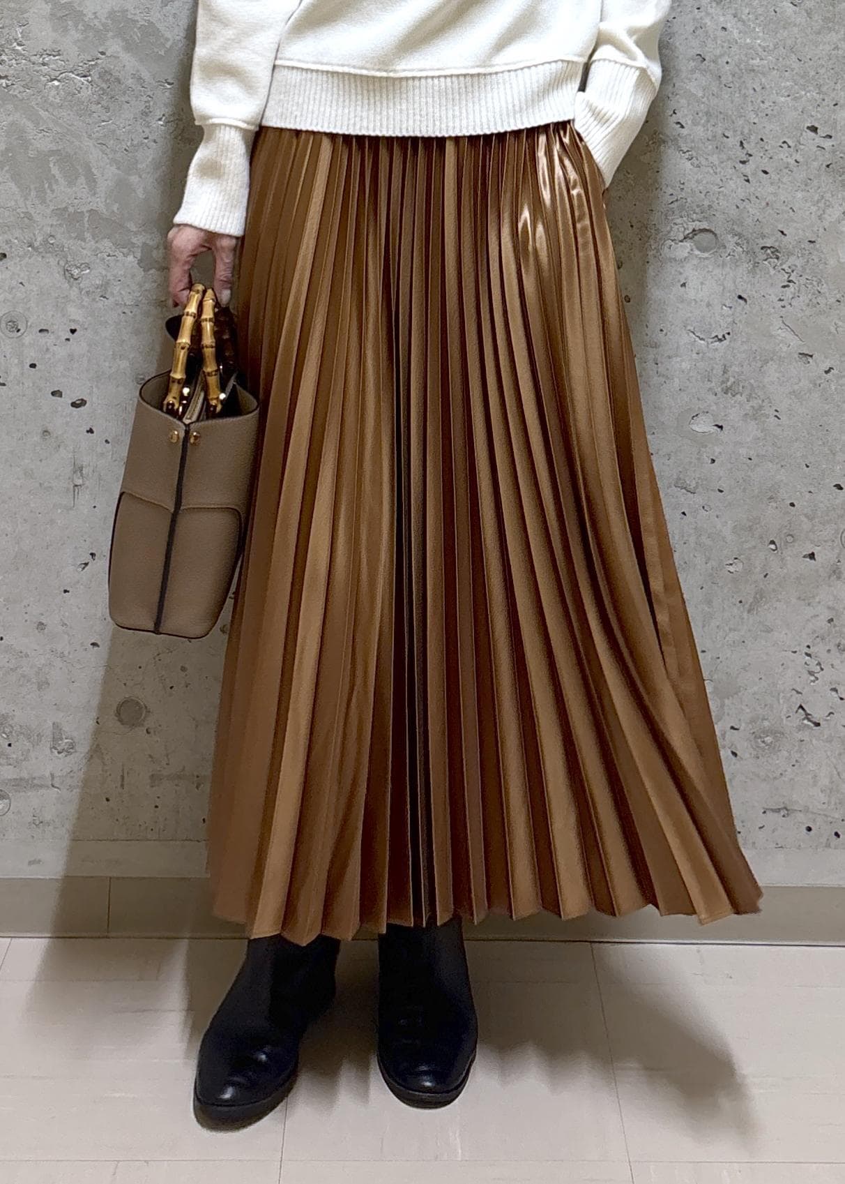 ROPÉシャイニープリーツスカート/イージーケアキャメル / F¥26,400レビュー普段スカートは36サイズ着用。