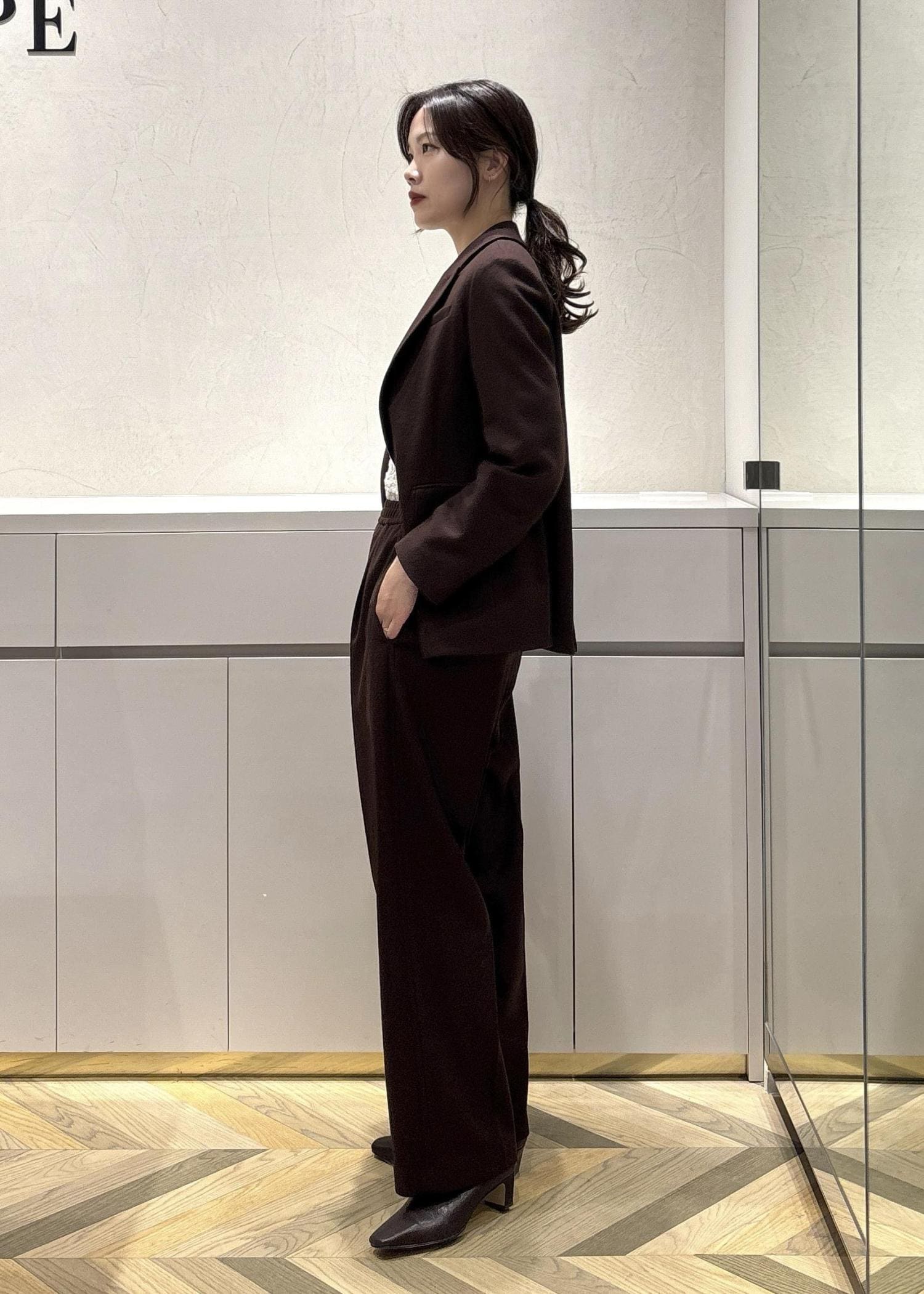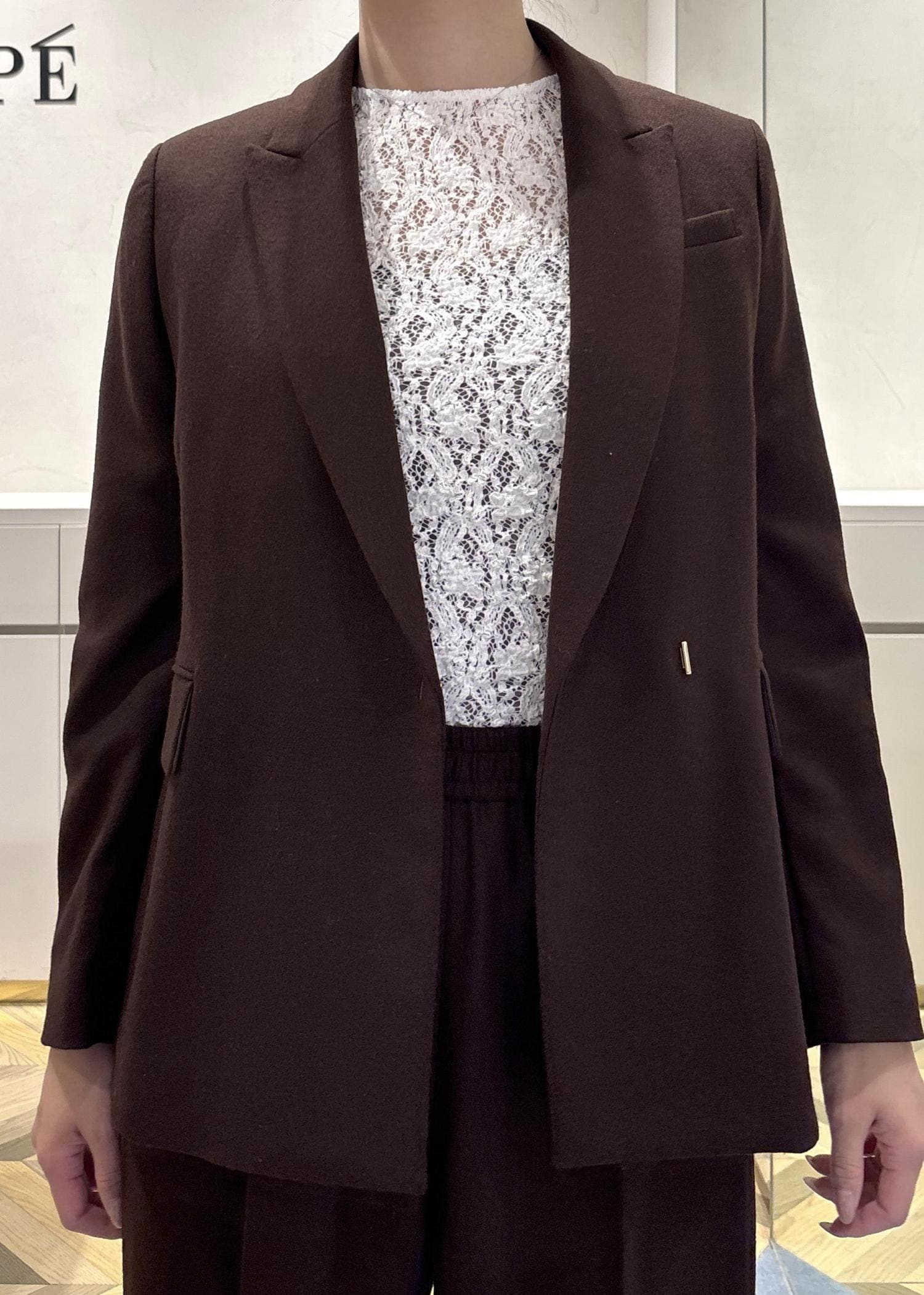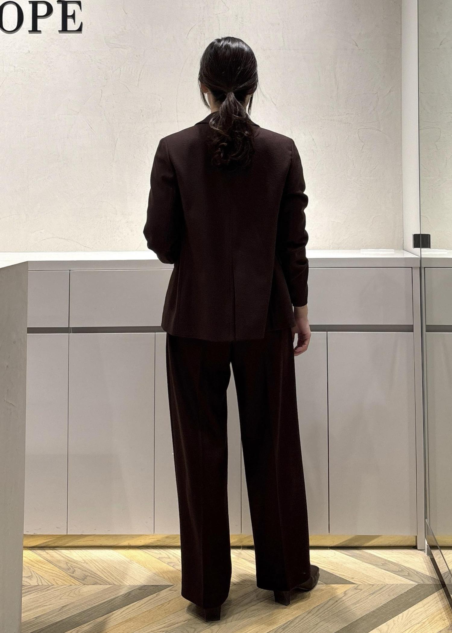ROPÉウールフランネルセミダブルジャケット/セットアップ対応ダークブラウン / 38¥44,000レビューボクシーシルエットのハンサムさと、セミダブルのすっきり感がきれいめな印象にも馴染むデザイン。