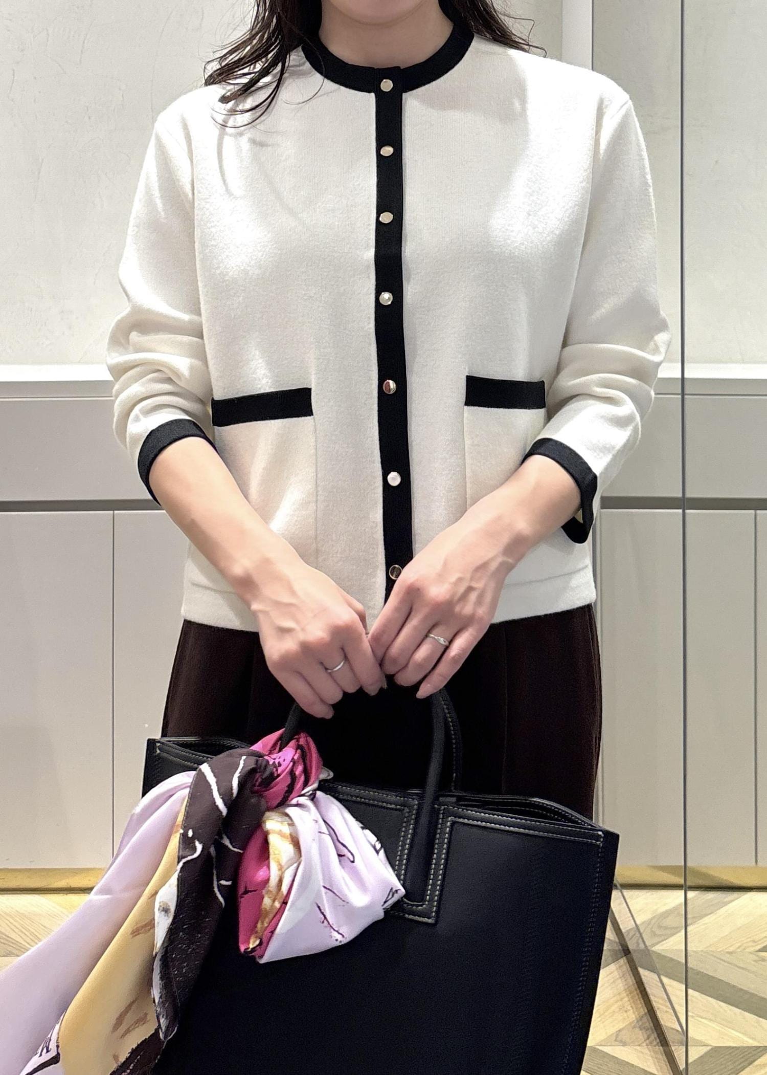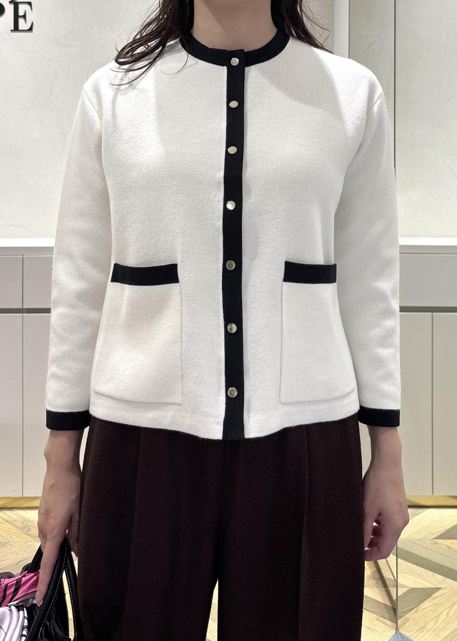 ROPÉ接結ウールバイカラーニットカーディガン/イージーケアオフホワイト / F¥30,800レビュー程よくデザイン性があり華やかな印象のカーディガン。