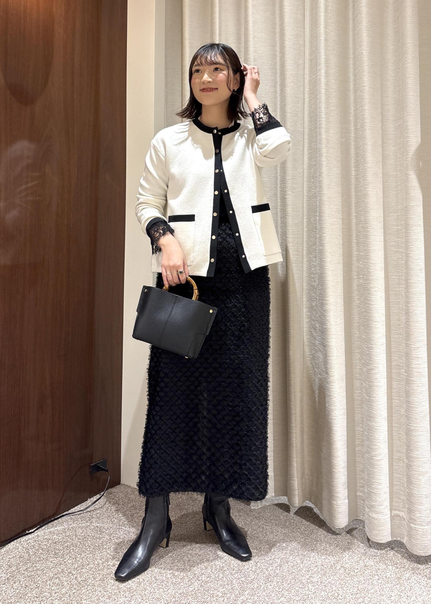きれいめフェミニンスタイリングで、冬の女子会やお食事におすすめです。
