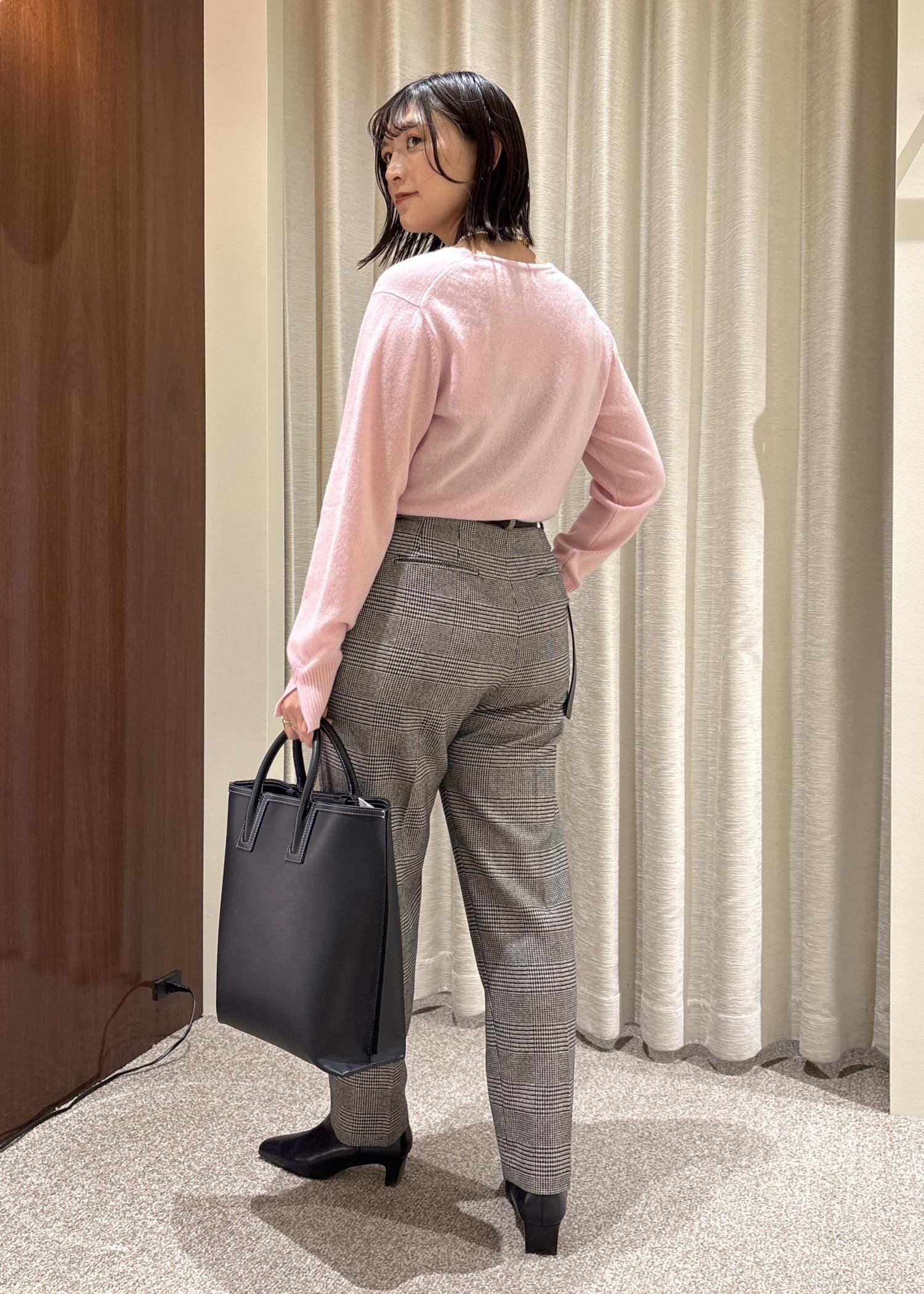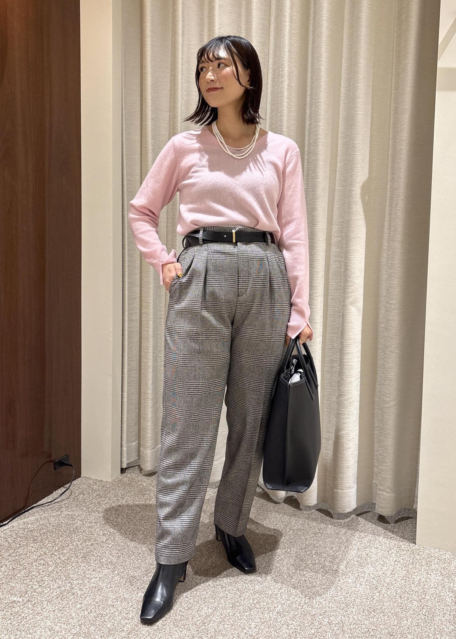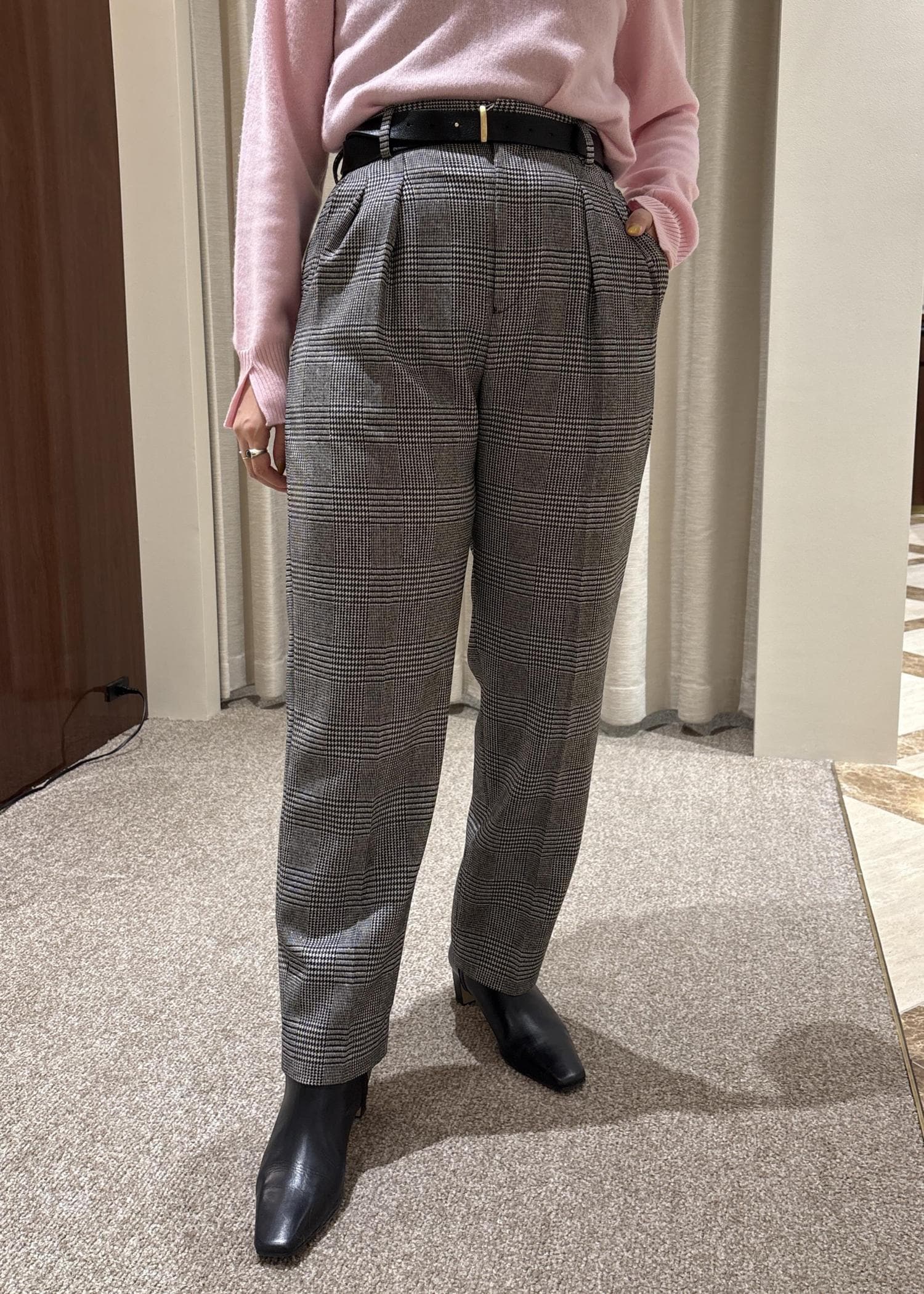 ROPÉウールレーヨンクラシック2タックパンツ(ヘリンボーン/グレンチェック)/セットアップ対応ブラック系 / 38¥27,500レビュー162cmで38サイズを着用しております。