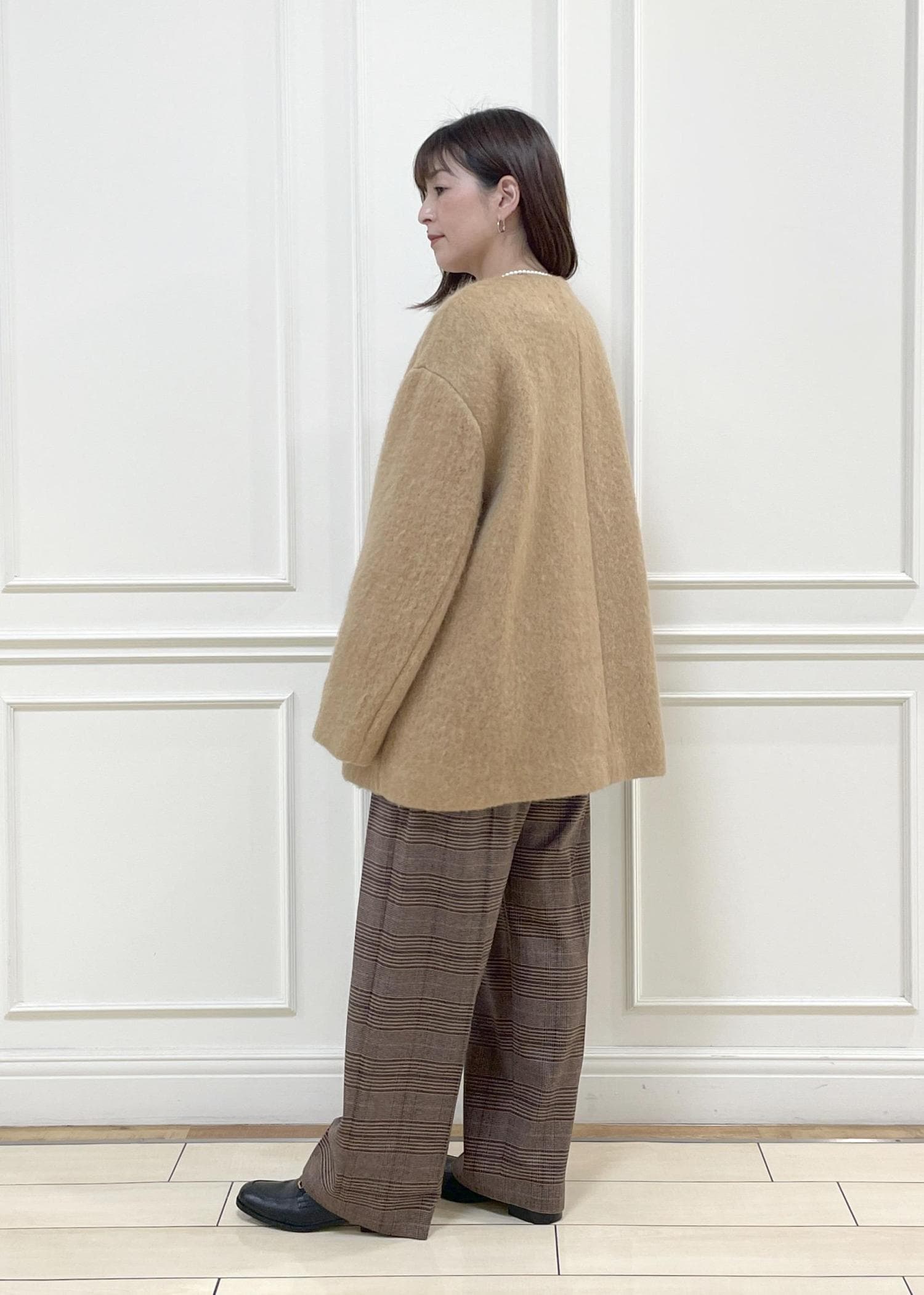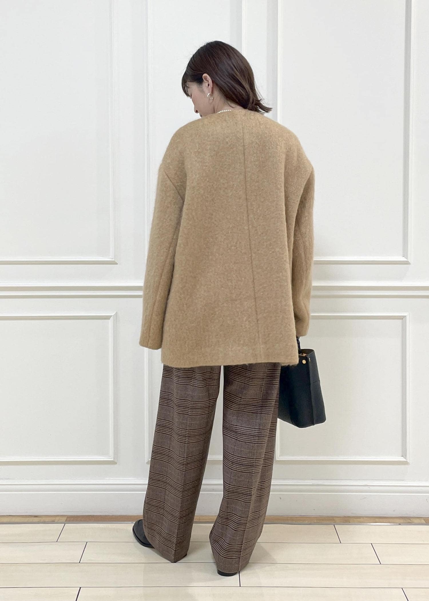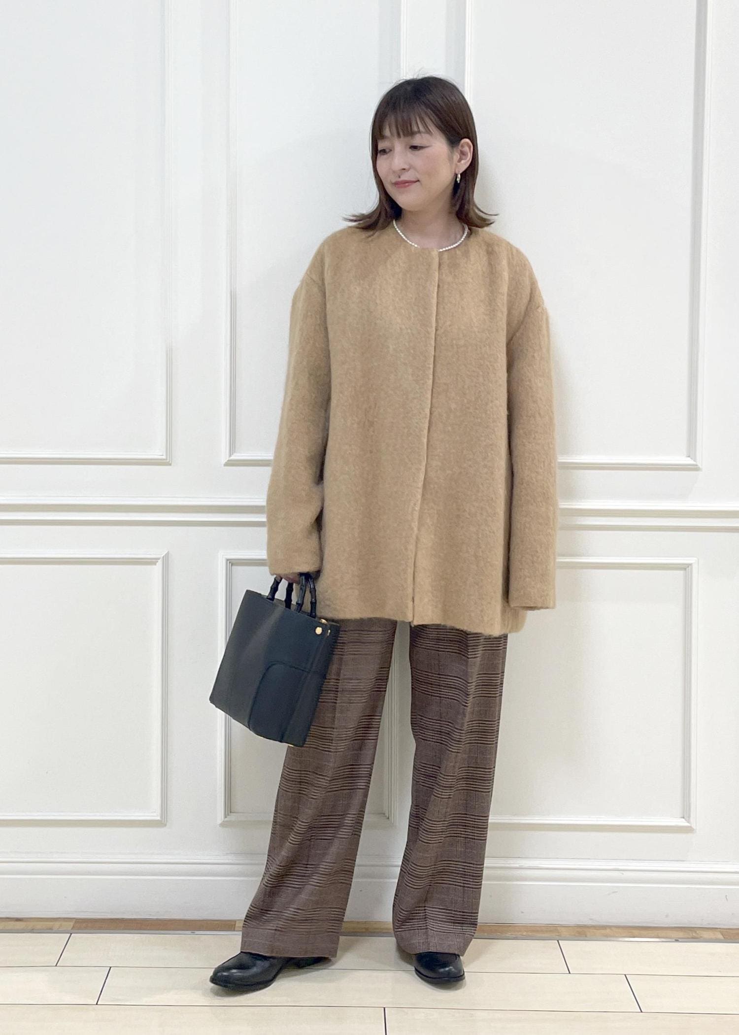ROPÉウールモヘヤノーカラーミドル丈コートベージュ / F¥68,200レビュー156cm、Fサイズ着用。