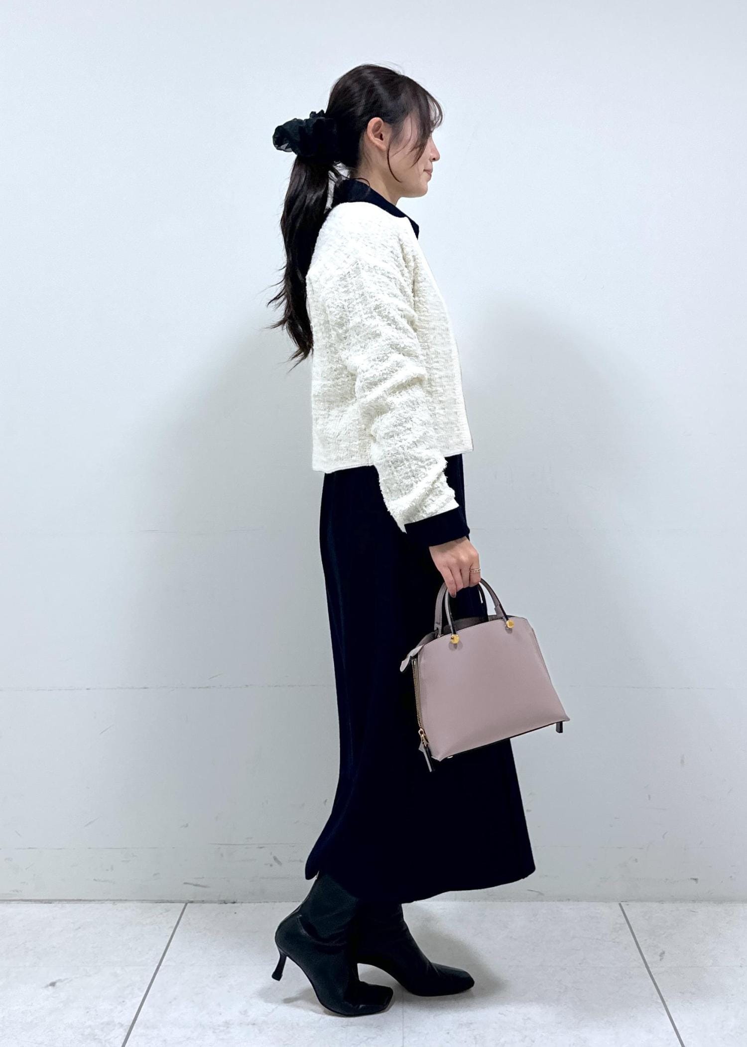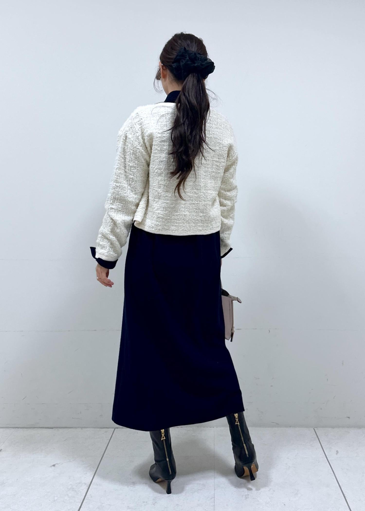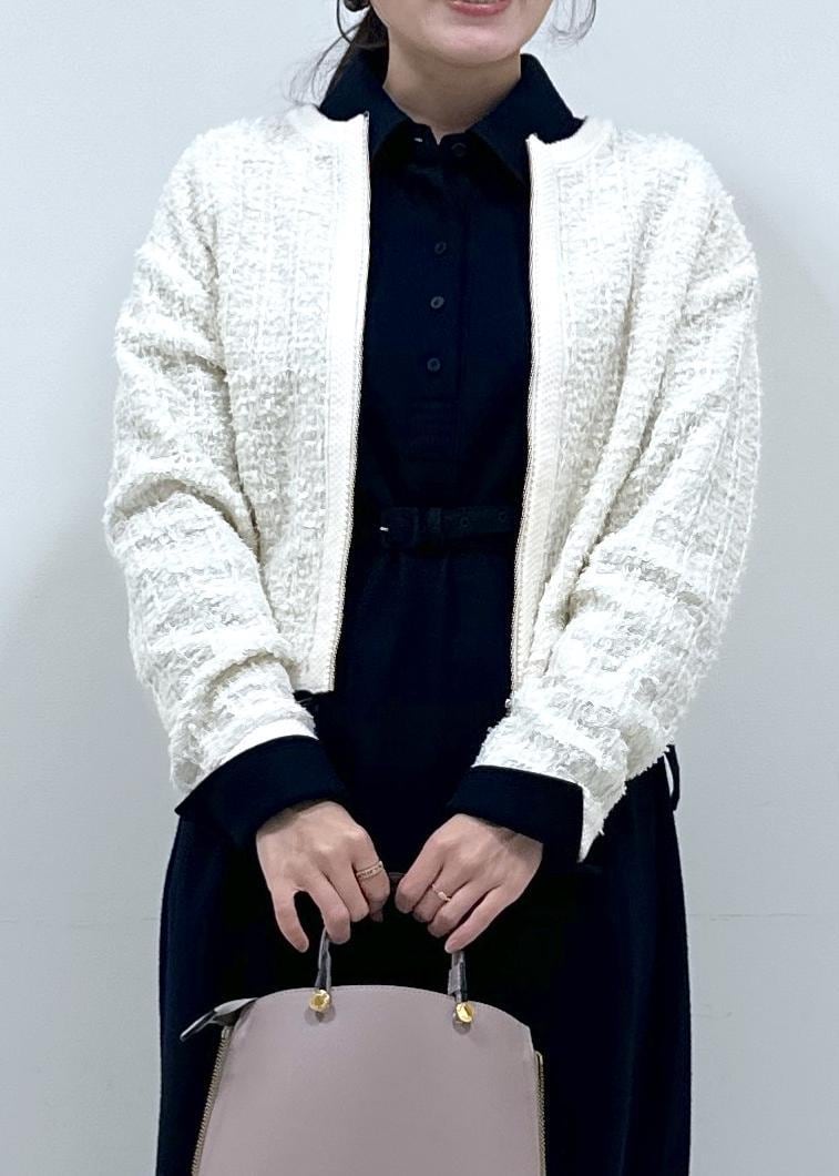 アウトレットROPÉツイードZIPノーカラーカーディガン/イージーケアキナリ / F¥17,710レビュー身長162cmでFサイズ着用。