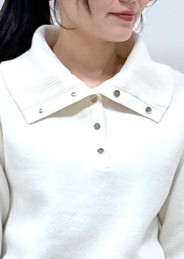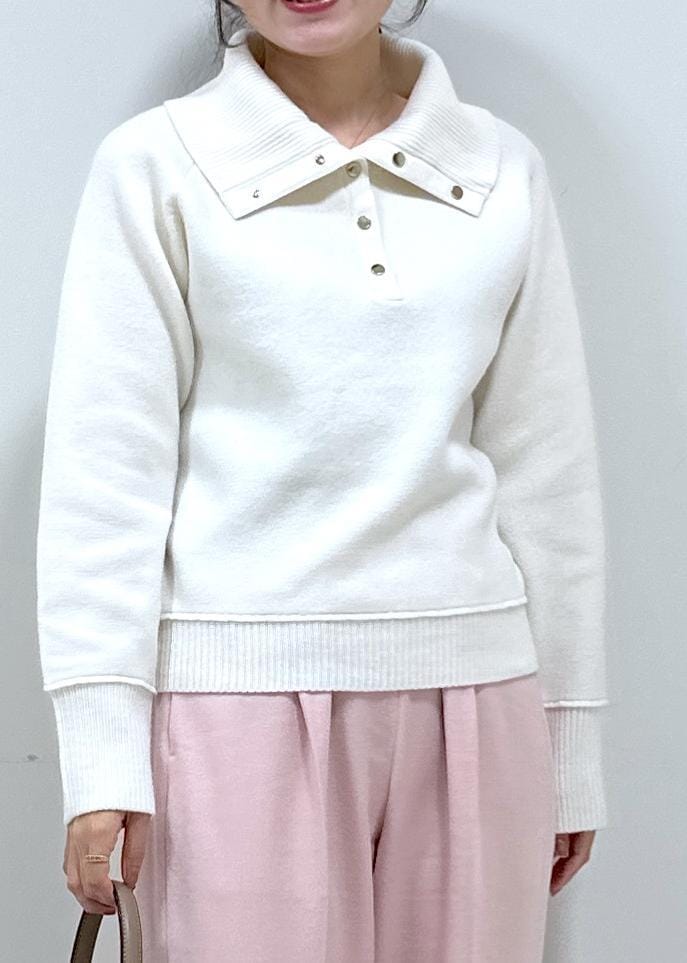 大きめの襟が華やかさをプラスし、ゴールドスナップがアクセントになる着映えニットです!