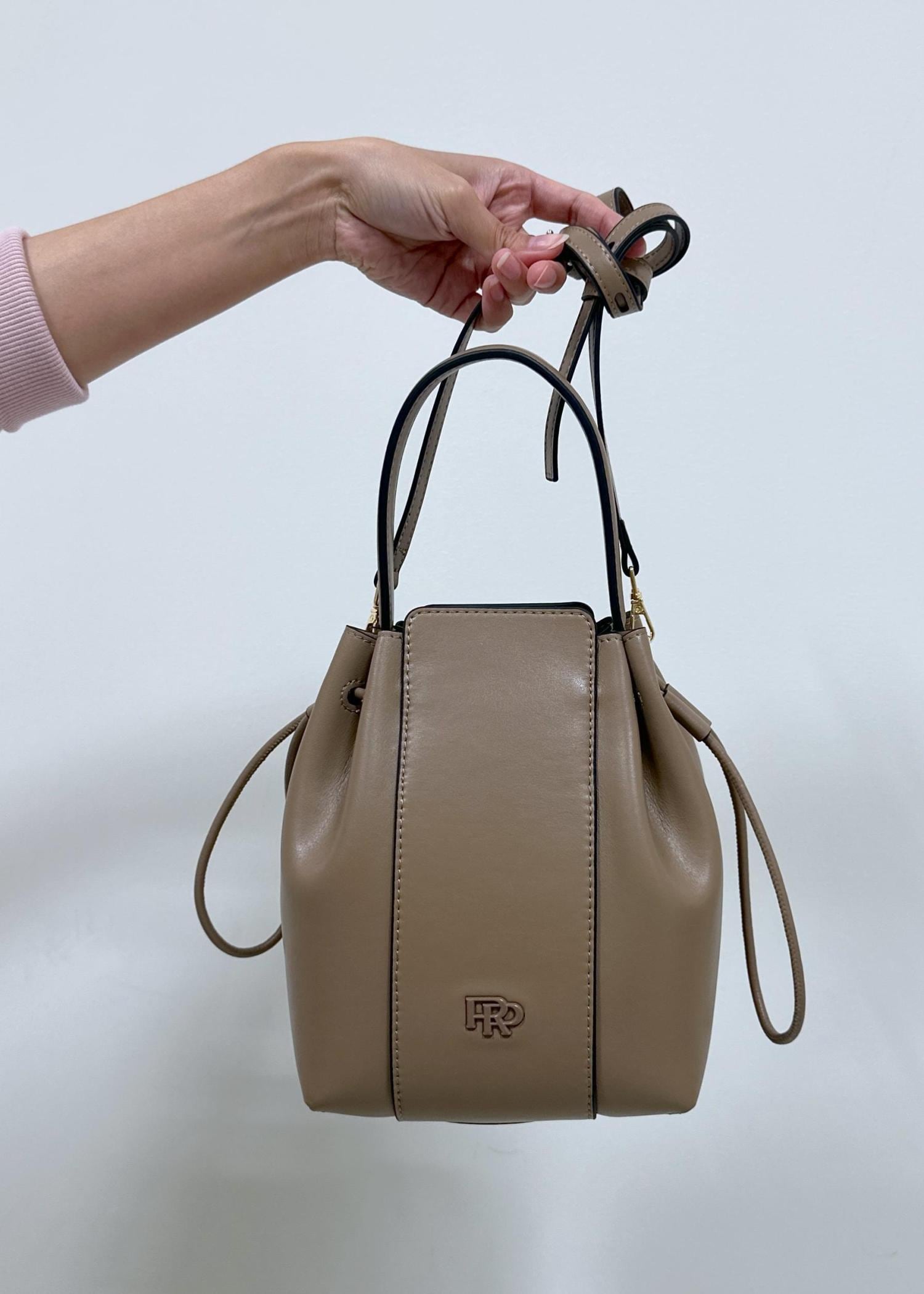 ROPÉ【WEB限定】RPロゴ スプリットレザードロストミドルバッグベージュ系 / F¥14,300レビュー折りたたみ財布、スマホ、小さめポーチなどお出かけに必要最低限のものが入る大きさです。