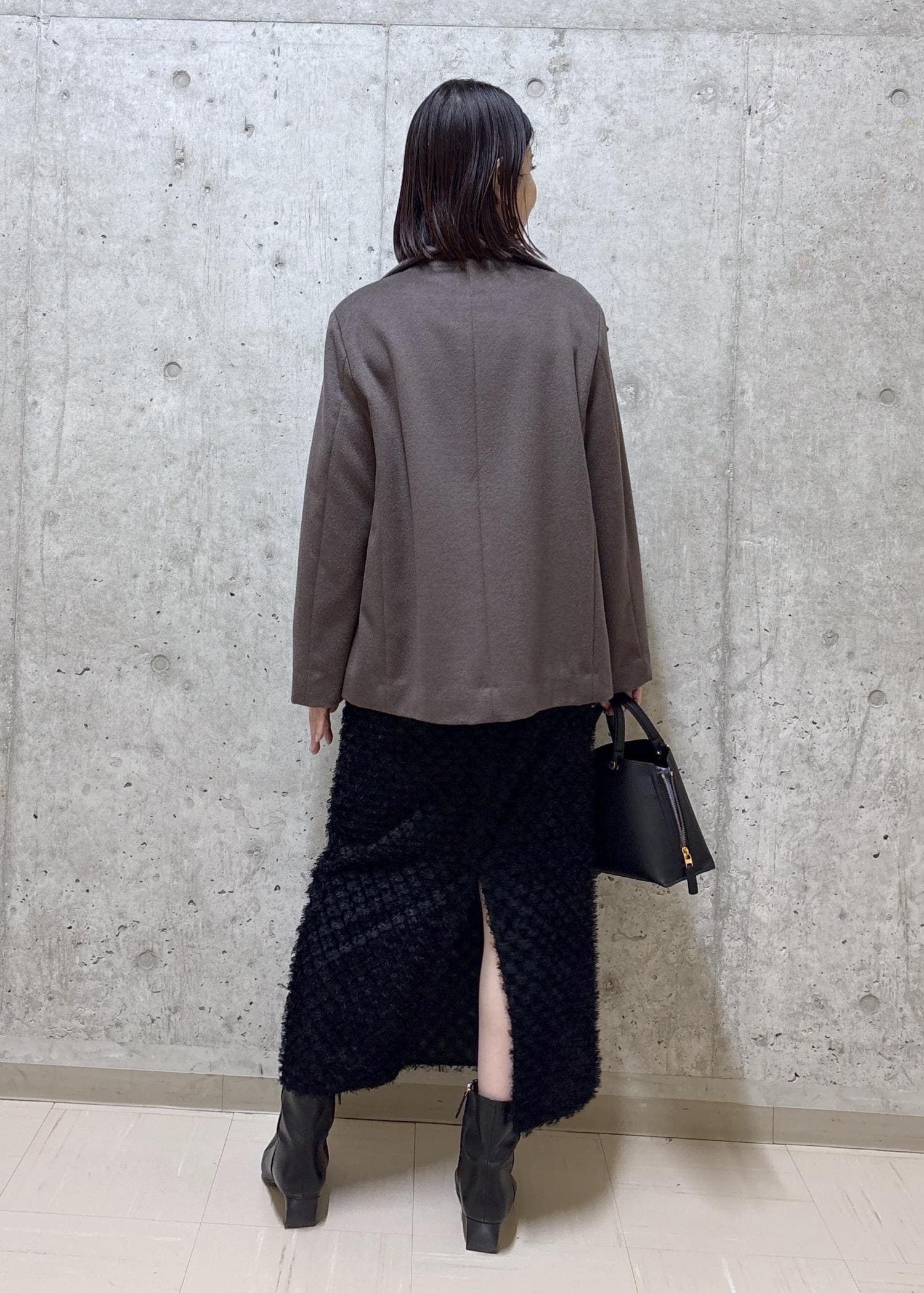 ショート丈のコートにタイトスカートでスッキリとしたスタイルアップしたコーディネイトにしました。