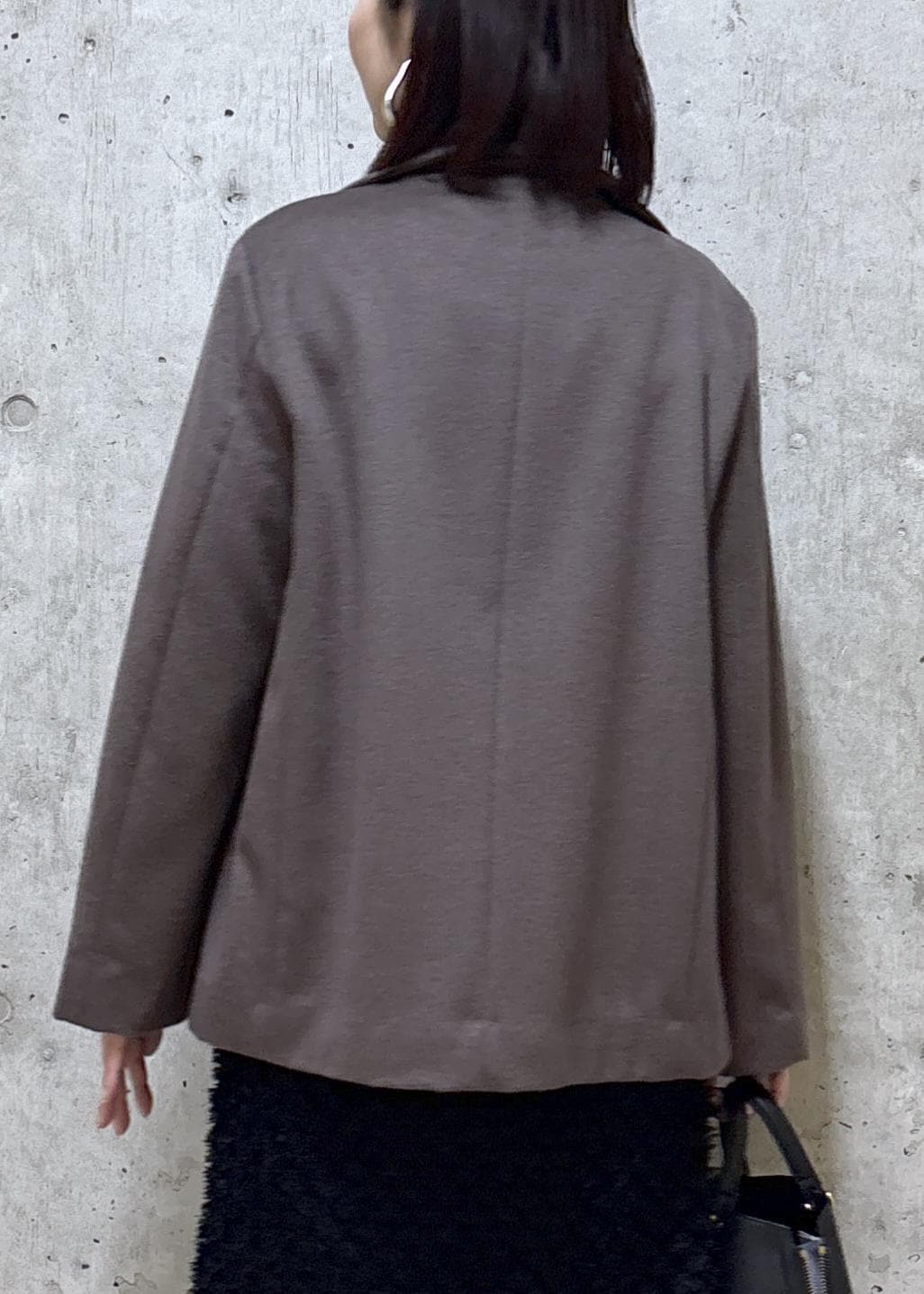 ショート丈でヒップがほとんど隠れる長さなので、パンツ、スカートスタイルにも合わせやすいです。