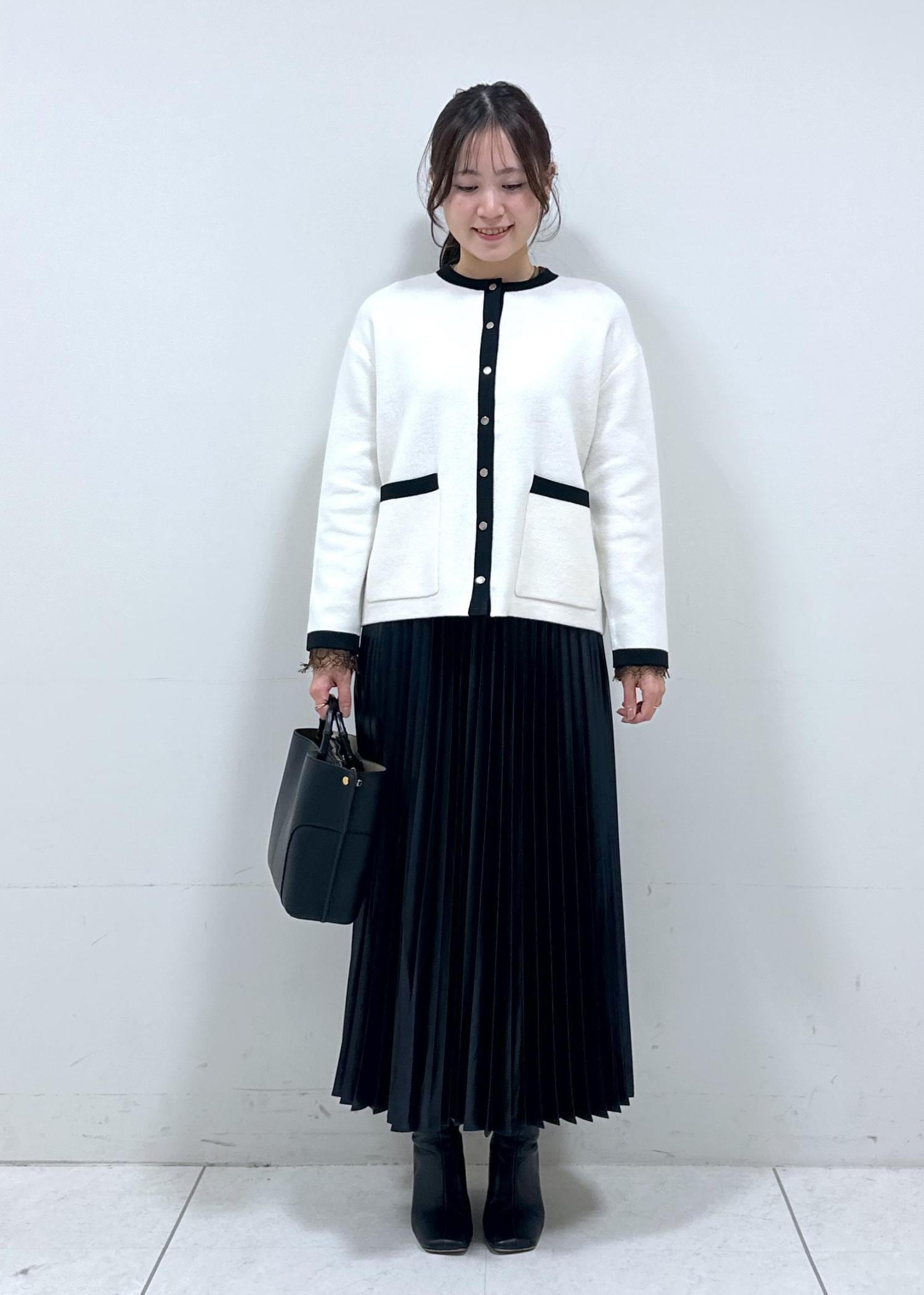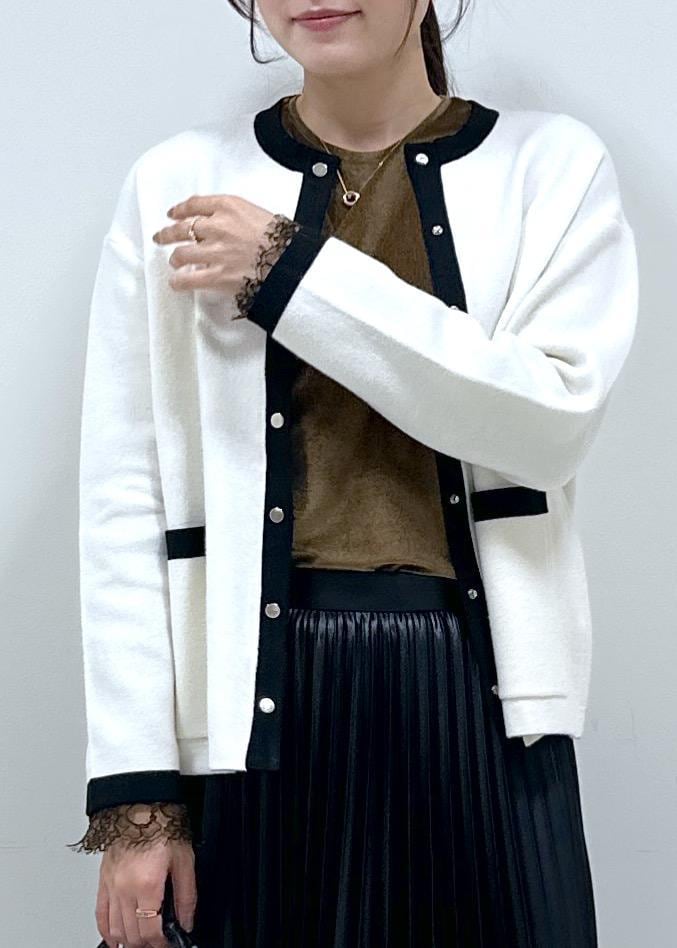 アウトレット 2BUY10%OFFROPÉ接結ウールバイカラーニットカーディガン/イージーケアオフホワイト / F¥21,560レビュー身長162cmでFサイズ着用。