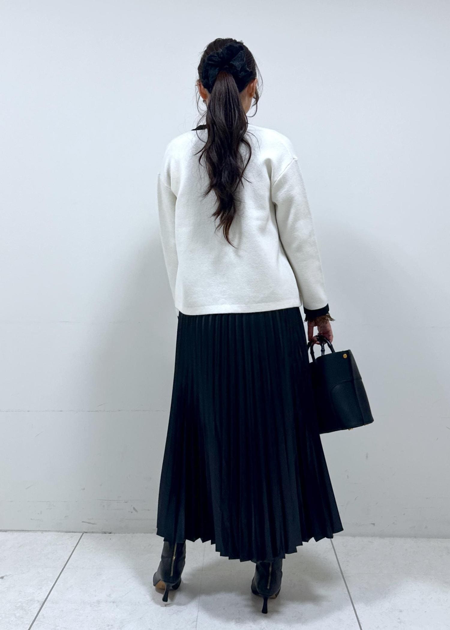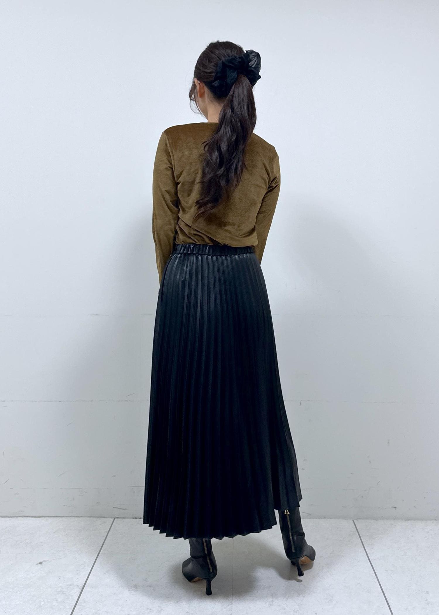 ROPÉシャイニープリーツスカート/イージーケアブラック / F¥26,400レビュー身長162cmでFサイズ着用。