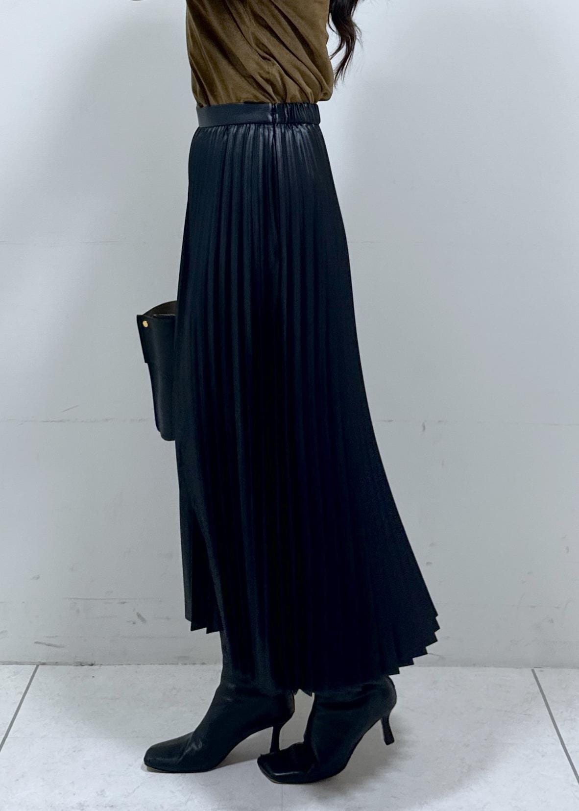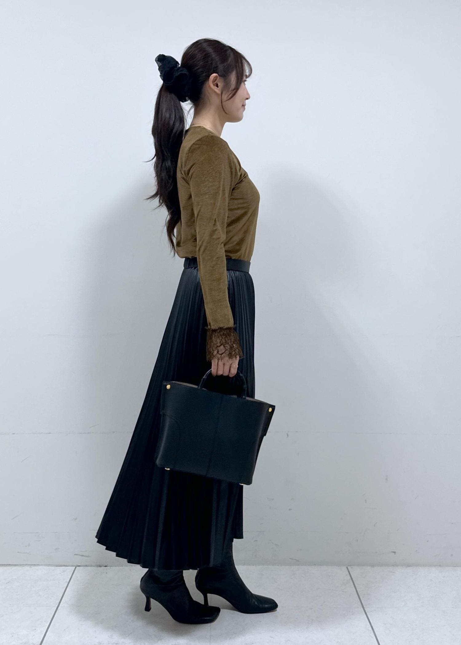 レザー見えするツヤ感のある生地感で、揺れ感があるので重すぎず軽やかな印象です。