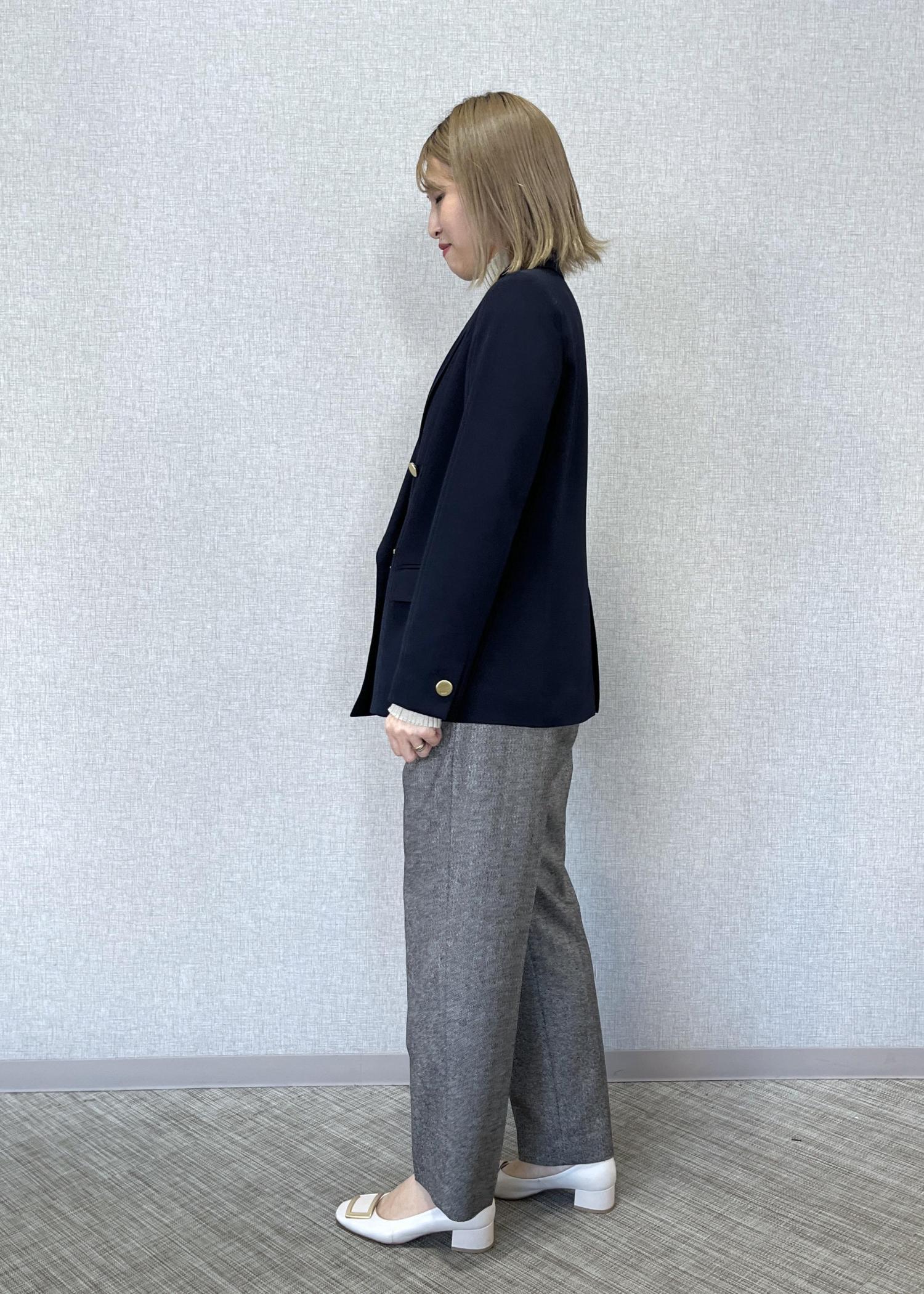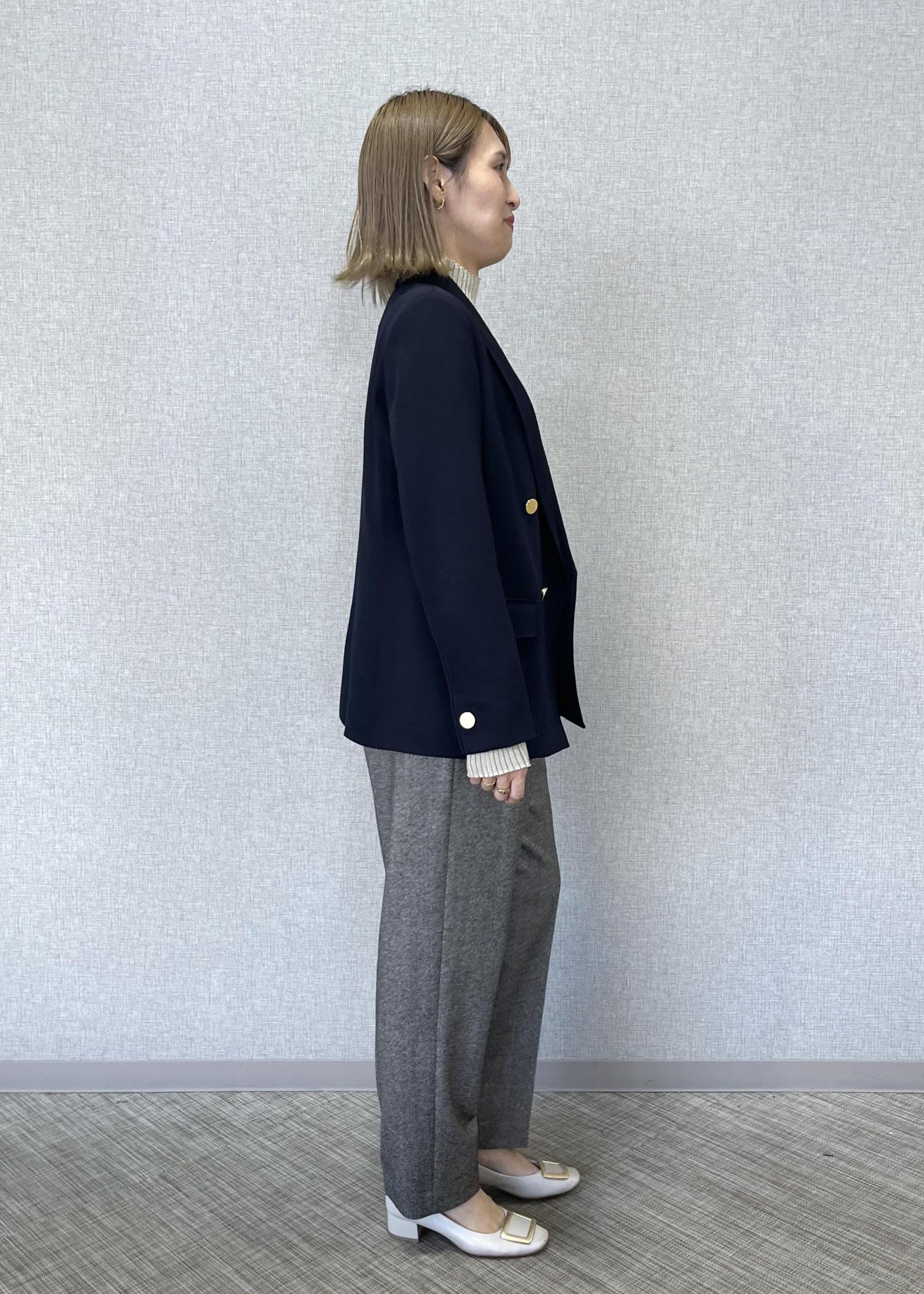 ROPÉストレッチ金ボタンブレザージャケットネイビー / 36¥52,800レビューいつもジャケットは少し大きく感じることが多いのですが、このジャケットはジャストサイズで着用できました。ウールジャケットですがゴワゴワ感は全くなく、とても軽くツヤ感と上品さがあります。