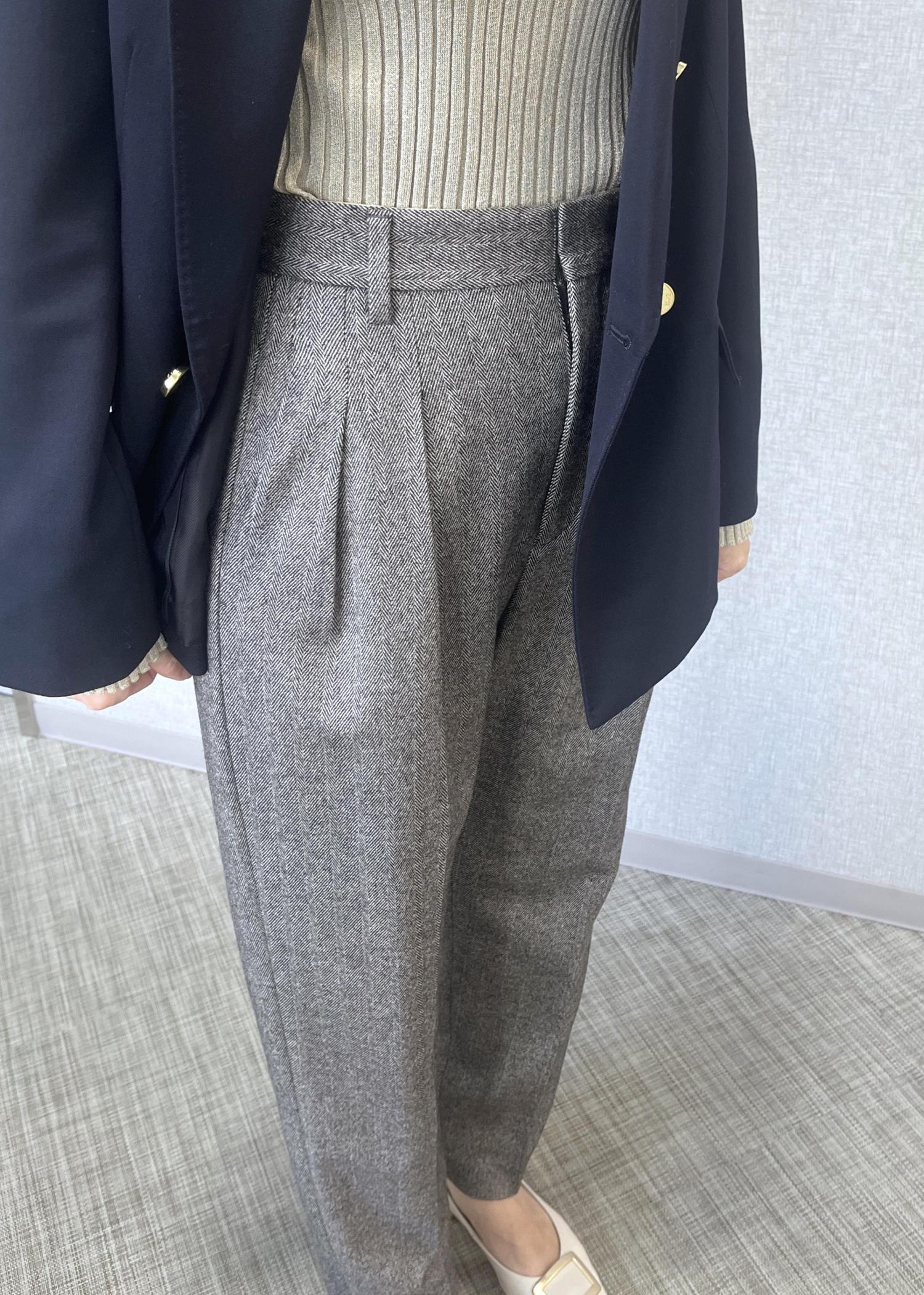 ROPÉウールレーヨンクラシック2タックパンツ(ヘリンボーン/グレンチェック)/セットアップ対応ブラック系 / 36¥27,500レビュー36サイズでウエストぴったりでした。
