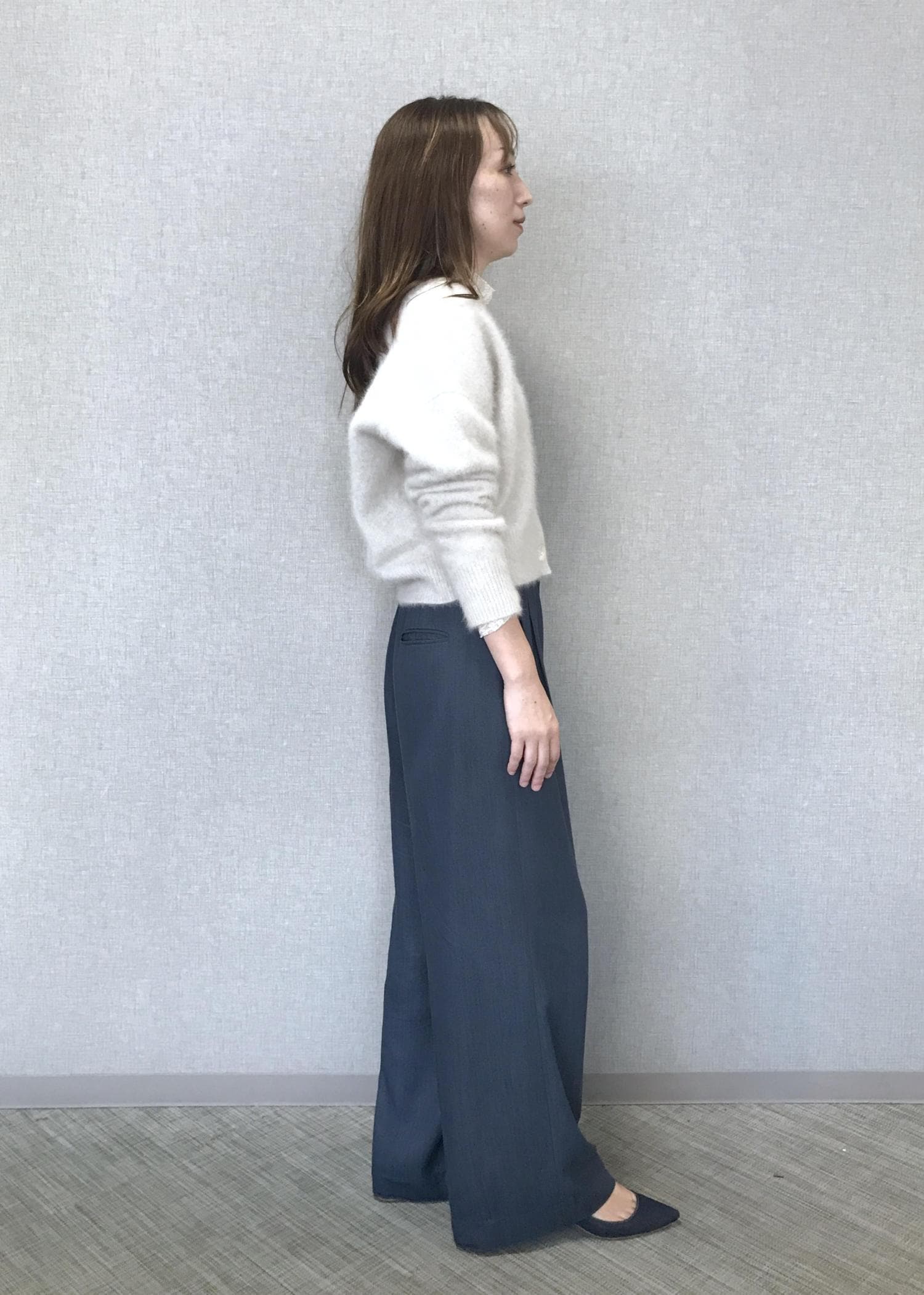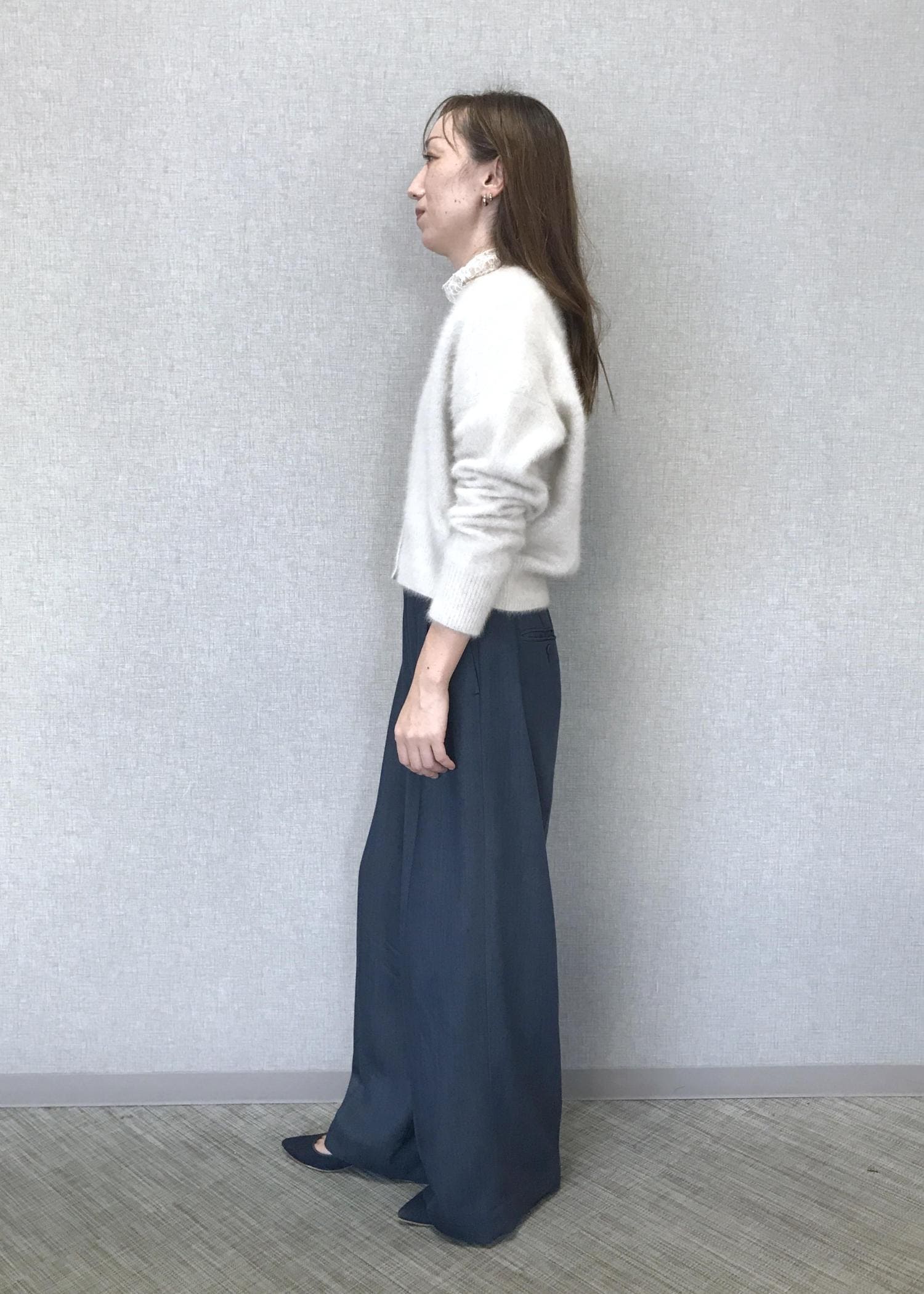 本格的な冬に向けて暖かみと華やかさの出るニットはいかがでしょうか?!ホワイト系の柔らかカラーでカラーボトムやシックなスタイルにも、私はデニムカラーで普段使いイメージでコーディネートしてみました。