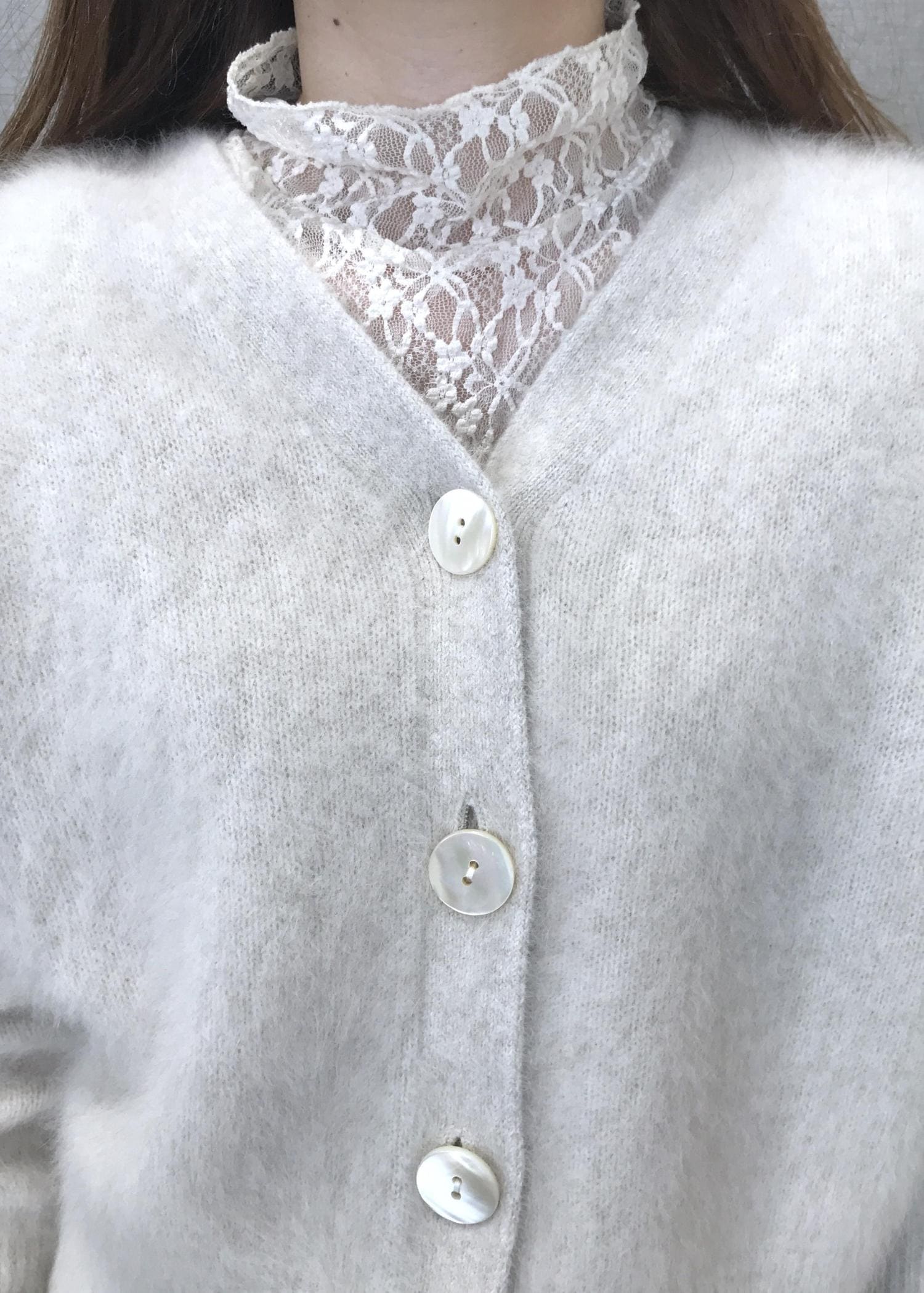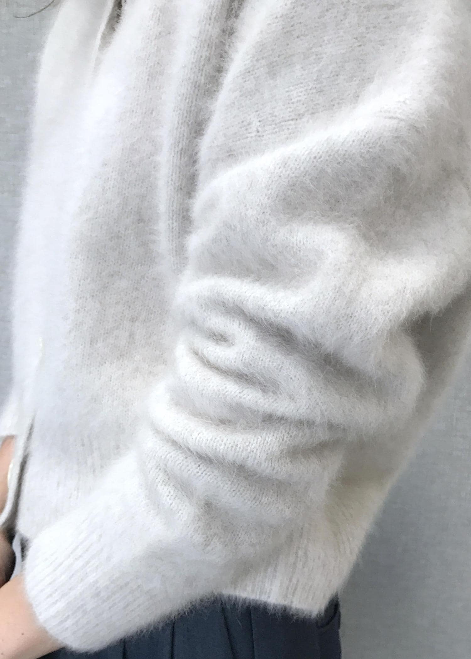 NEW!ROPÉフォックスカシミヤニットカーディガン/イージーケア・アンサンブル対応ホワイト系 / F¥33,000レビュー軽さの出る生地ですが、毛足が長く寒い日に身体を包み込んでくれる暖かさがあります。
