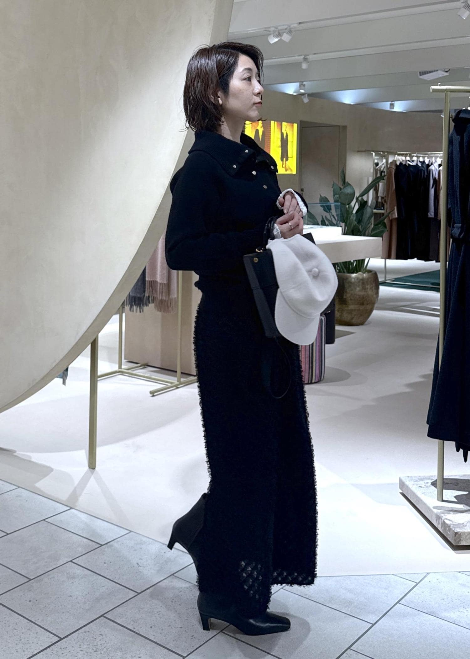 160cm未満でオールブラック合わせをしても重たくならないのが嬉しい1枚です。