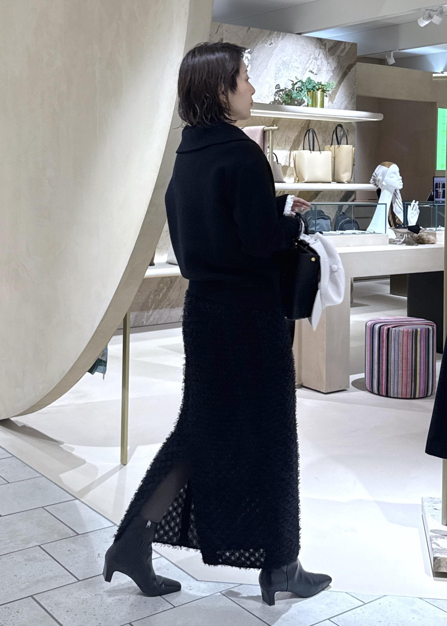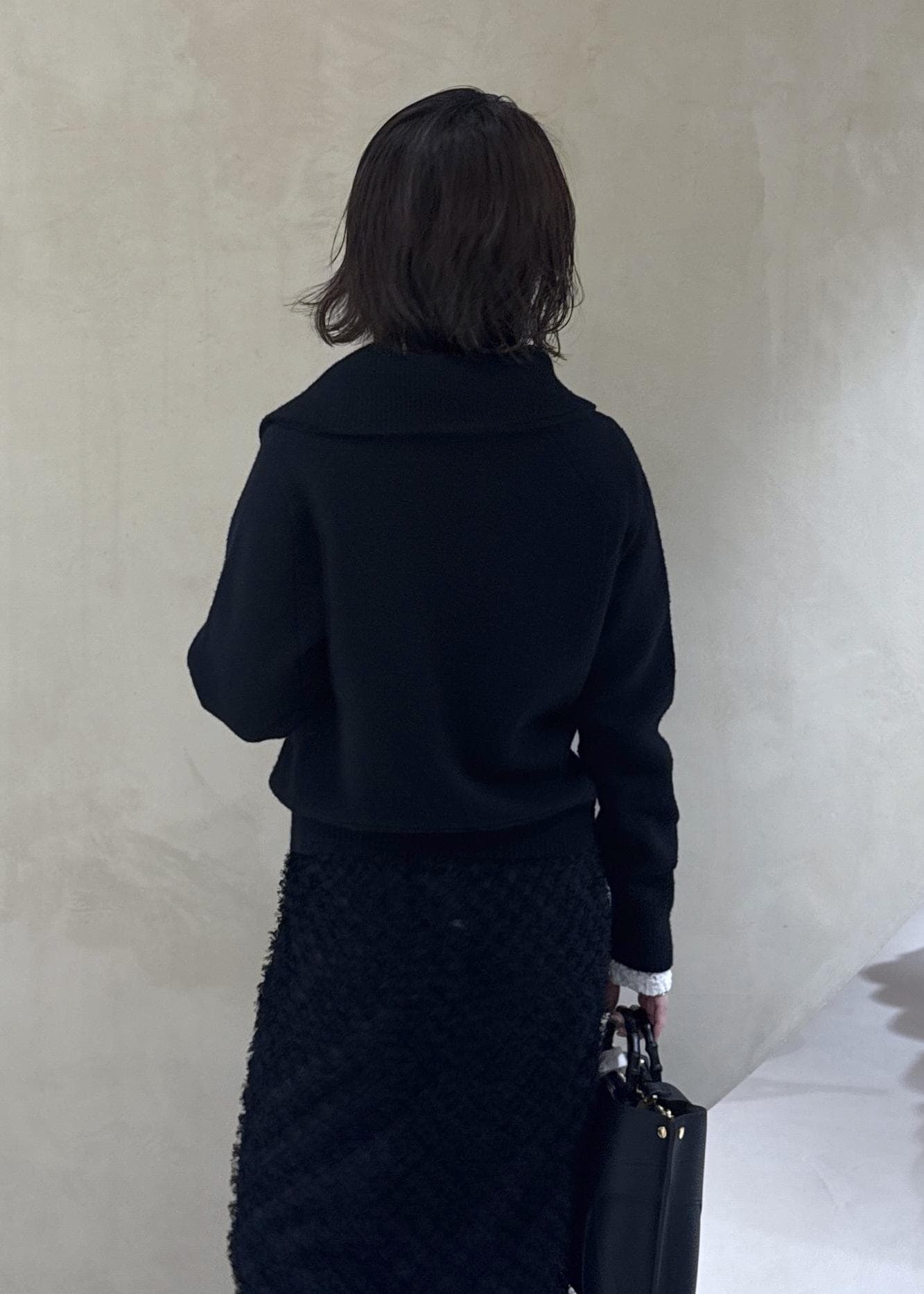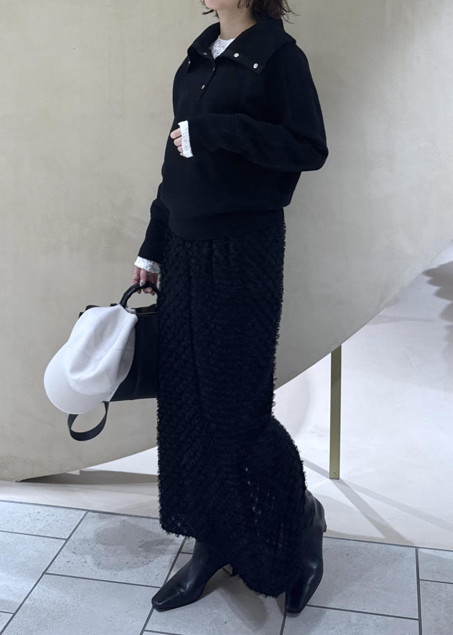 ジャガードが華やかさを足してくれる1枚ですが、毛足が長すぎないのでデイリー合わせもしやすいです。