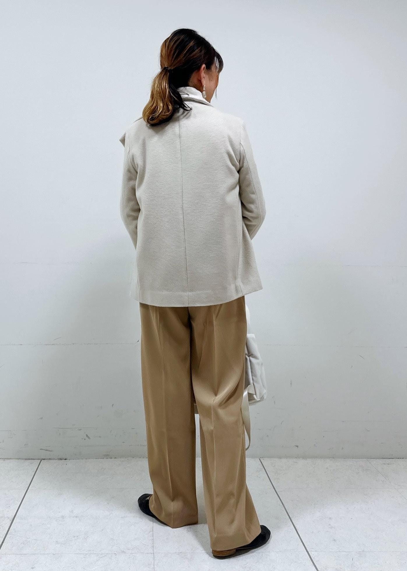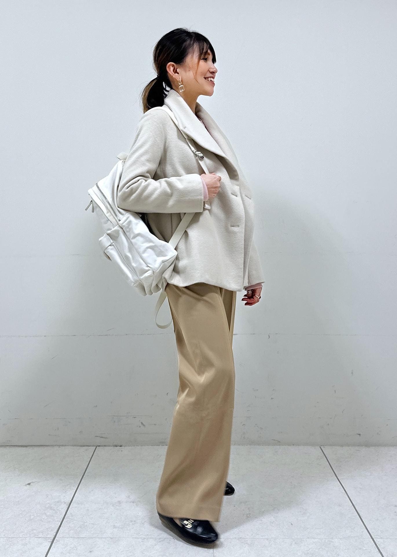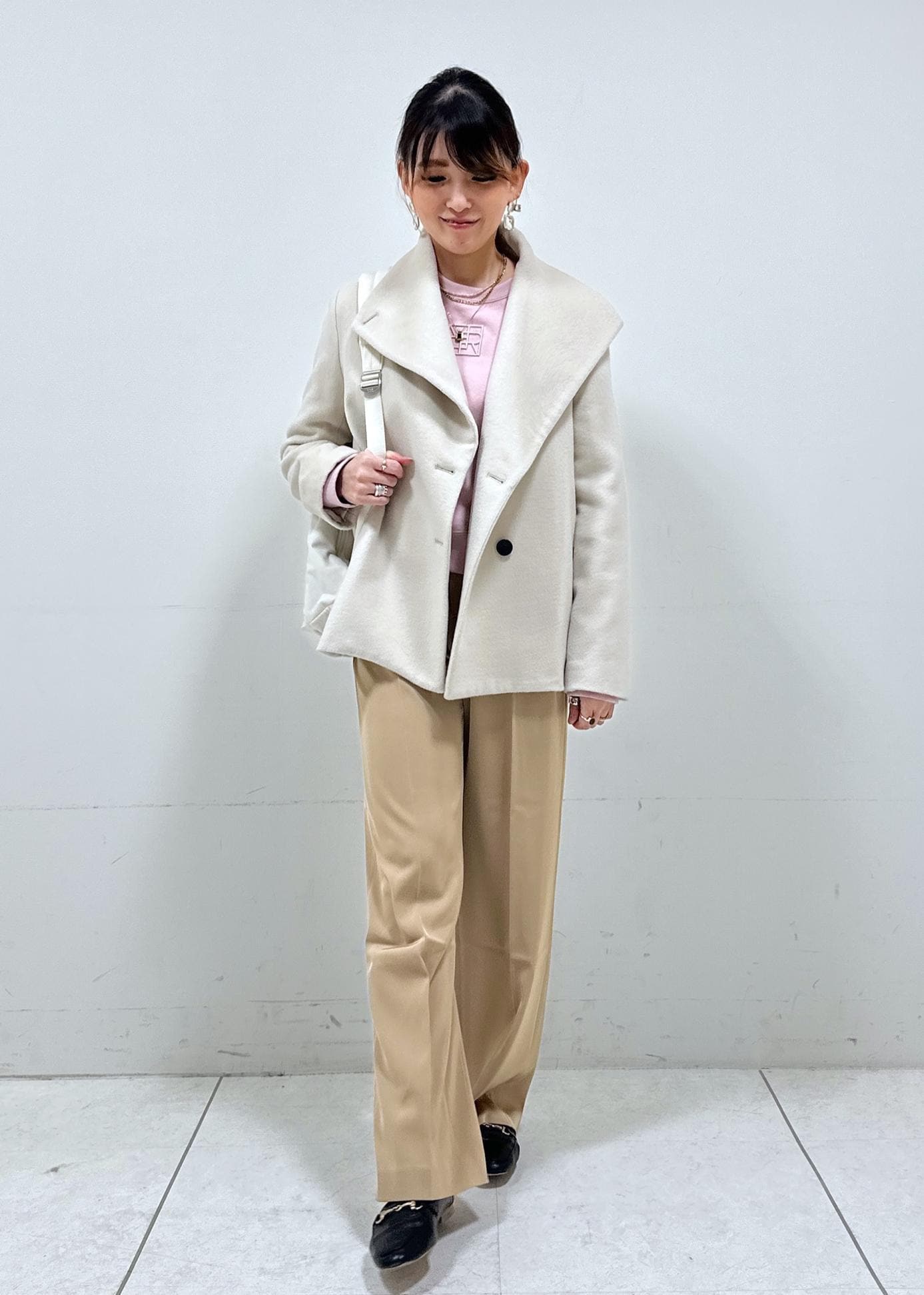 ショート丈なので着合わせの幅が多く、キレイ目なパンツやスカートとも、相性良く合わせられるタイプです。