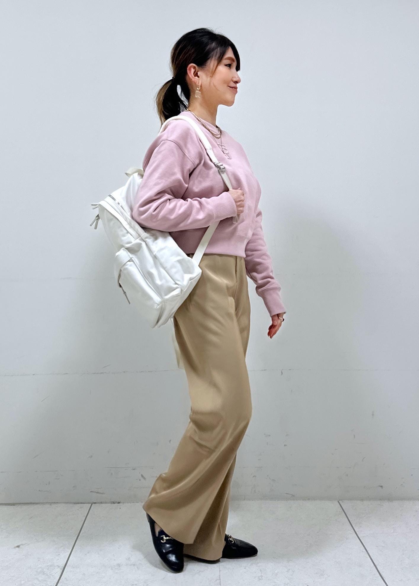 大きさもカジュアルに見えすぎない大きさなので、ワンピース×スニーカー等のキレイ目カジュアルスタイルにも持ちやすいです。