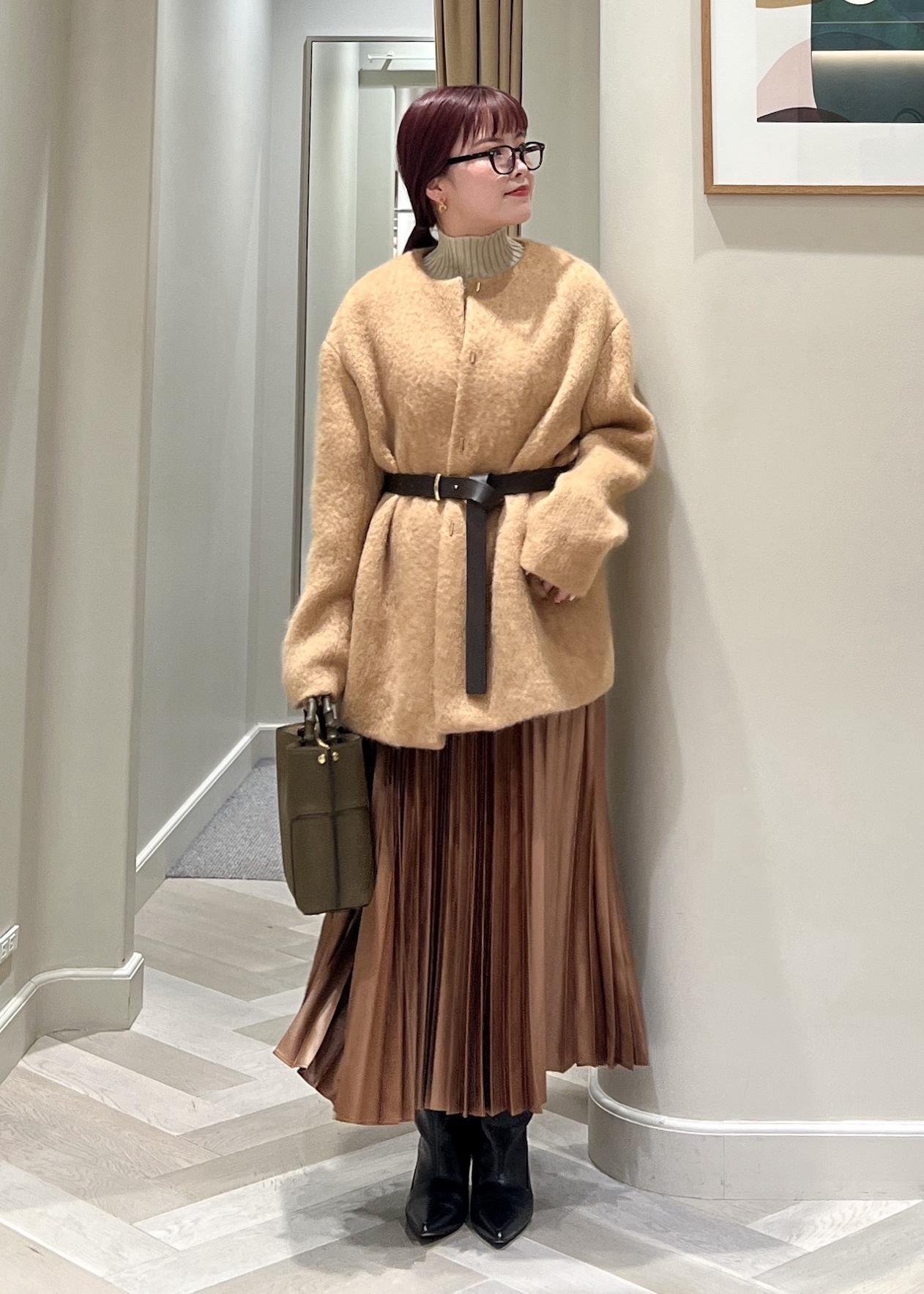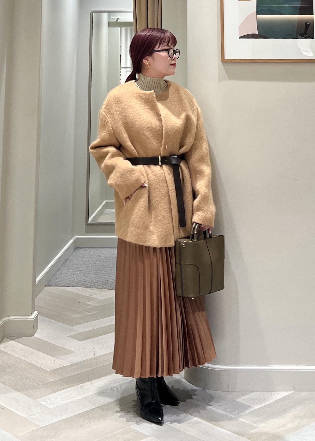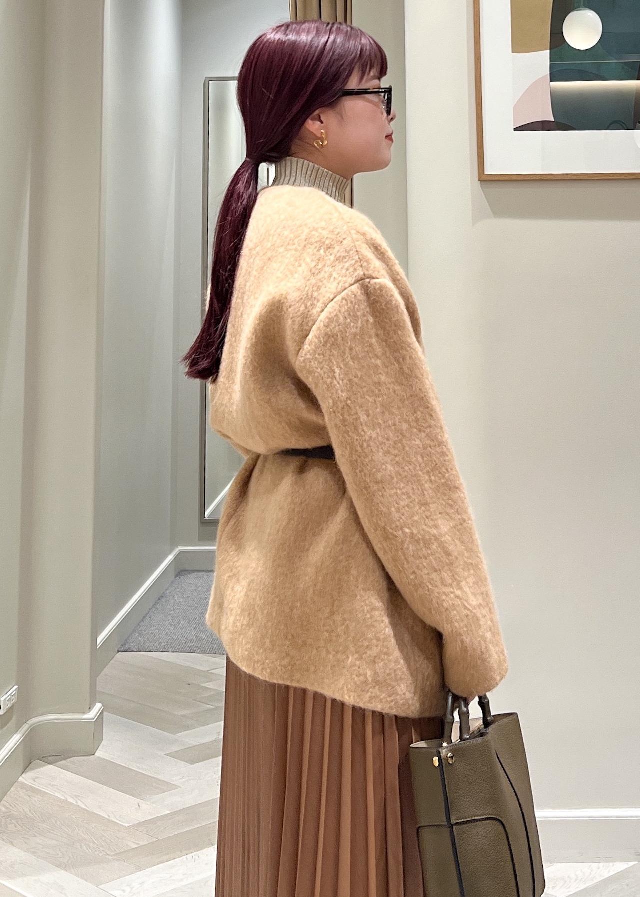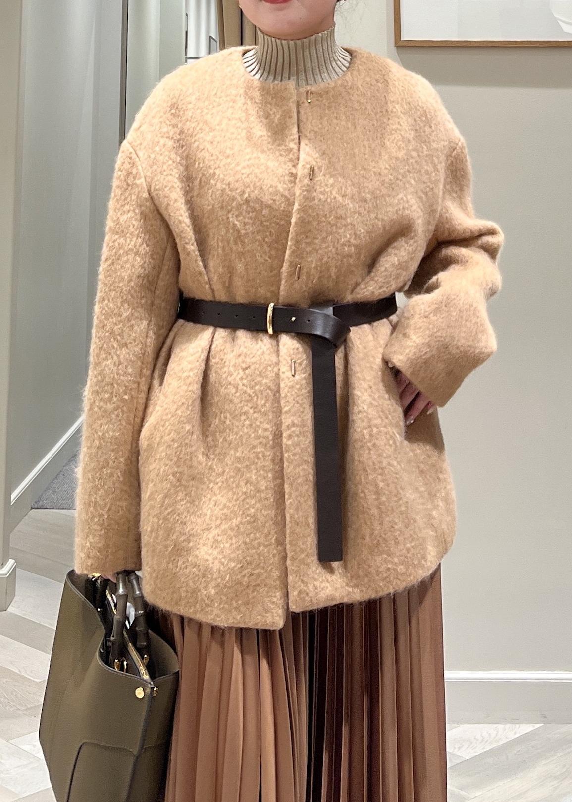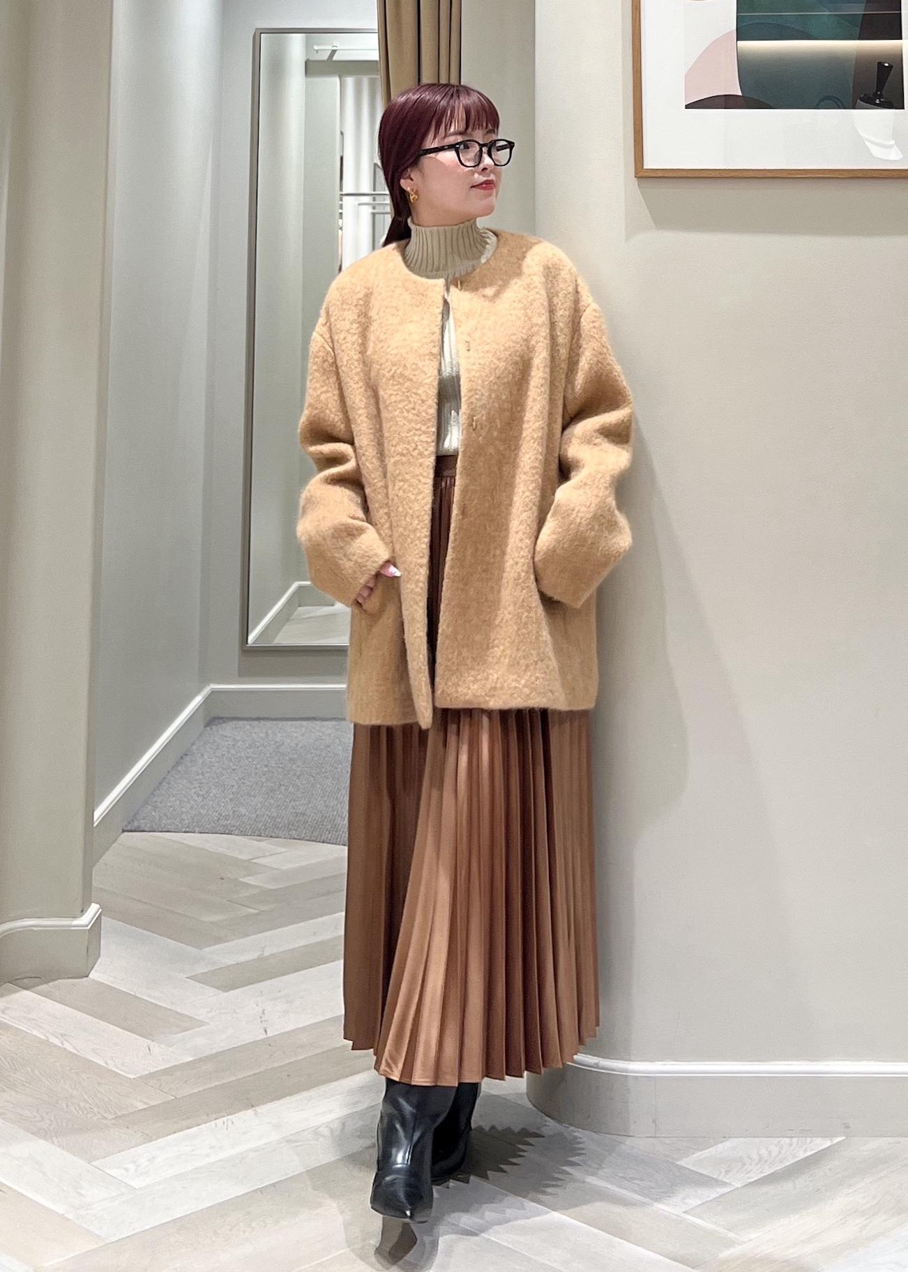 ROPÉウールモヘヤノーカラーミドル丈コートベージュ / F¥68,200レビューかなりオーバーサイズのゆったり感○