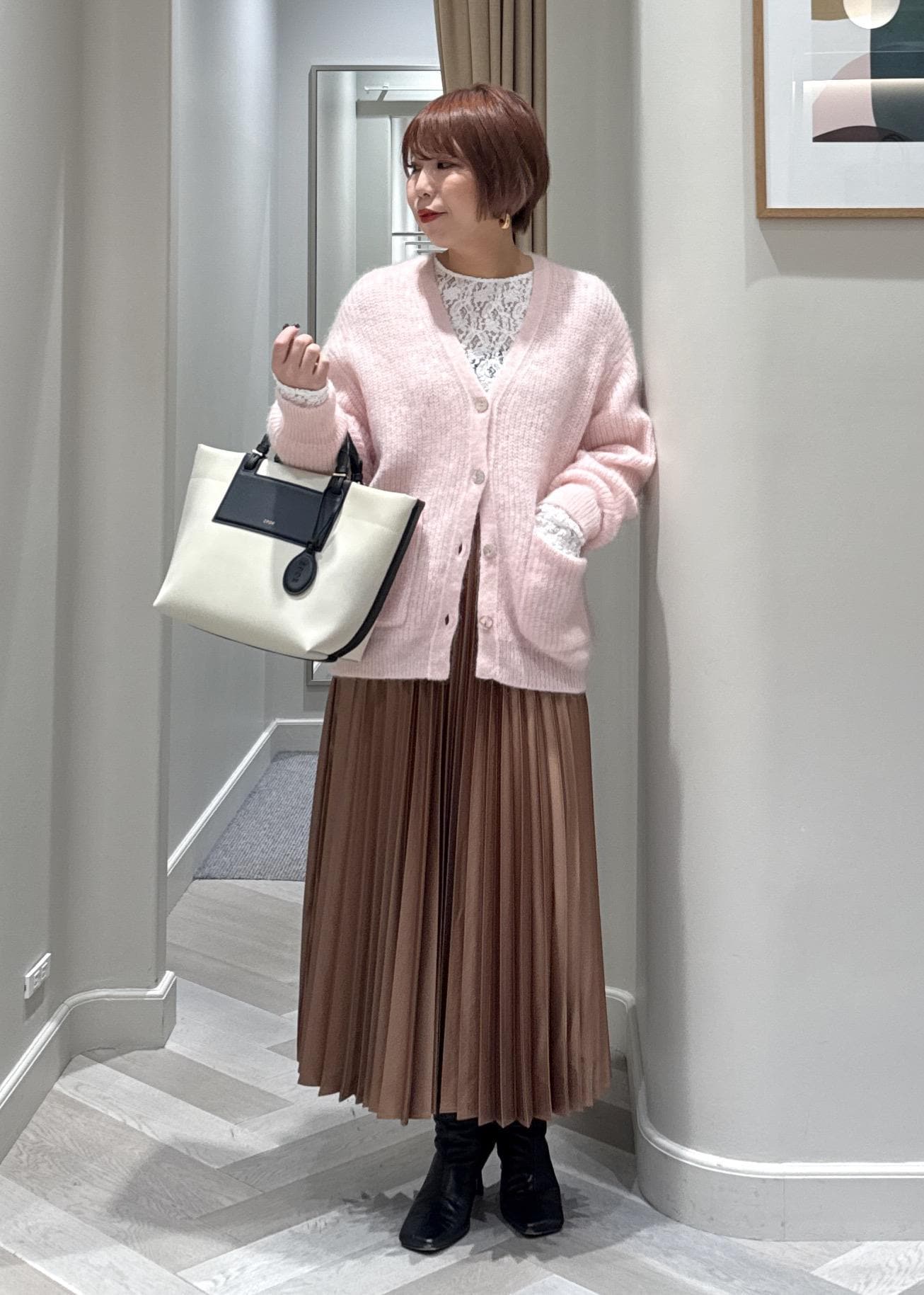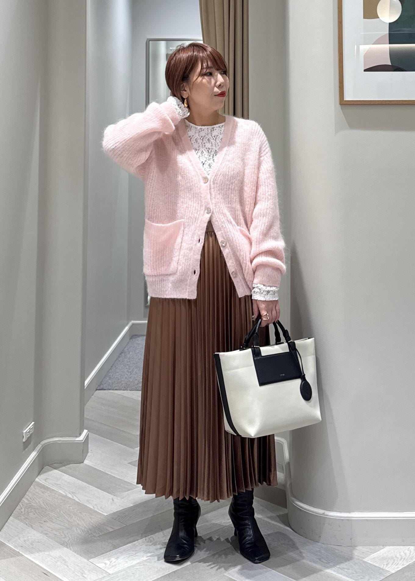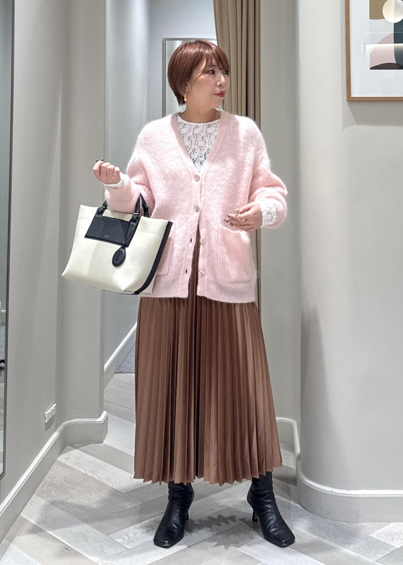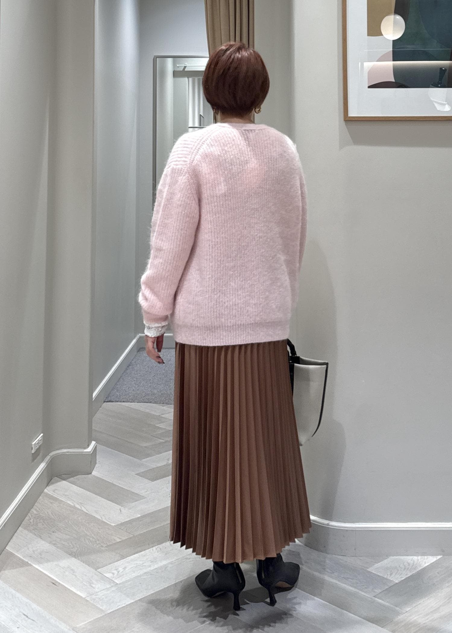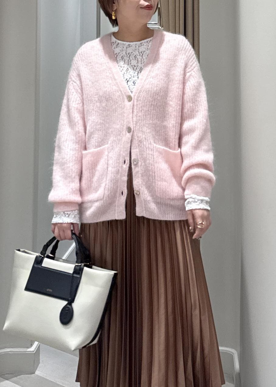 ROPÉスーパーキッドモヘヤVネックカーディガン/イージーケアピンク系 / F¥41,800レビューふわっと軽くて暖かい生地感。