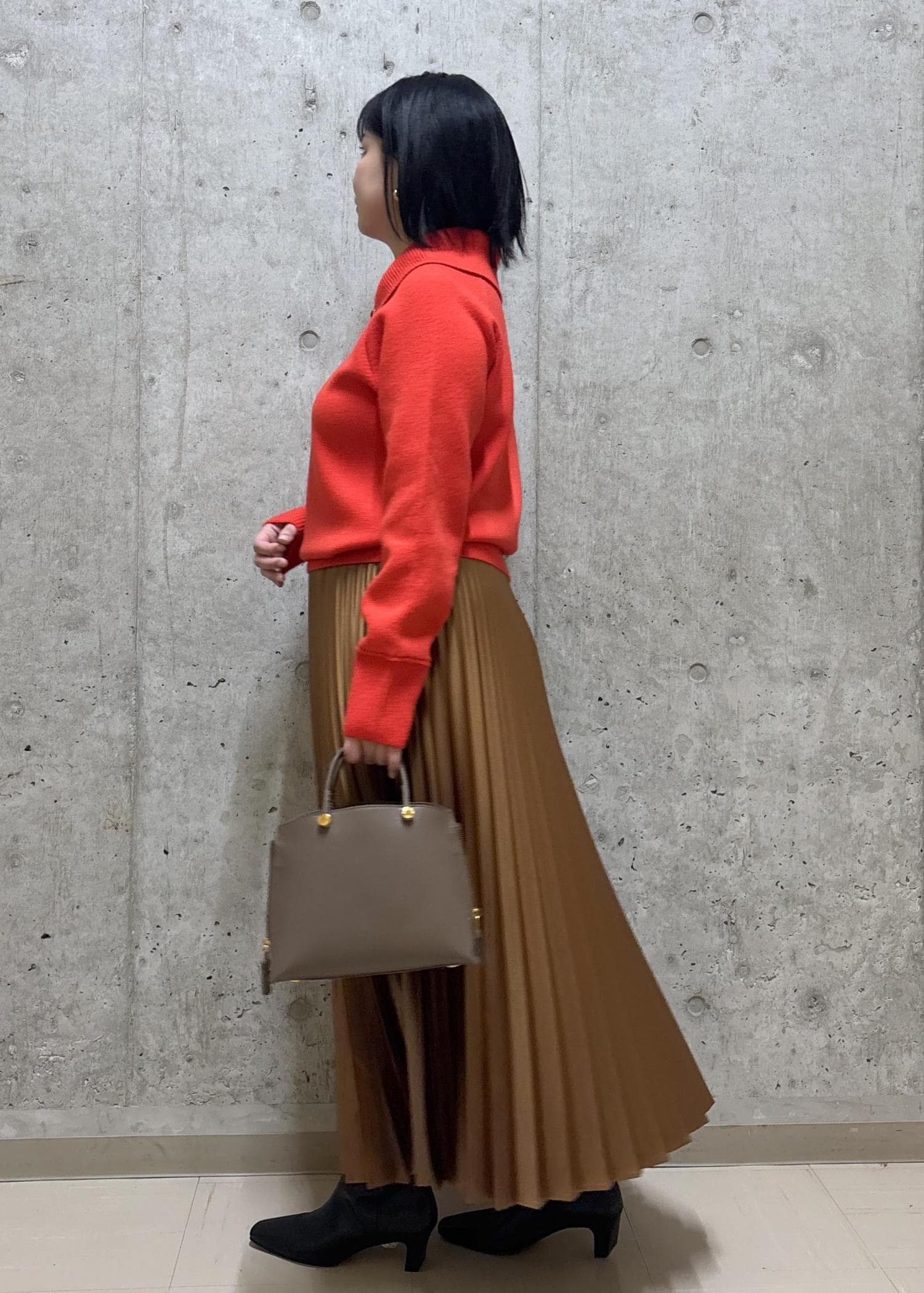 ROPÉシャイニープリーツスカート/イージーケアキャメル / F¥26,400レビュー152cmでFサイズ着用