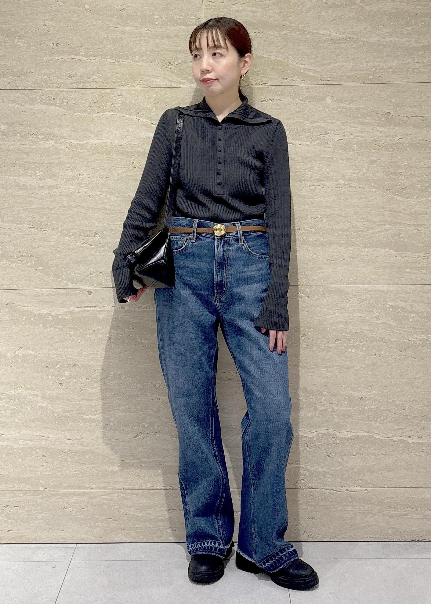 SALON adam et ropéCOTTON USAセミフレアデニム 3ブルー系 / S¥16,500レビュー153cmSサイズ着用。