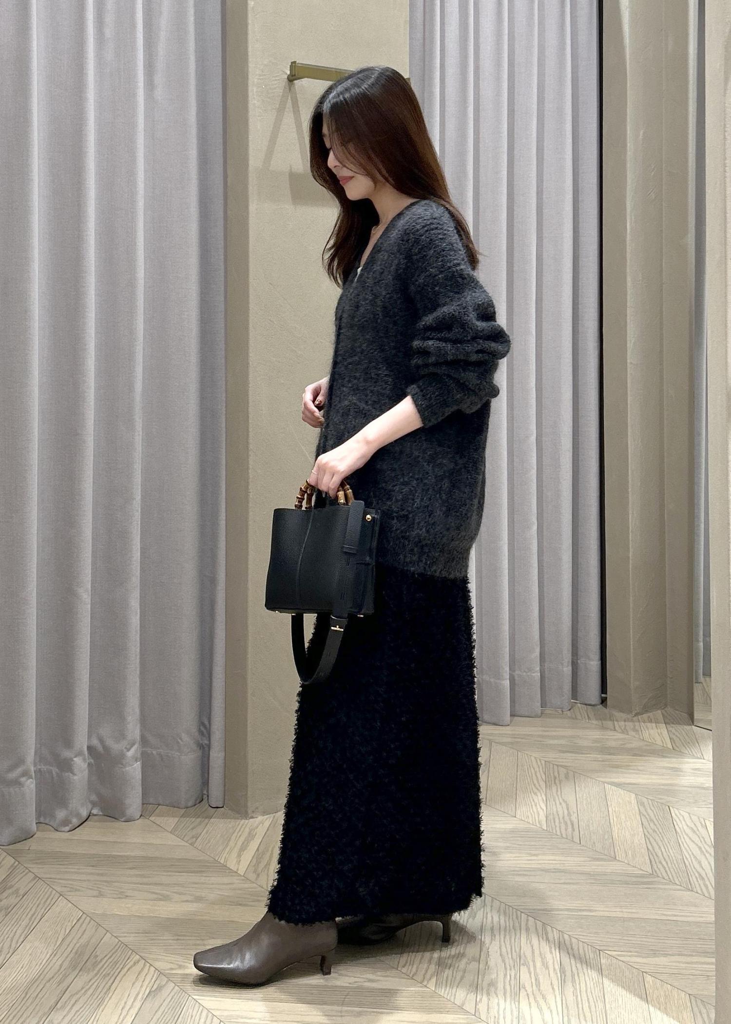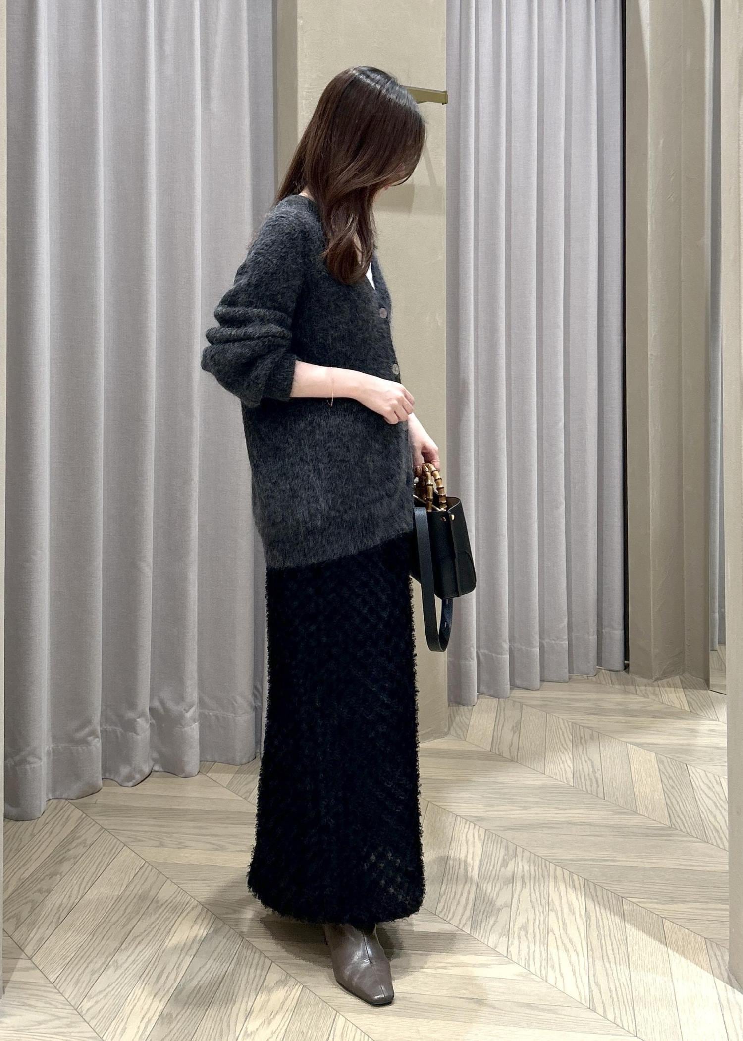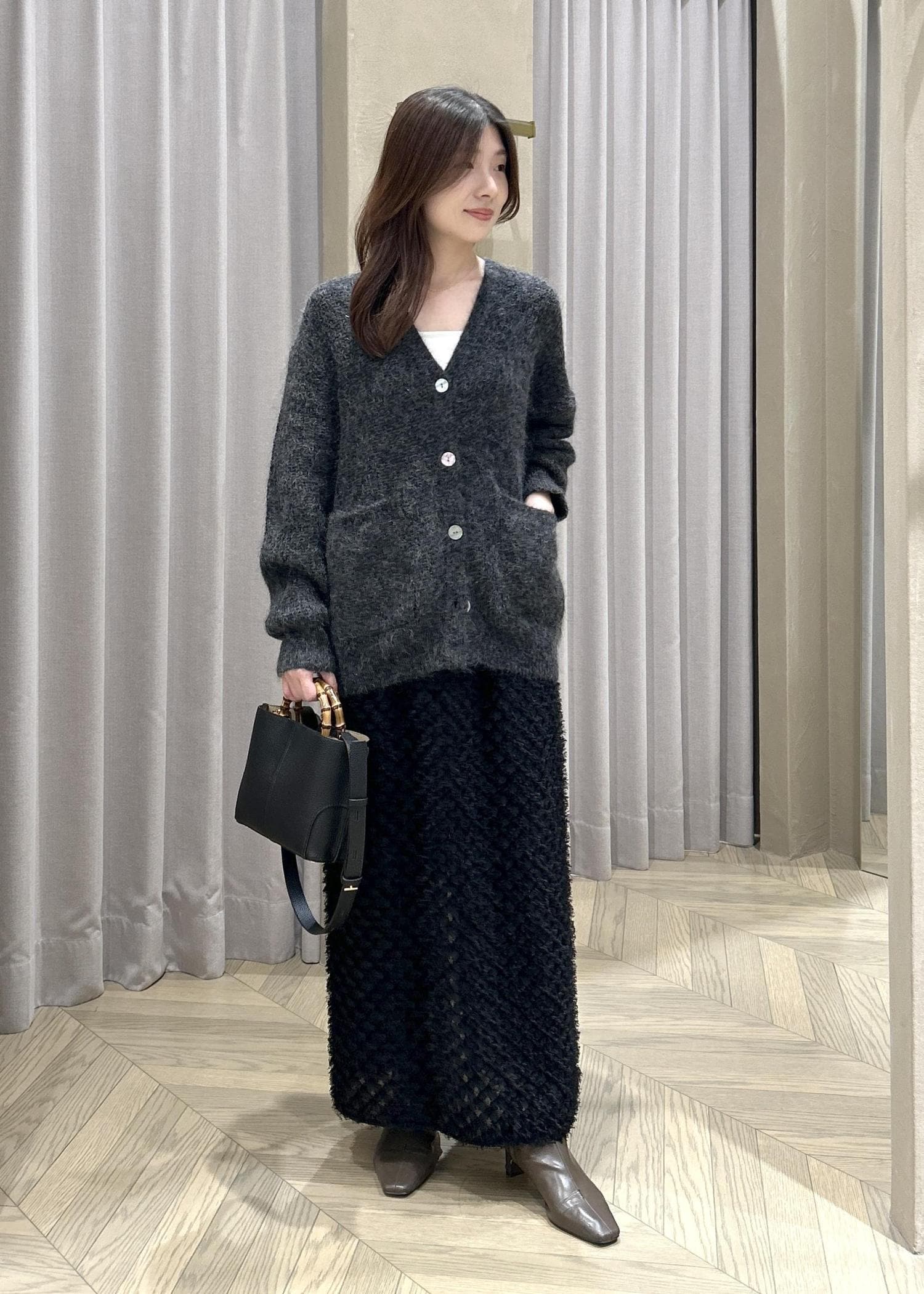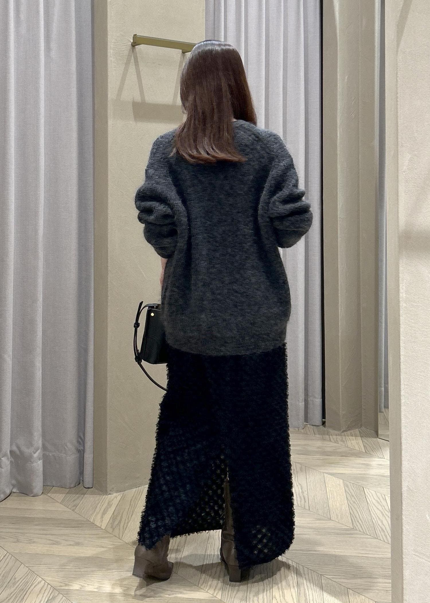 ROPÉスーパーキッドモヘヤVネックカーディガン/イージーケアチャコール / F¥41,800レビューお尻がすっぽり隠れる丈感で、ゆったり着用できるので腰周りが気になる方にもおすすめです♪