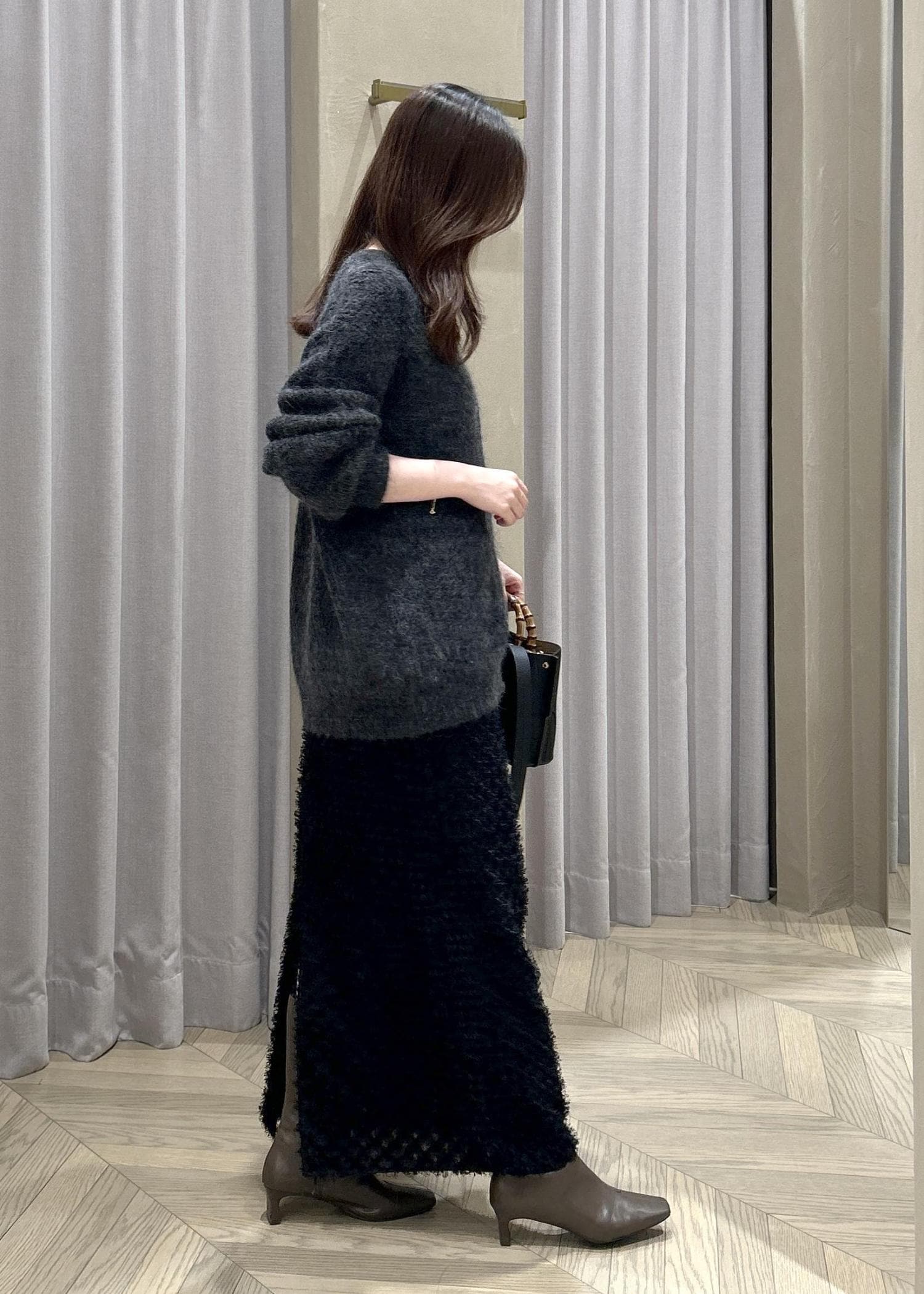 毛足長めのカットジャガード素材で、着るだけでドレッシーな印象になります♪ -