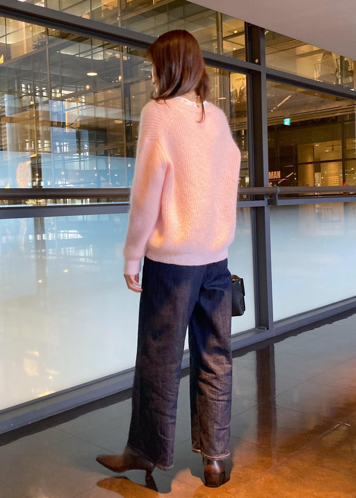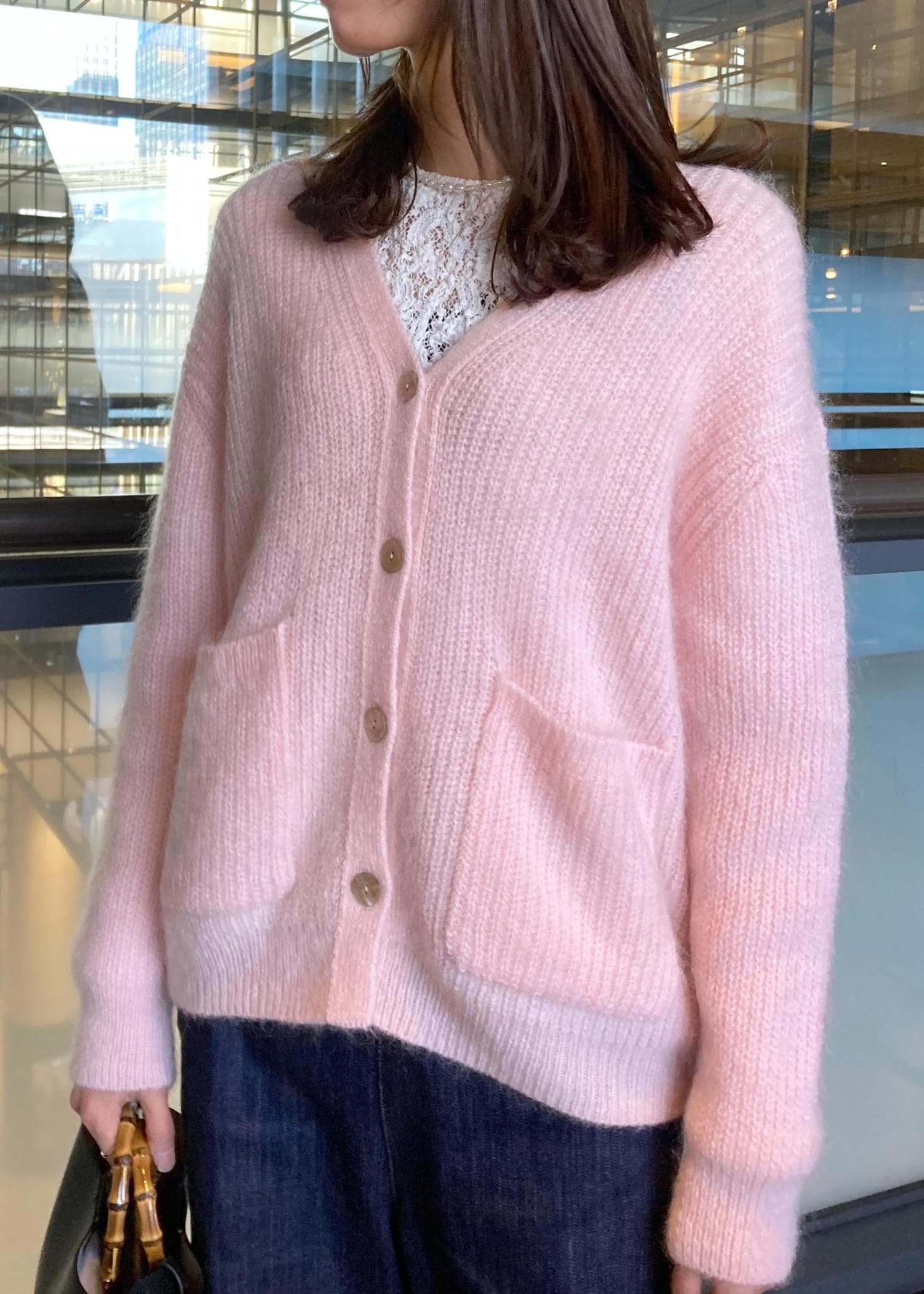 ROPÉスーパーキッドモヘヤVネックカーディガン/イージーケアピンク系 / F¥41,800レビュー着丈はヒップがちょうど隠れるくらいで、全体的にゆったりとしたデザインのカーディガンです。