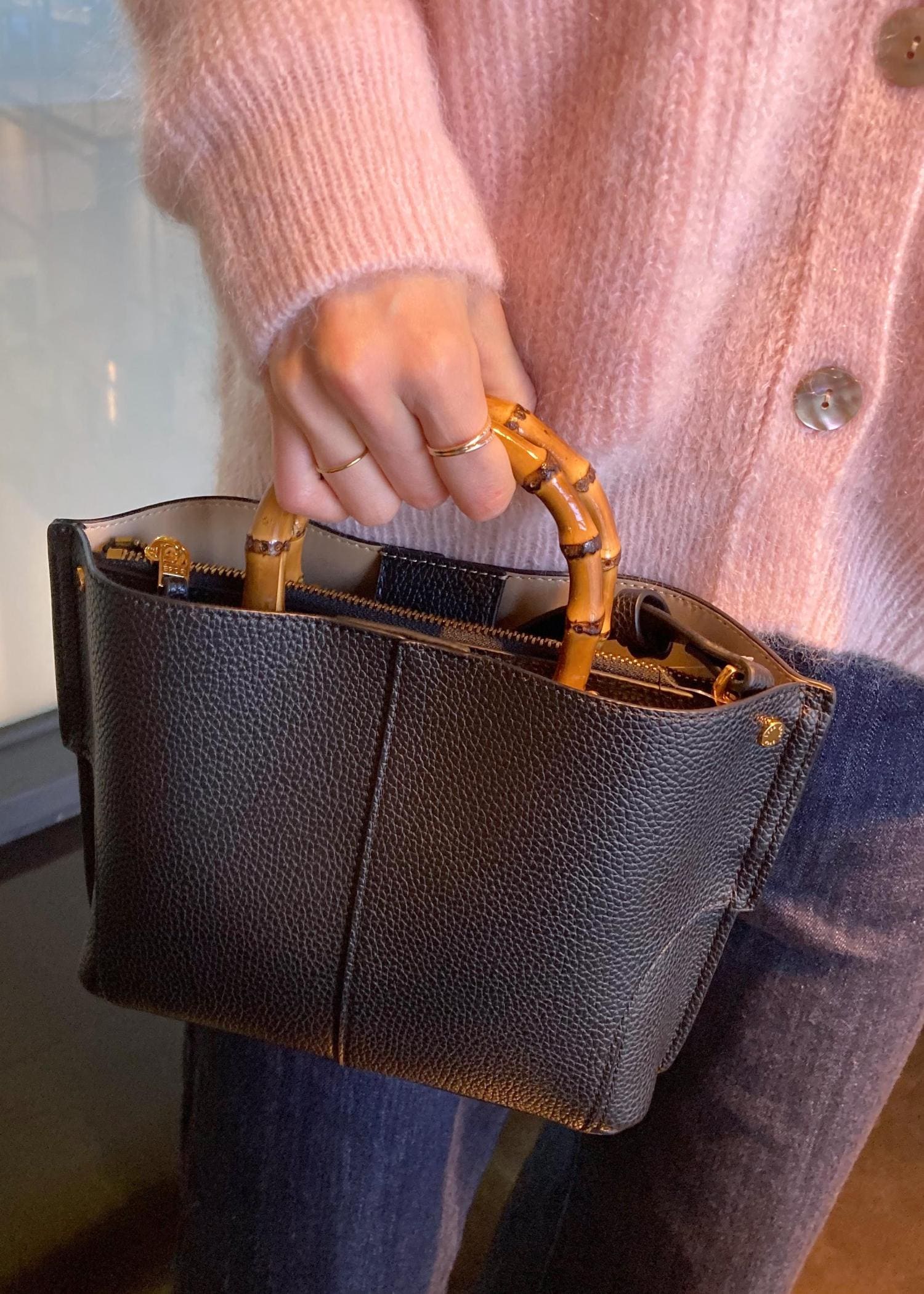 ROPÉ【E'POR】BAMBOO BAG Mini 【超軽量】【25AW】ブラック系 / F¥18,150レビューバンブーハンドルをポイントになりシンプルなデザインでどんなスタイリングとも合わせやすく、内側ポケットで小分けできる機能的バッグです。
