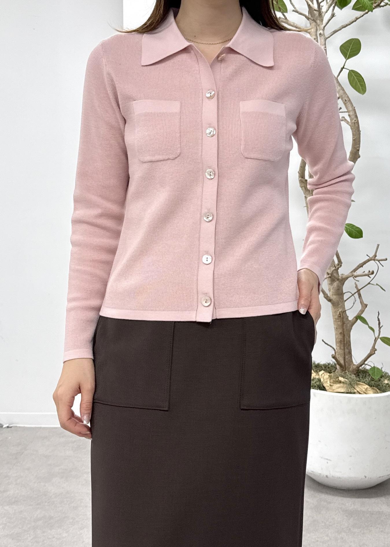 予約ROPÉポロニットカーディガン/イージーケアピンク / F¥19,800レビュー程良い厚みがありドライタッチな素材。