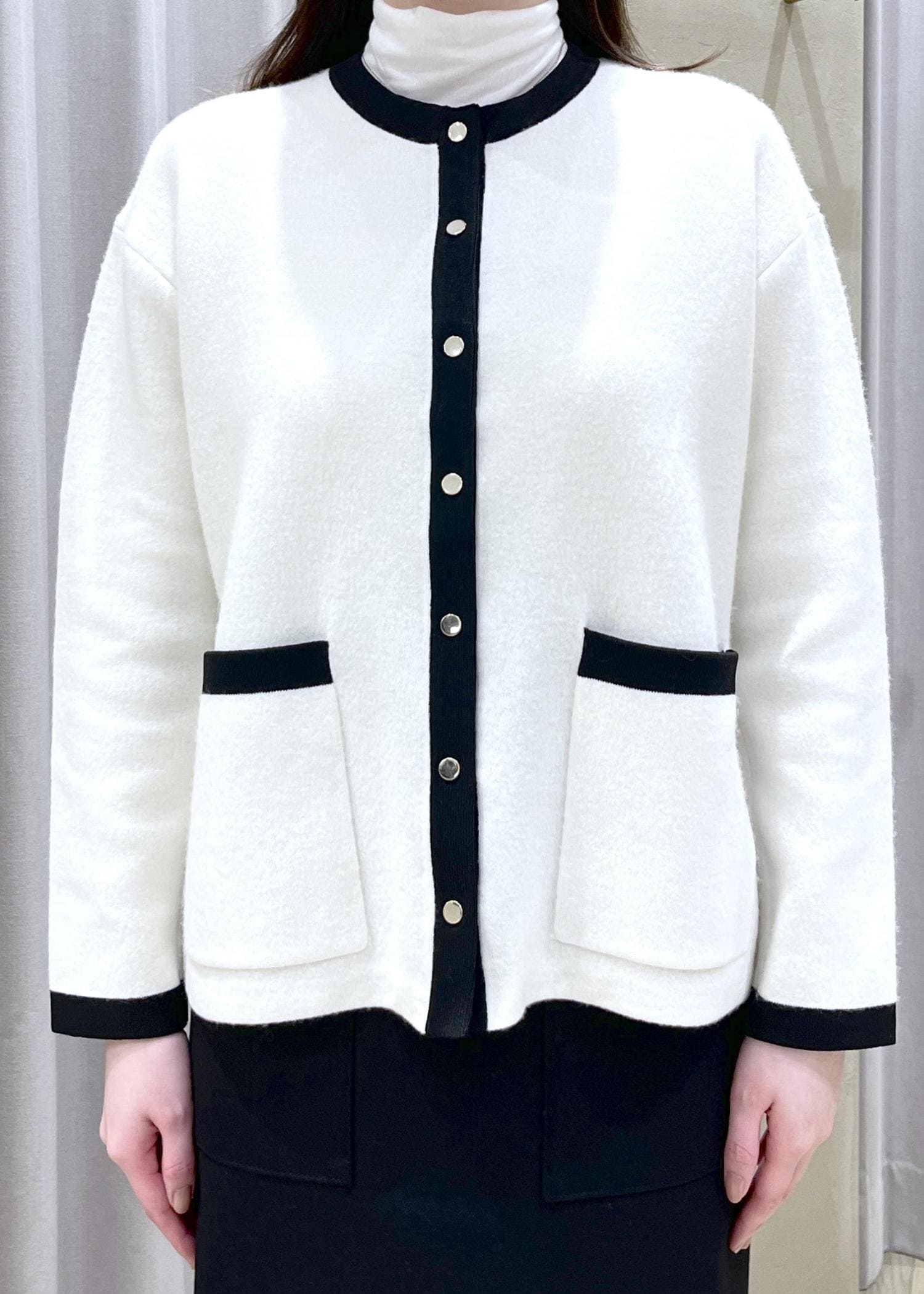 ROPÉ接結ウールバイカラーニットカーディガン/イージーケアオフホワイト / F¥30,800レビュー【着丈】