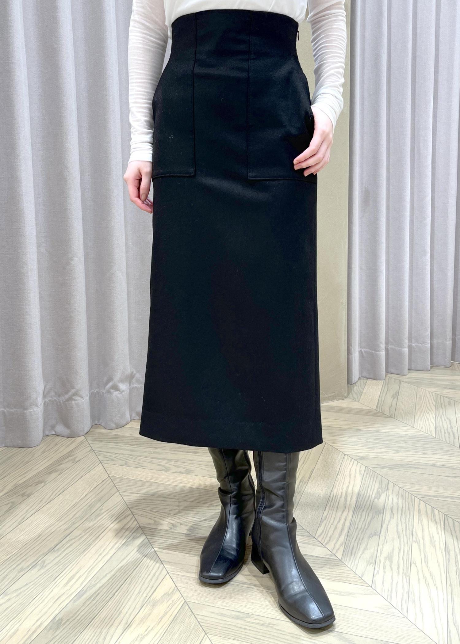 ROPÉ[美人スカート]ウールレーヨンポケット付きタイトスカート(無地)/イージーケア・セットアップ対応ブラック / 36¥25,300レビュー【着丈】