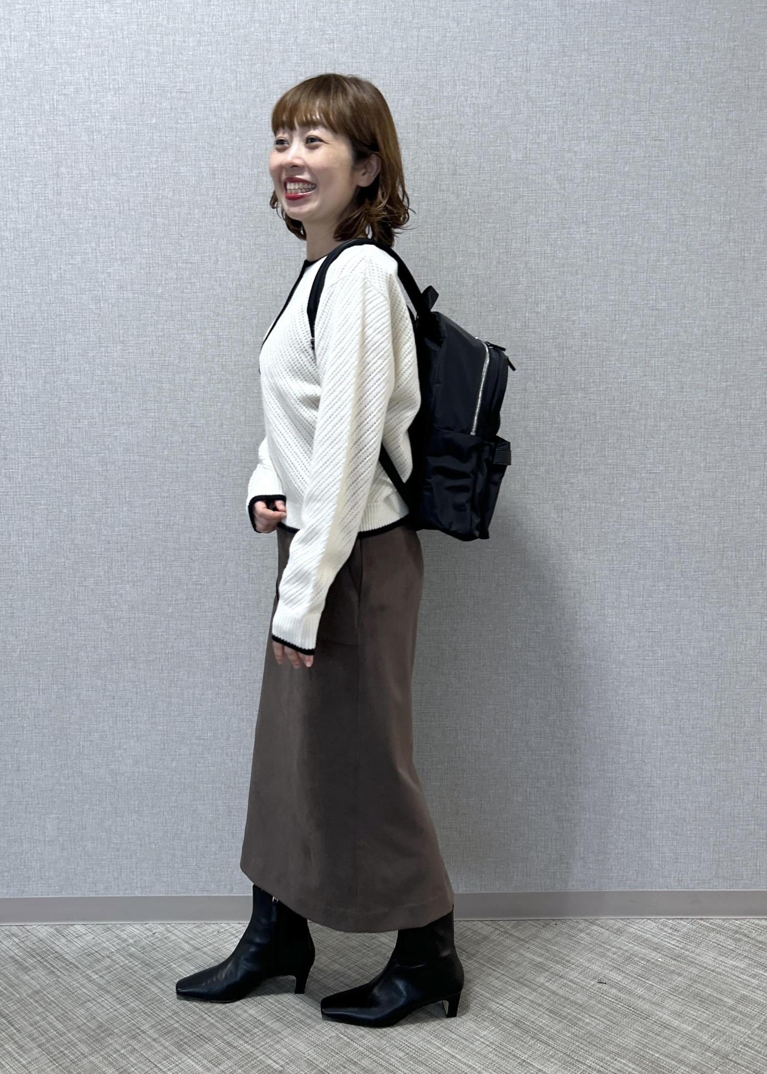 ニットは着丈が丁度良い長さなのでパンツ、スカートの何方にも合わせやすいです。