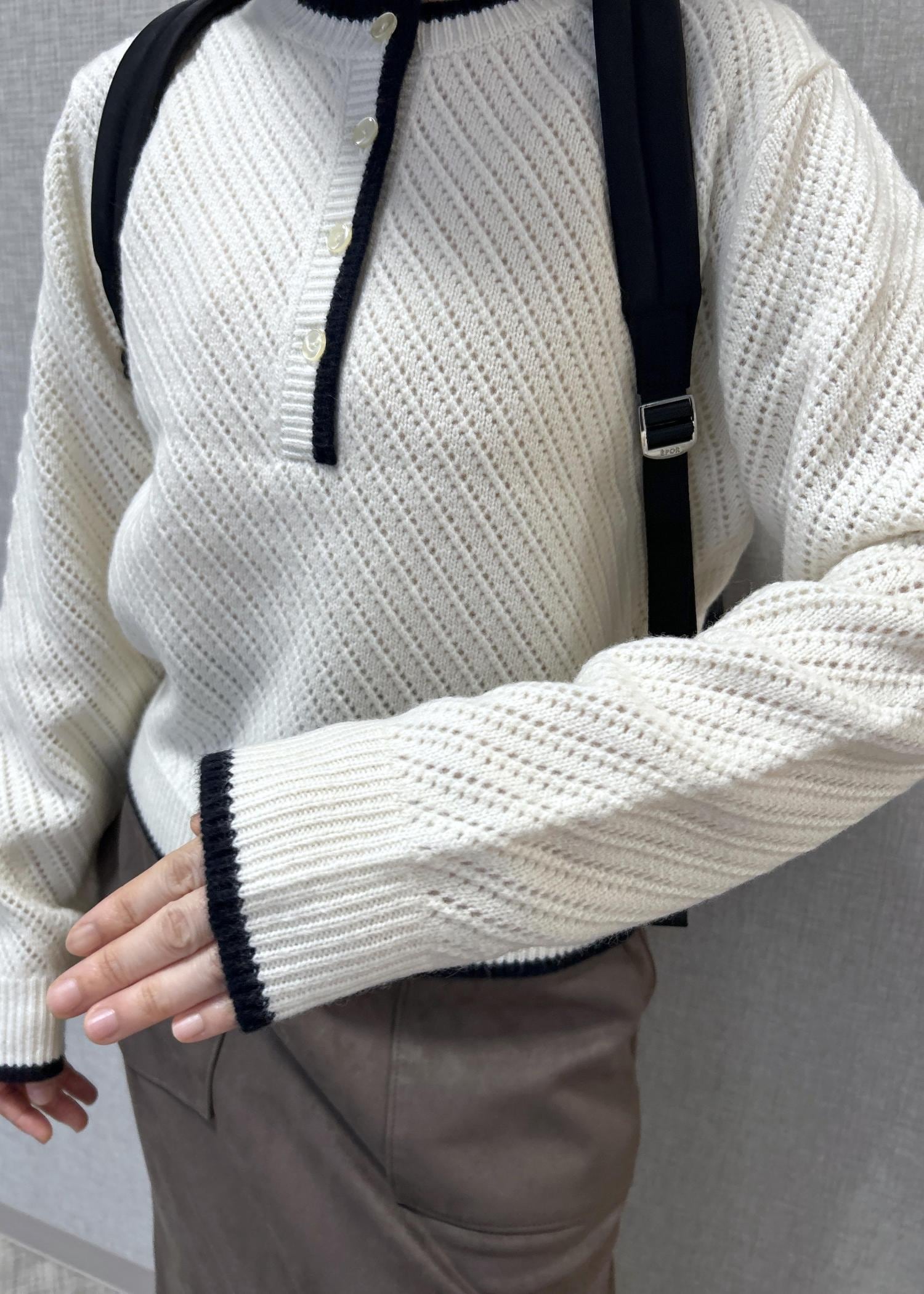 ROPÉカシミヤ混 透かし柄バイカラーニット/イージーケアオフホワイト / F¥27,500レビュー着丈はヒップの上辺り迄の長さです。