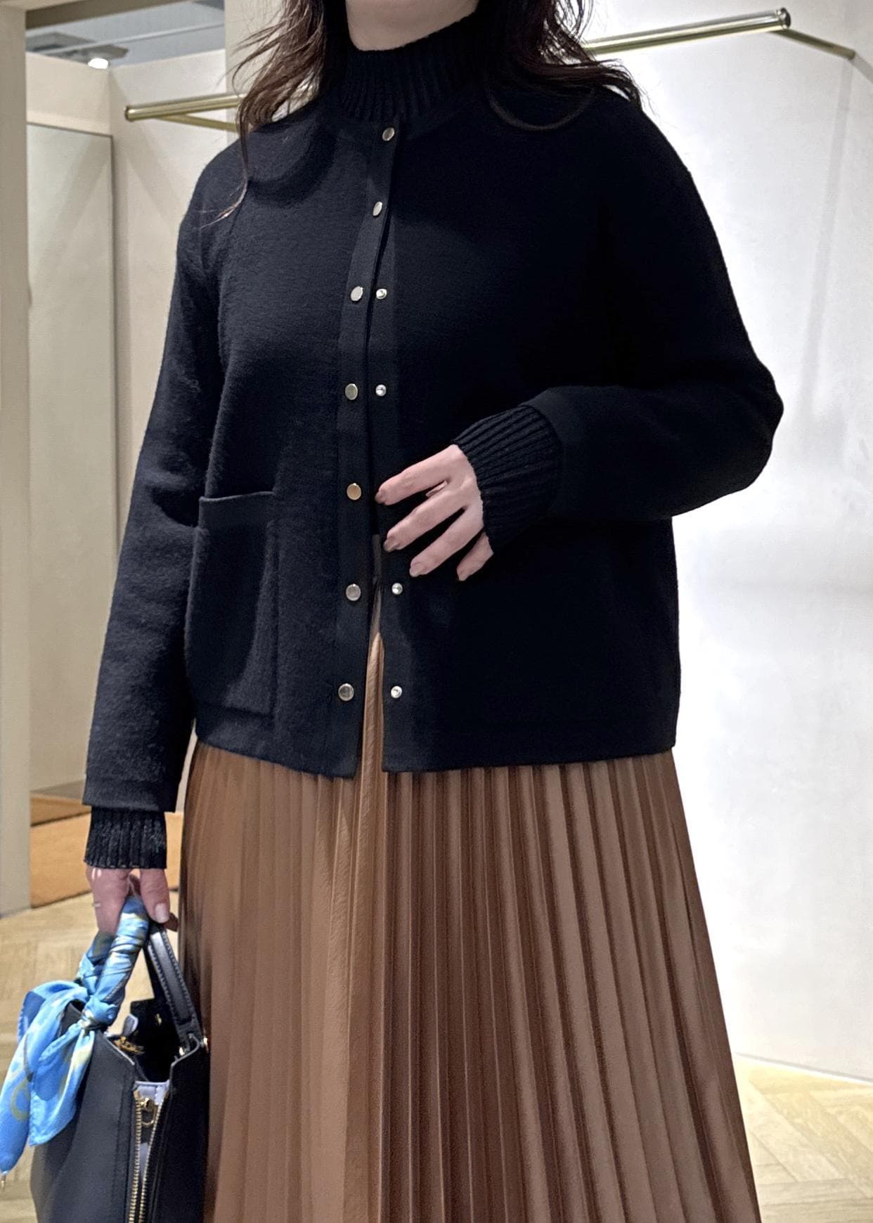 カーディガンとジャケットの間くらいのしっかり目で軽く暖かいです。秋〜初冬のメインのアウターとしてまた、真冬はアウターインで着用し羽織を脱いでも可愛いスタイルに!長く着用できますよ♪