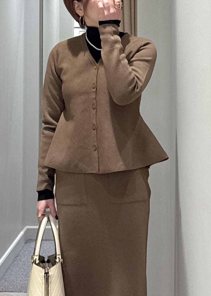 ROPÉウール混ニットペプラムカーディガン/イージーケア・セットアップ対応ブラウン / F¥27,500レビューウエス位置が高めのペプラムなので、