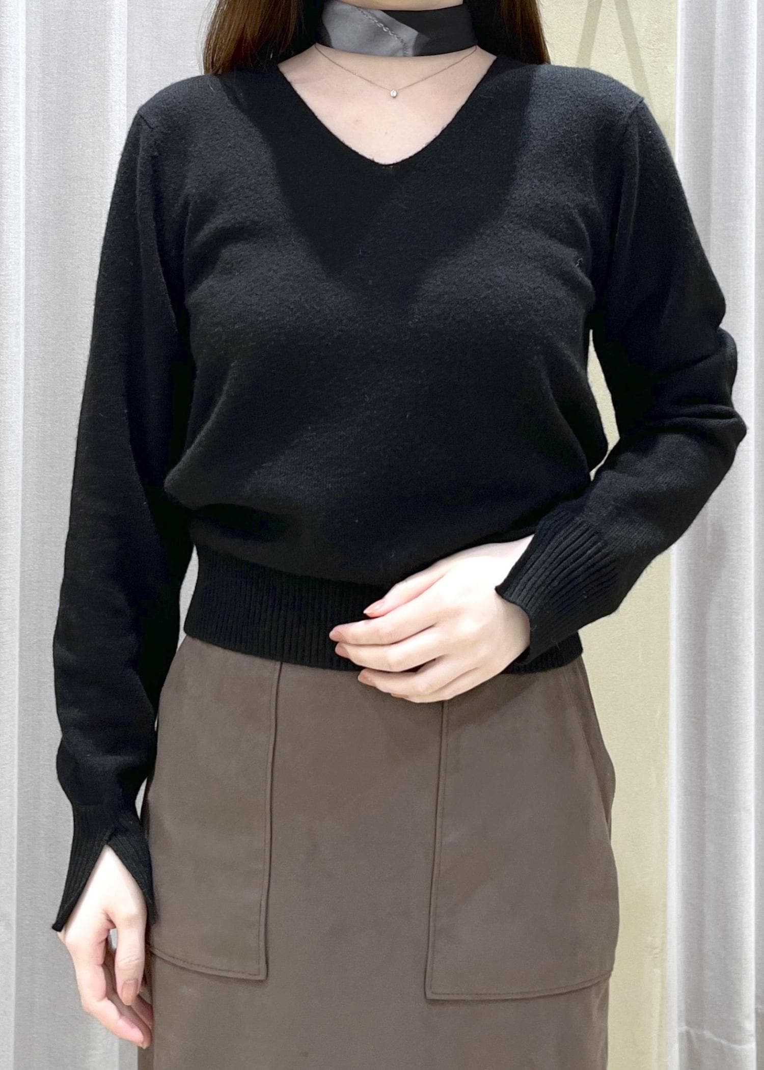 NEW!ROPÉカシミヤVネックニットプルオーバーブラック / F¥25,300レビュー【着丈】
