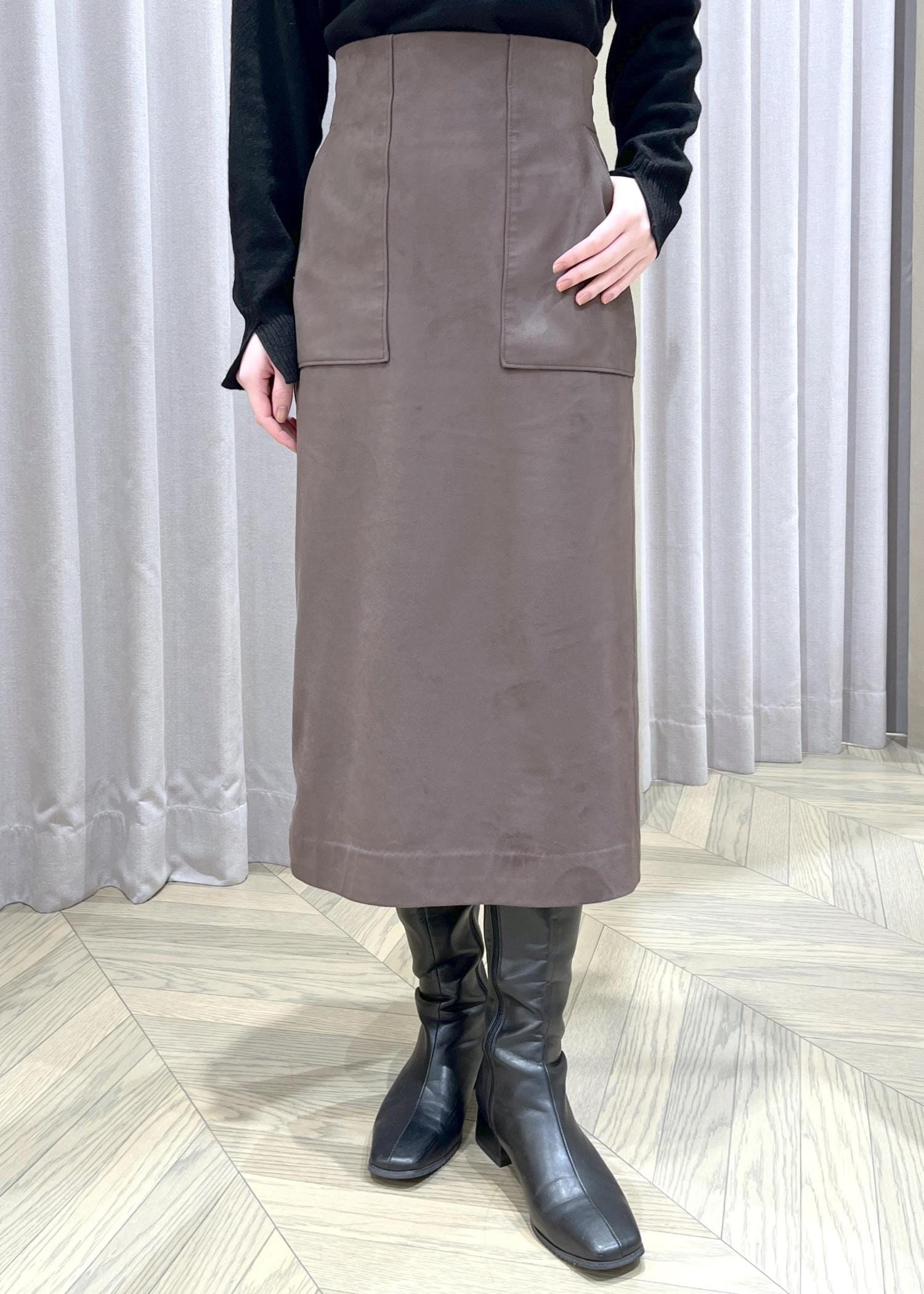 ROPÉ[美人スカート]スエードポケット付きタイトスカート/イージーケアダークブラウン / 36¥25,300レビュー【着丈】